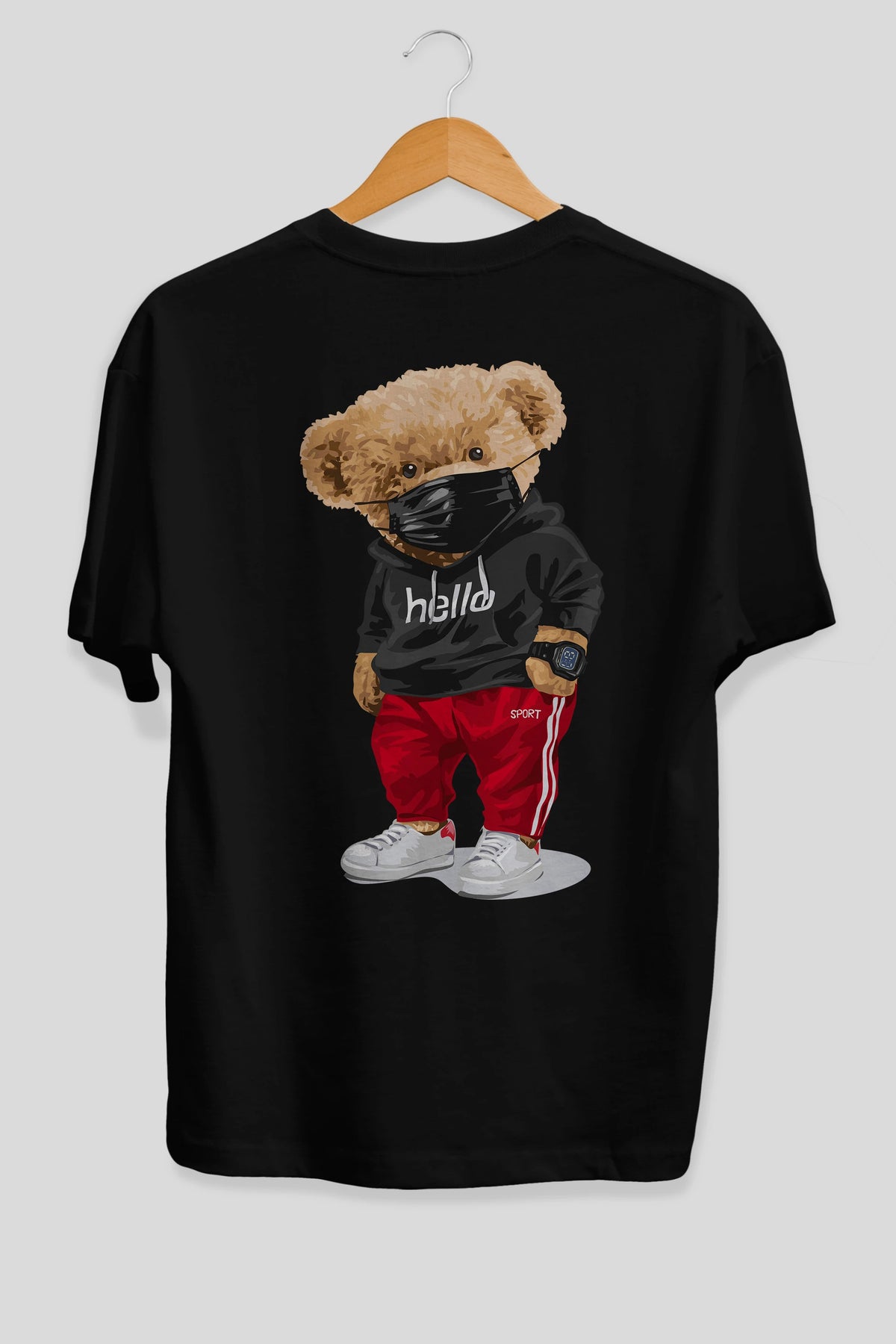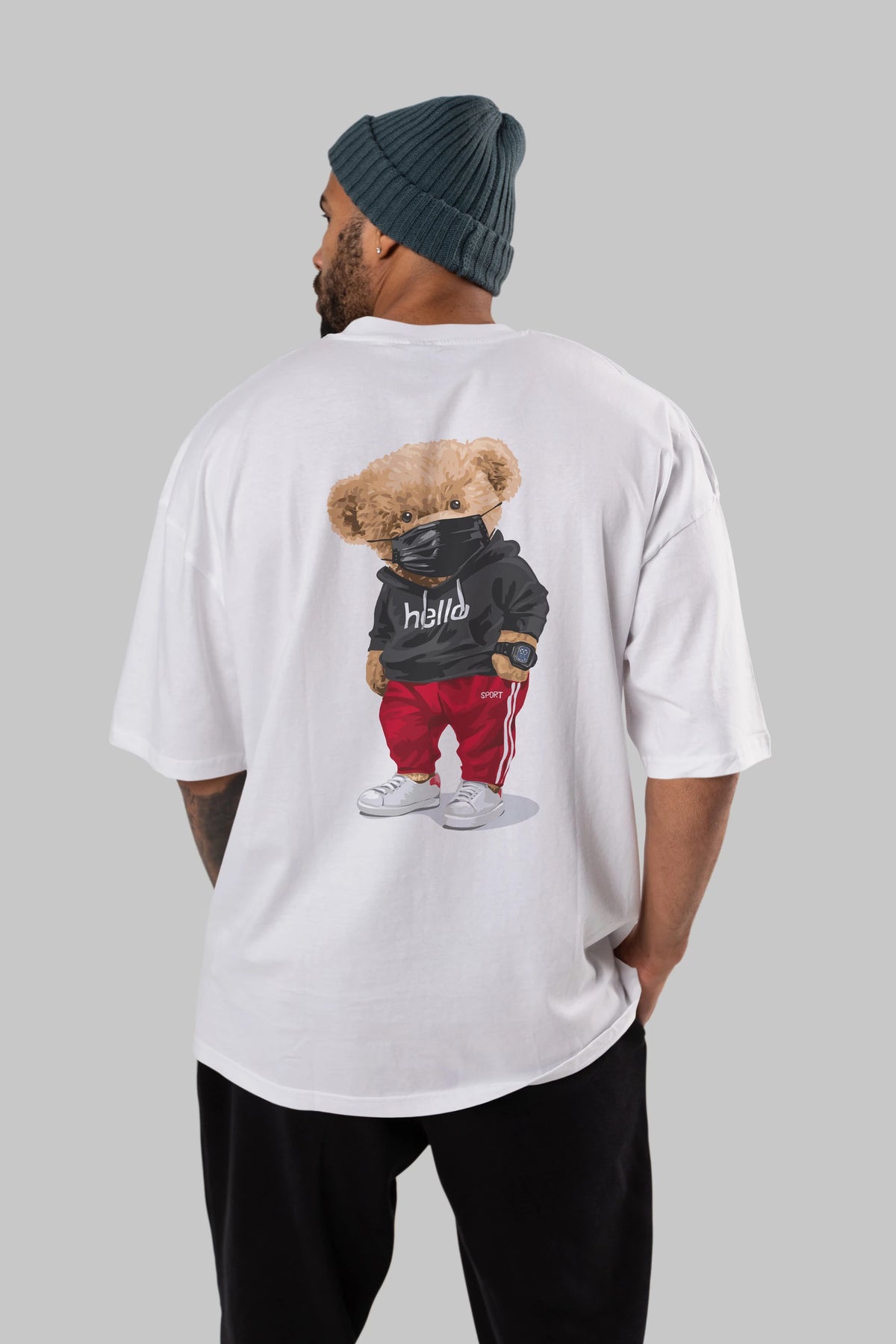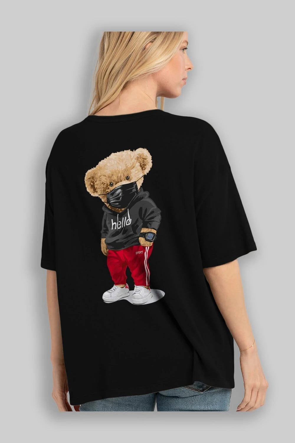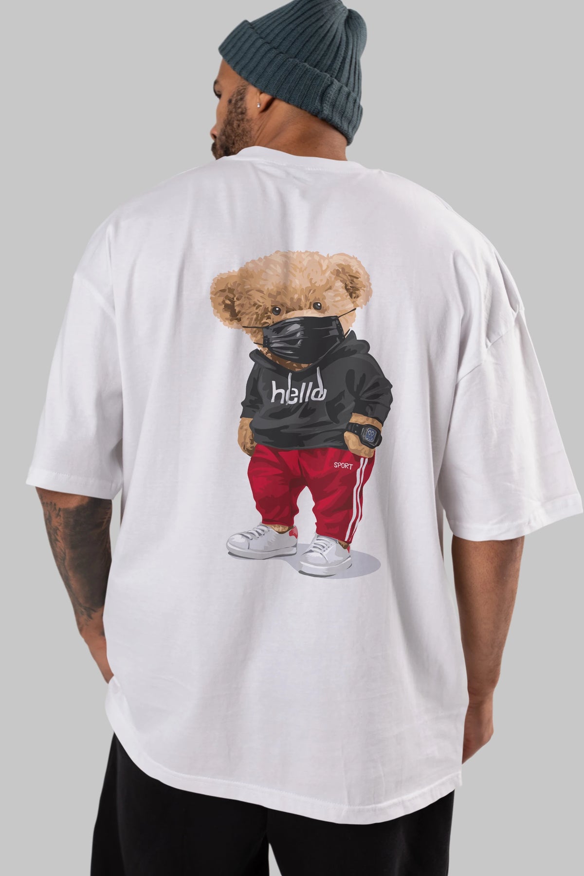 Teddy Bear Hello Sport Arka Baskılı Oversize t-shirt Erkek Kadın Unisex %100 Pamuk