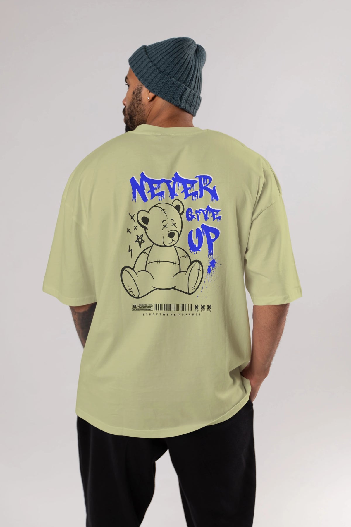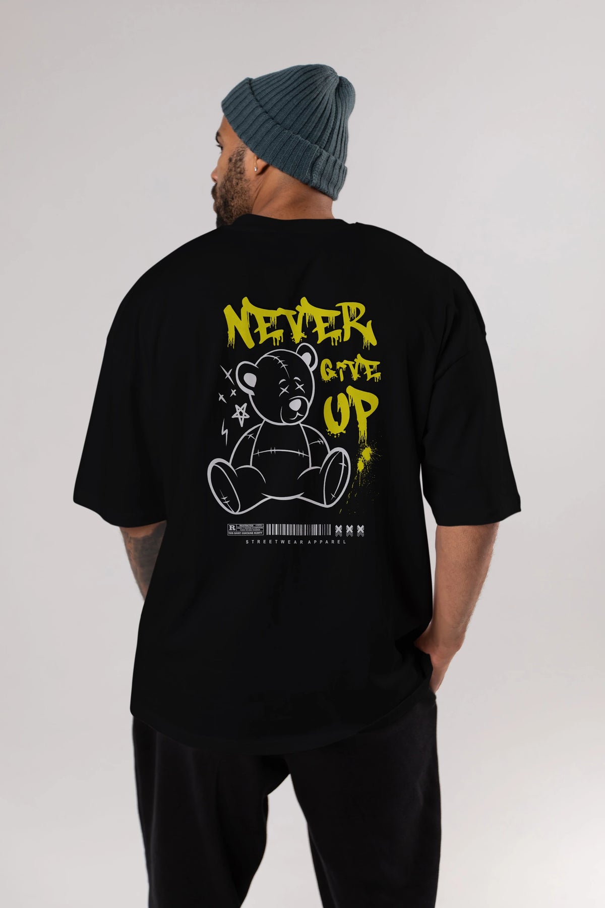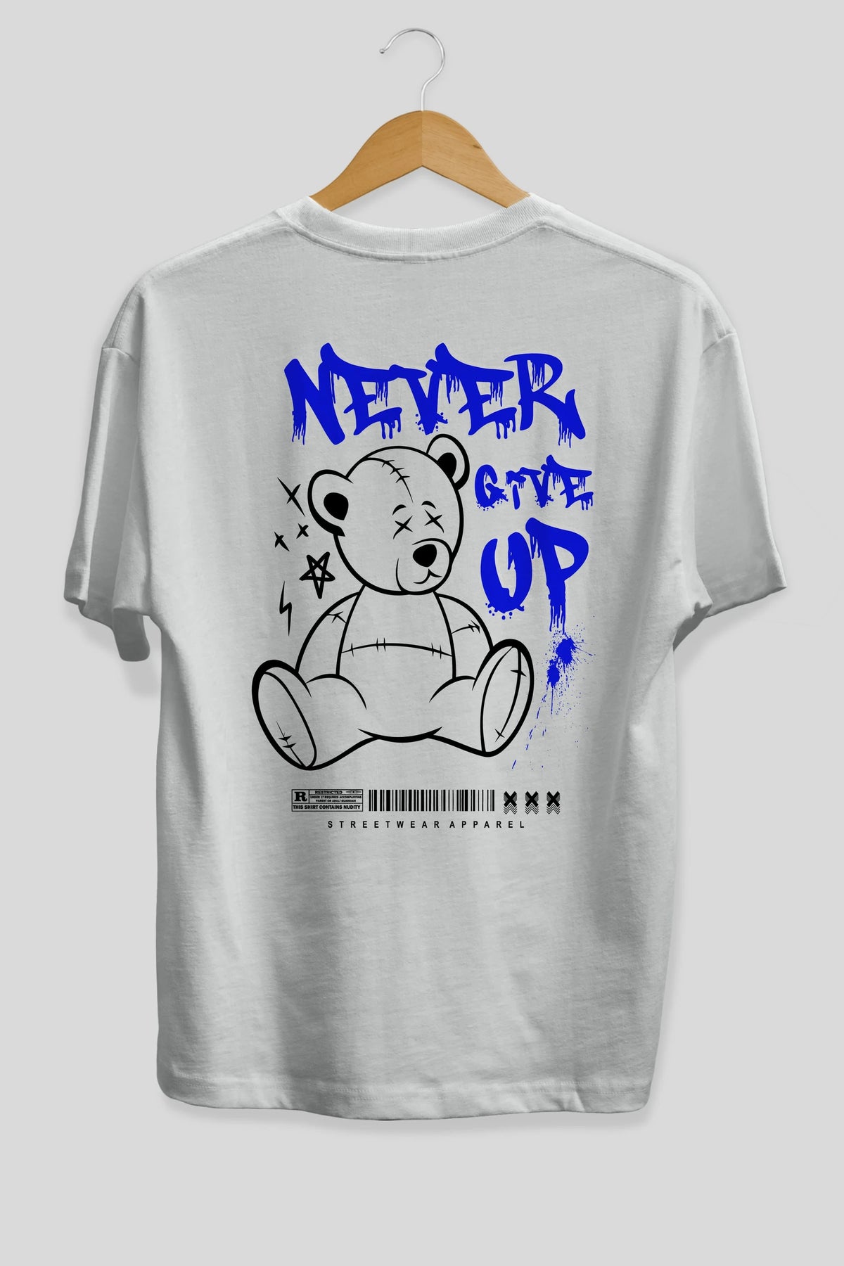 Teddy Bear Never Give Up Arka Baskılı Oversize t-shirt Erkek Kadın Unisex