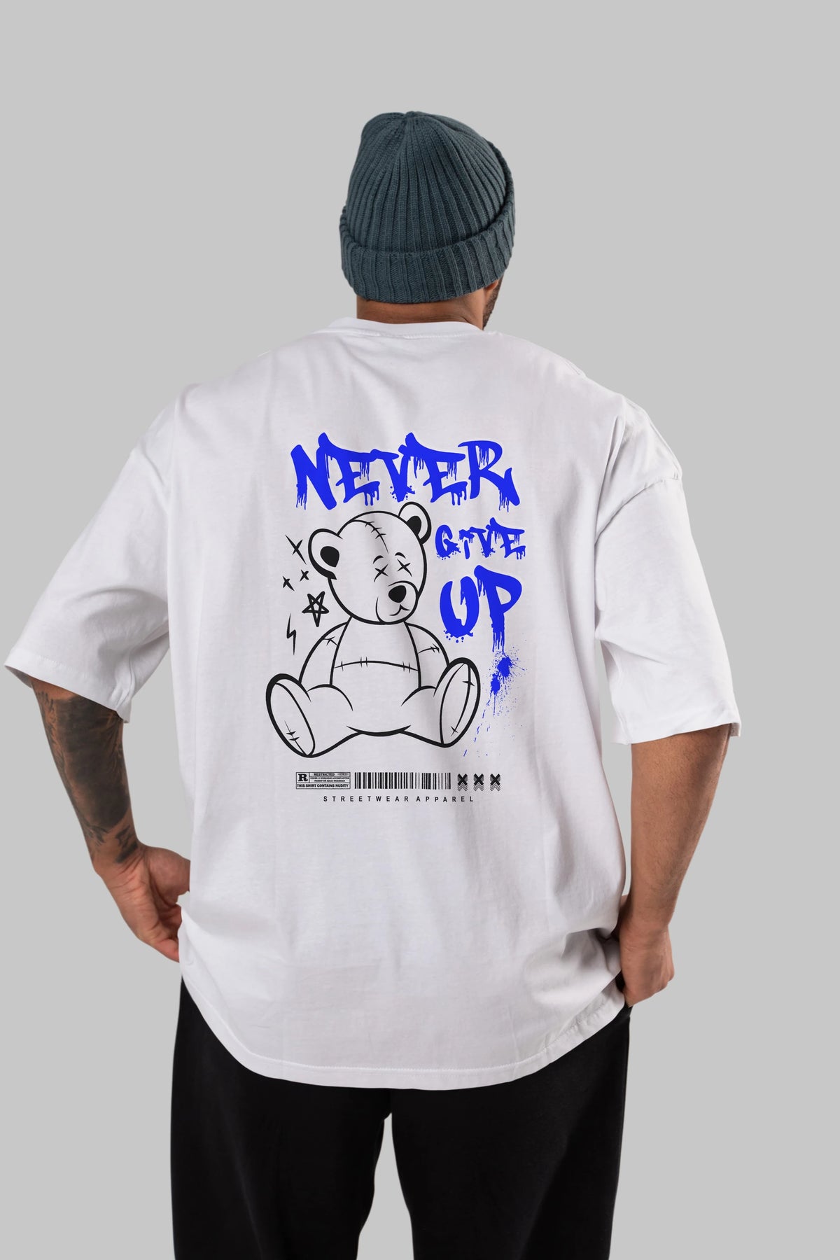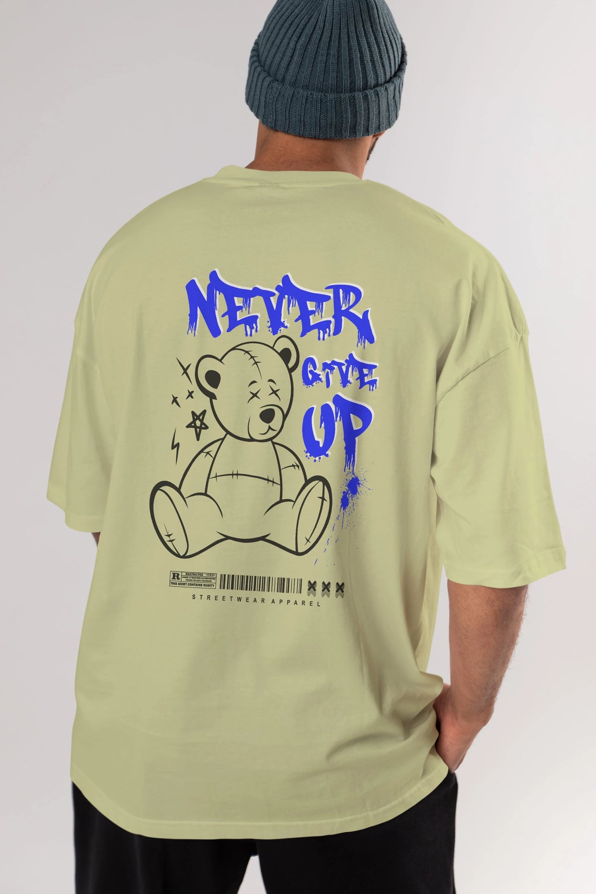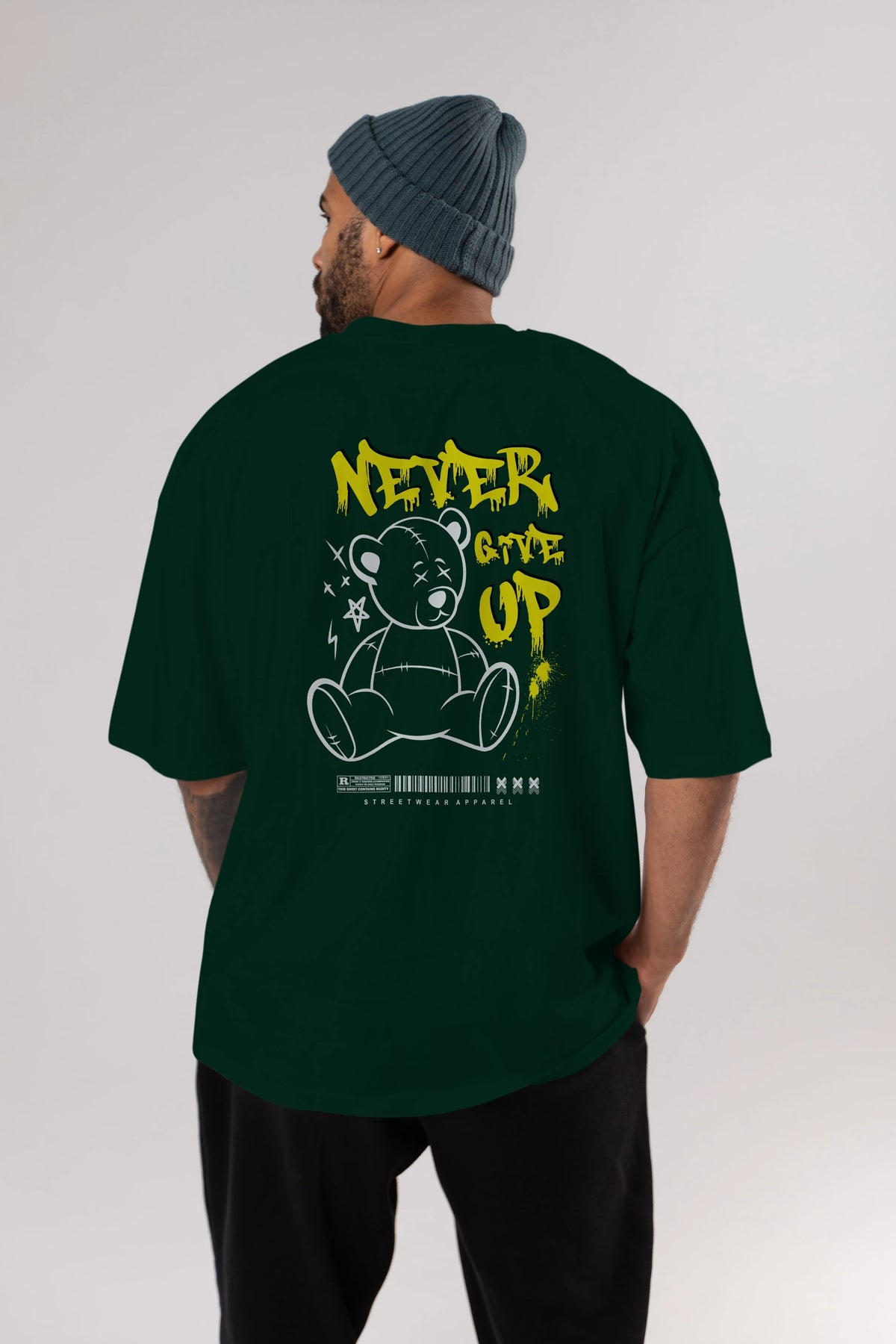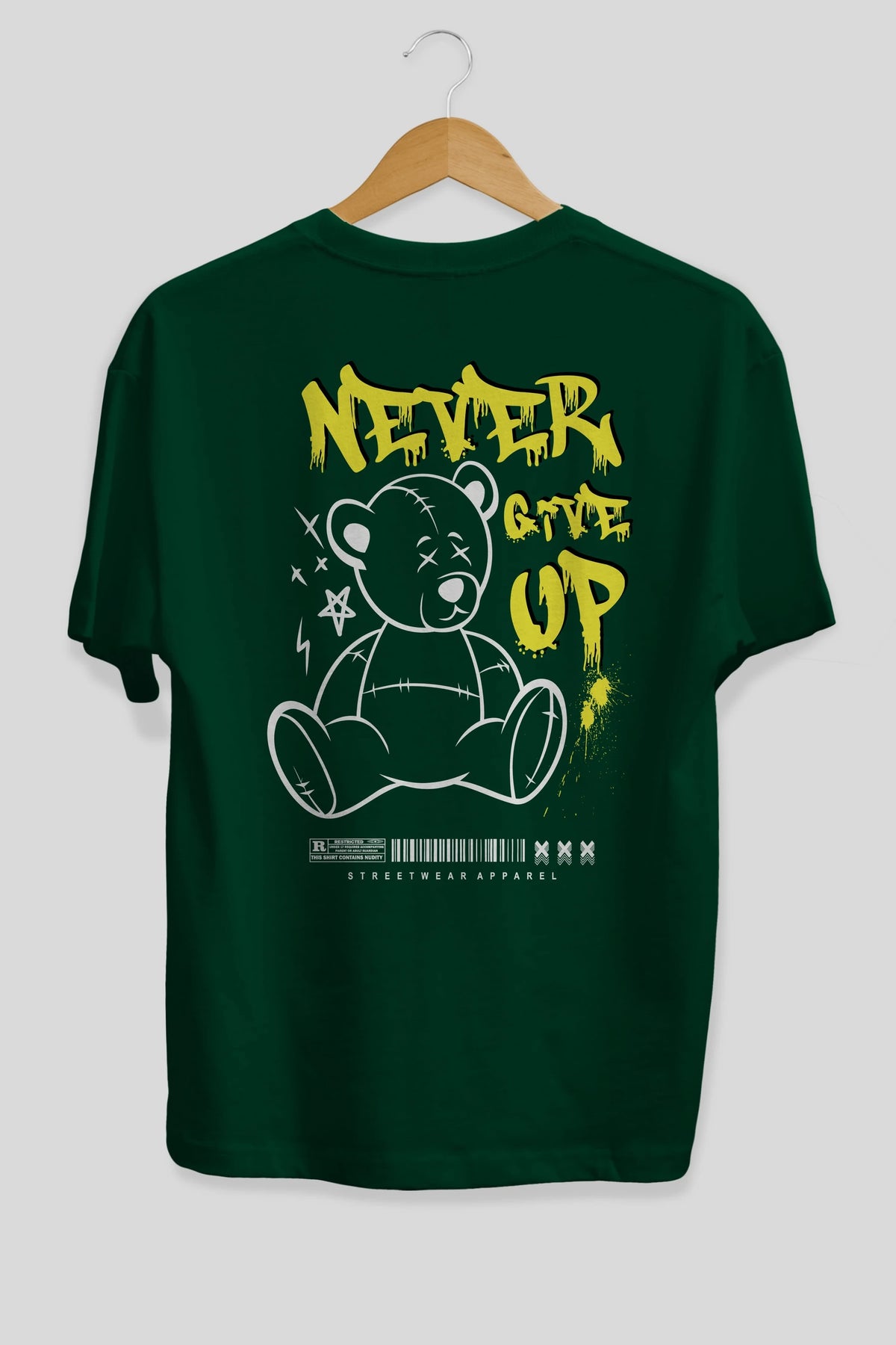 Teddy Bear Never Give Up Arka Baskılı Oversize t-shirt Erkek Kadın Unisex