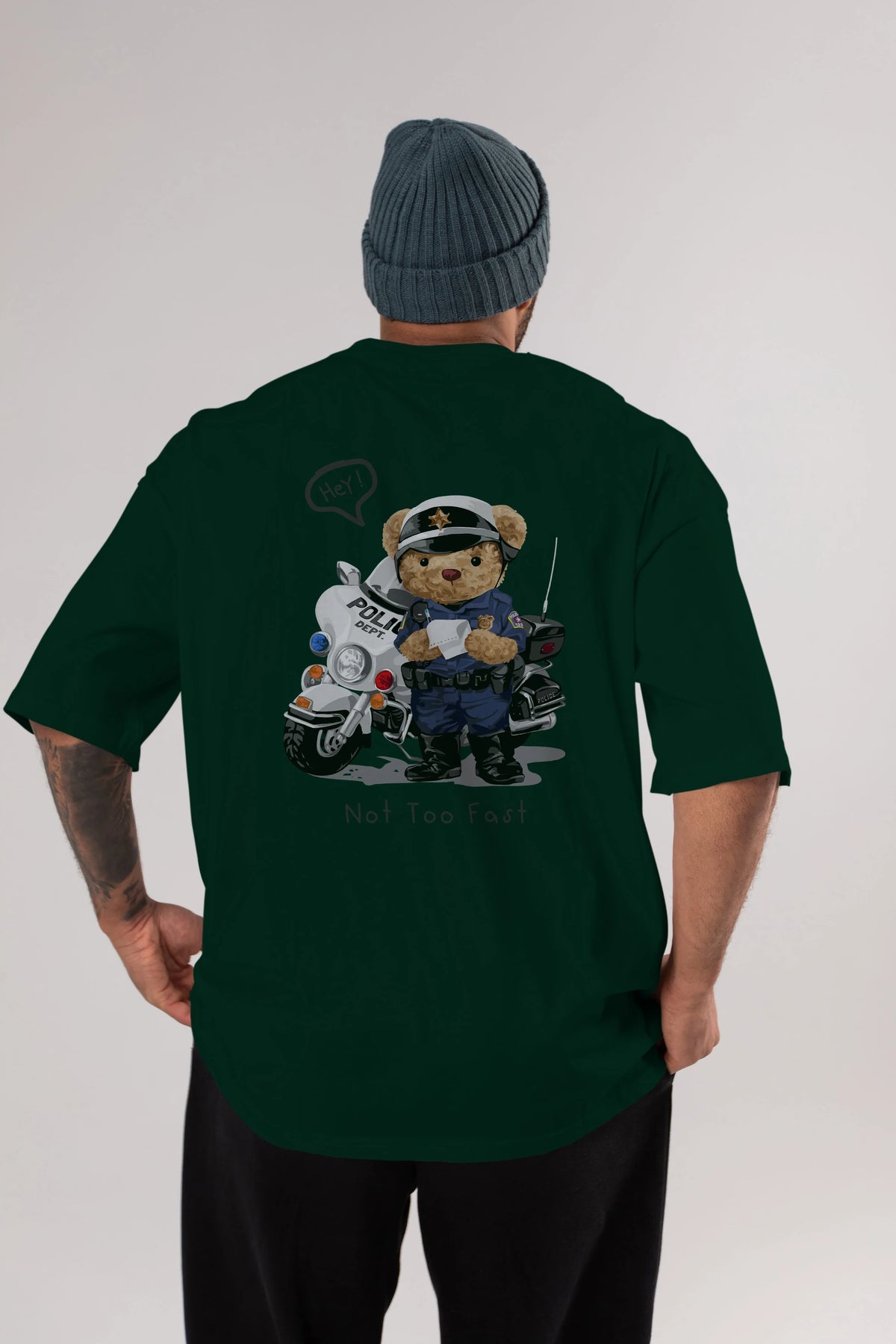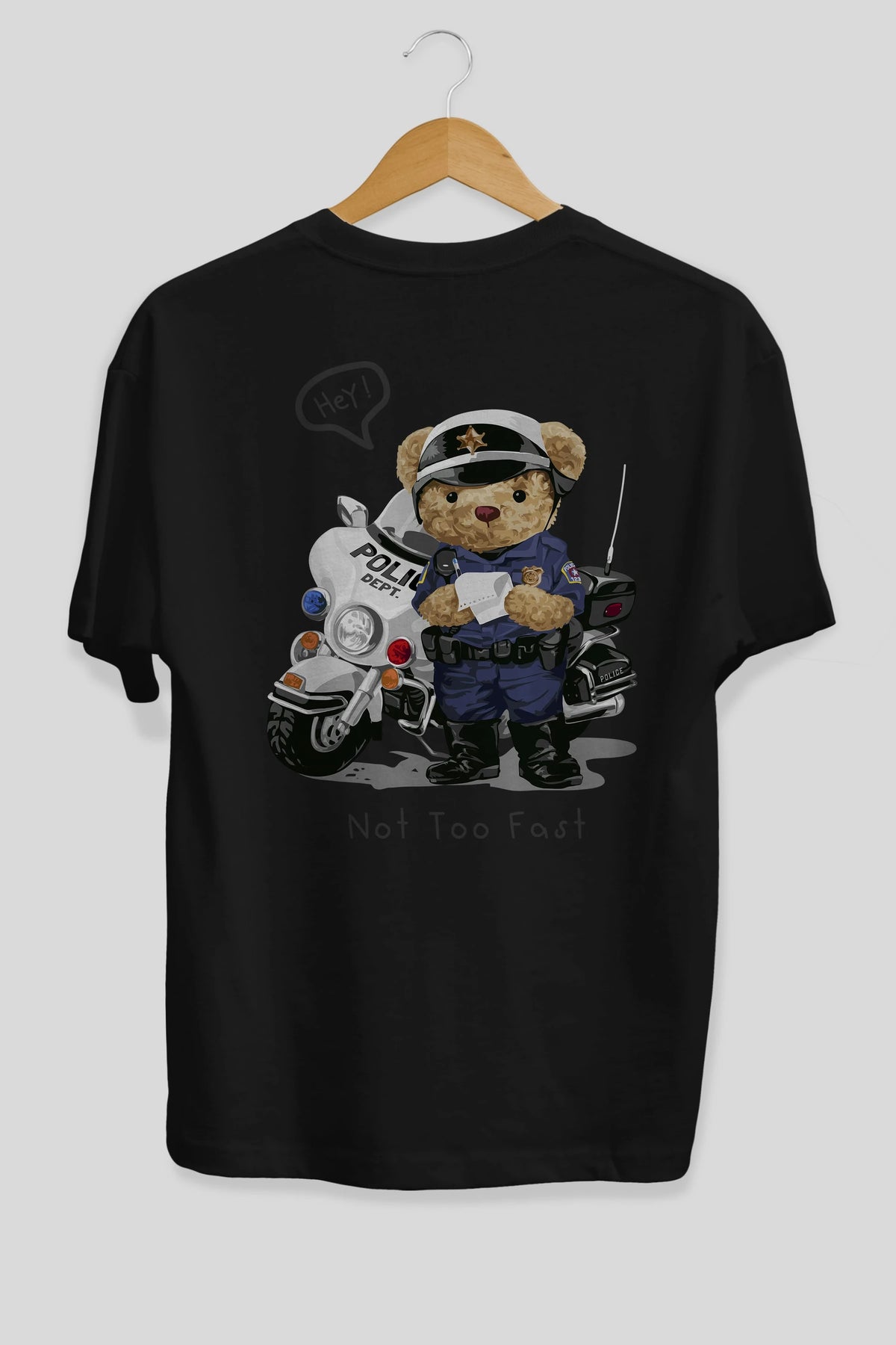 Teddy Bear Not Too Fast Arka Baskılı Oversize t-shirt Erkek Kadın Unisex %100 Pamuk