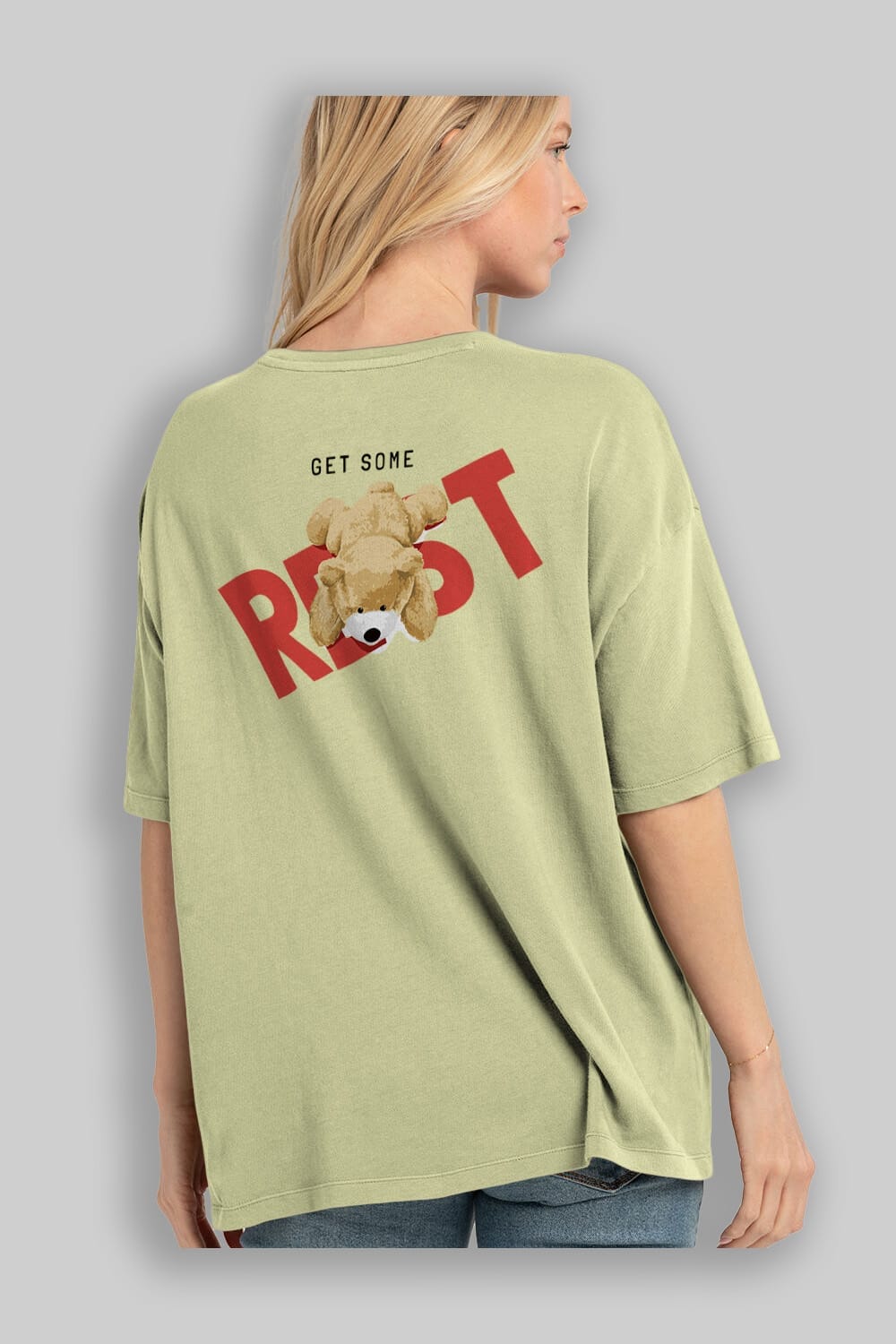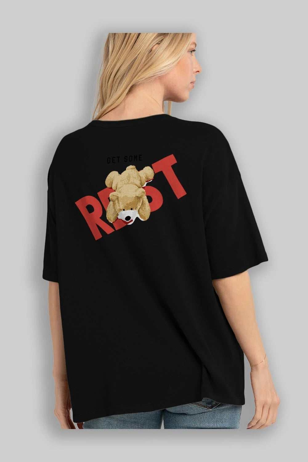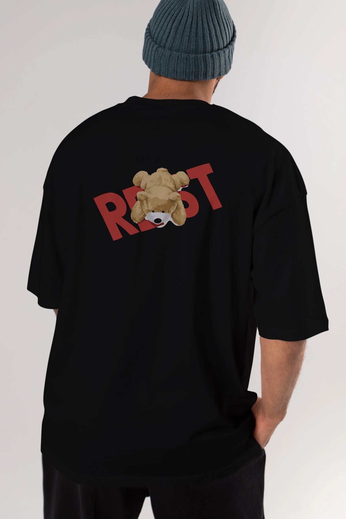 Teddy Bear Rest Arka Baskılı Oversize t-shirt Erkek Kadın Unisex %100 Pamuk