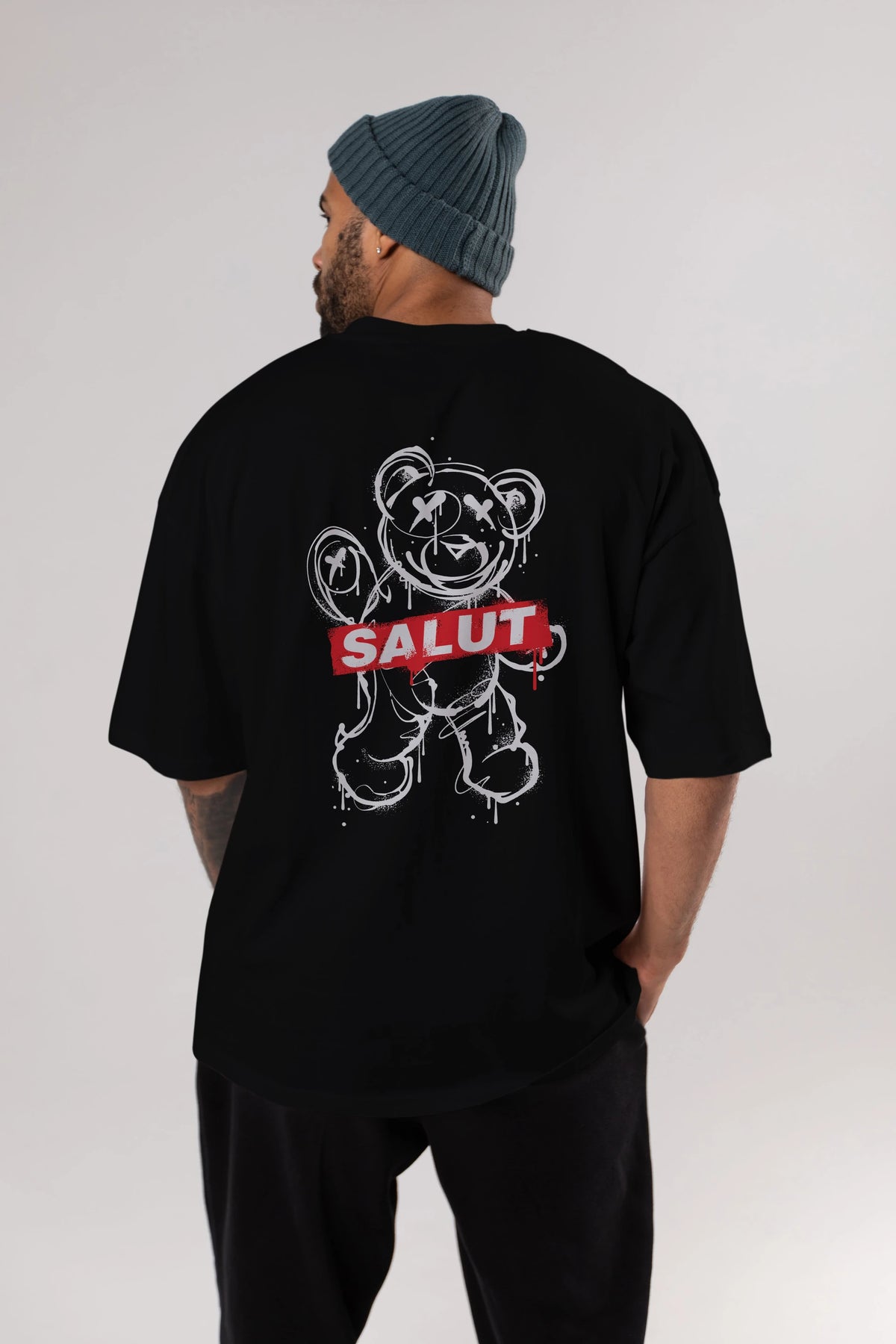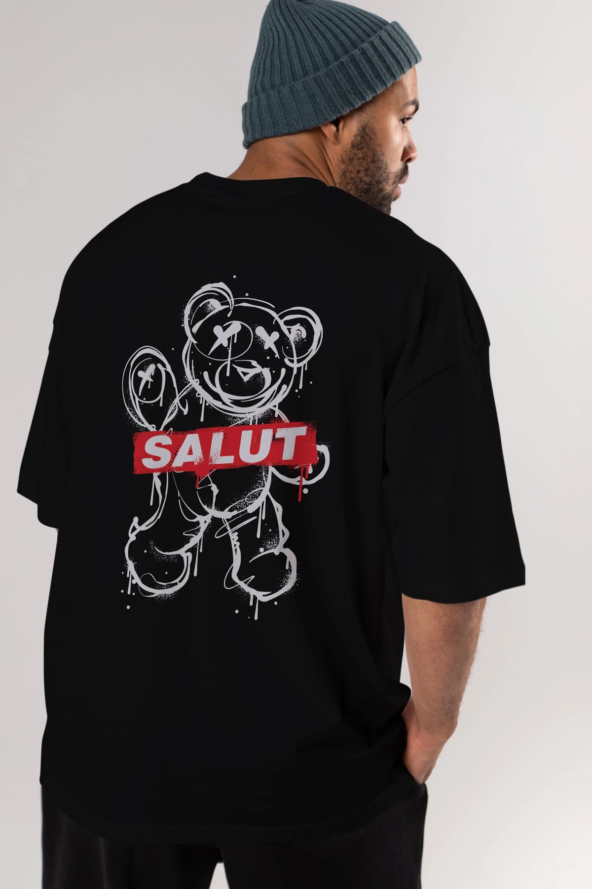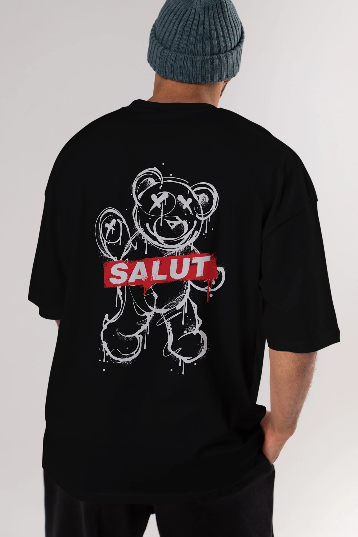 Teddy Bear Salut Arka Baskılı Oversize t-shirt Erkek Kadın Unisex