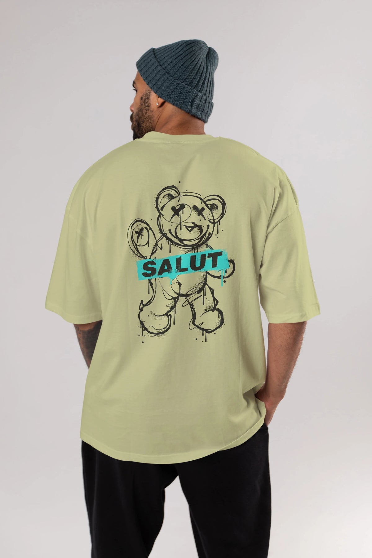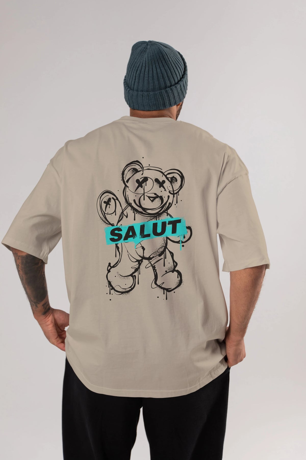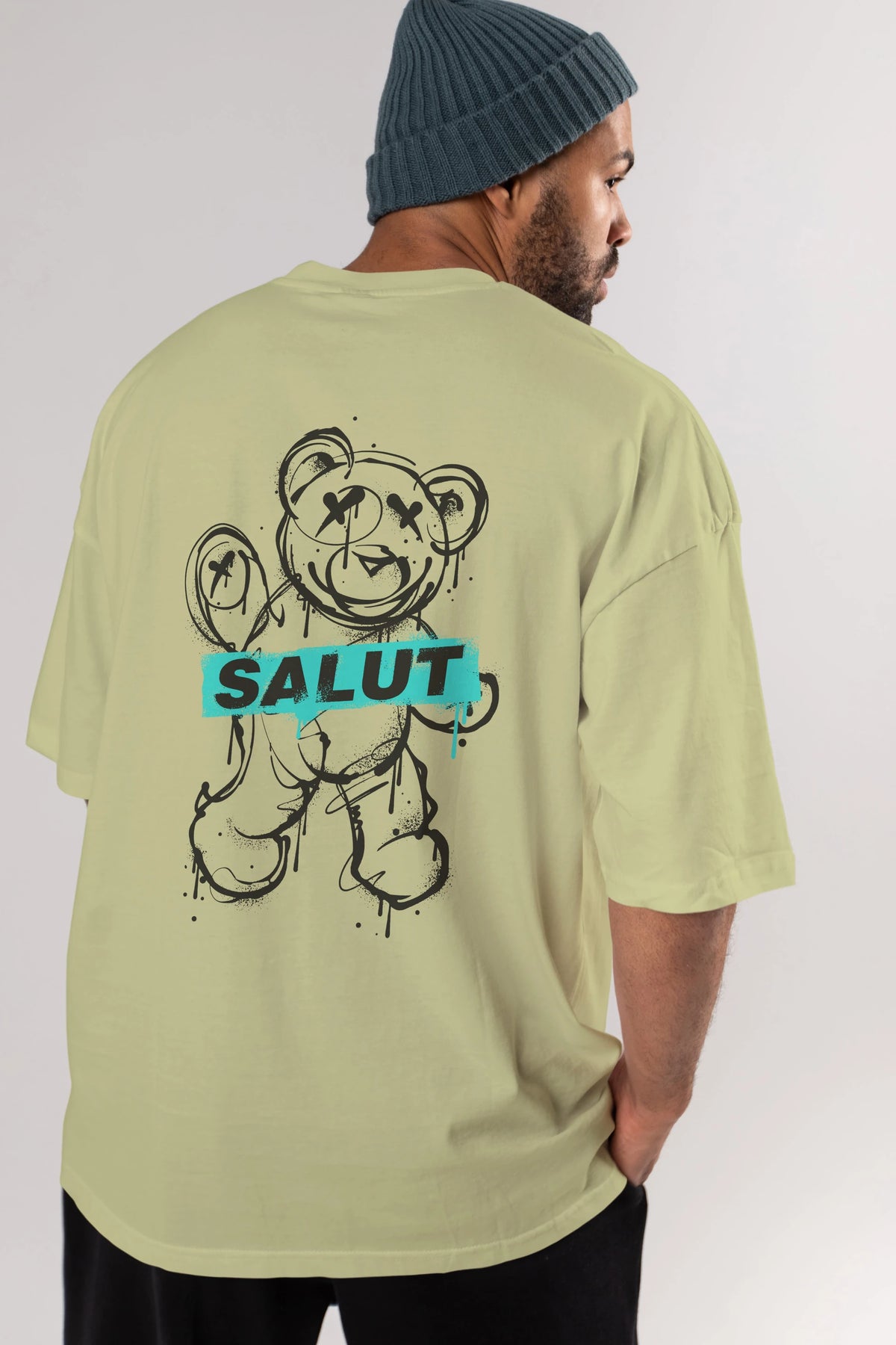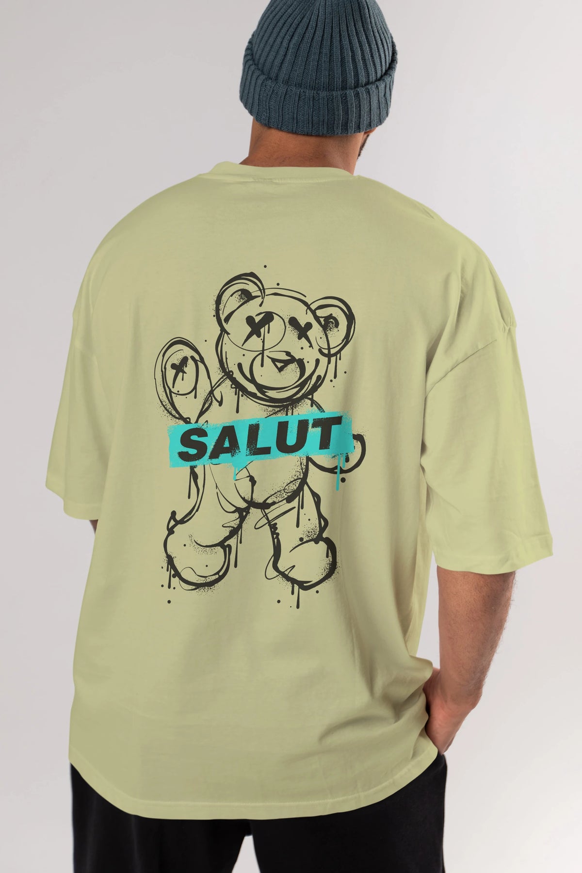 Teddy Bear Salut Arka Baskılı Oversize t-shirt Erkek Kadın Unisex