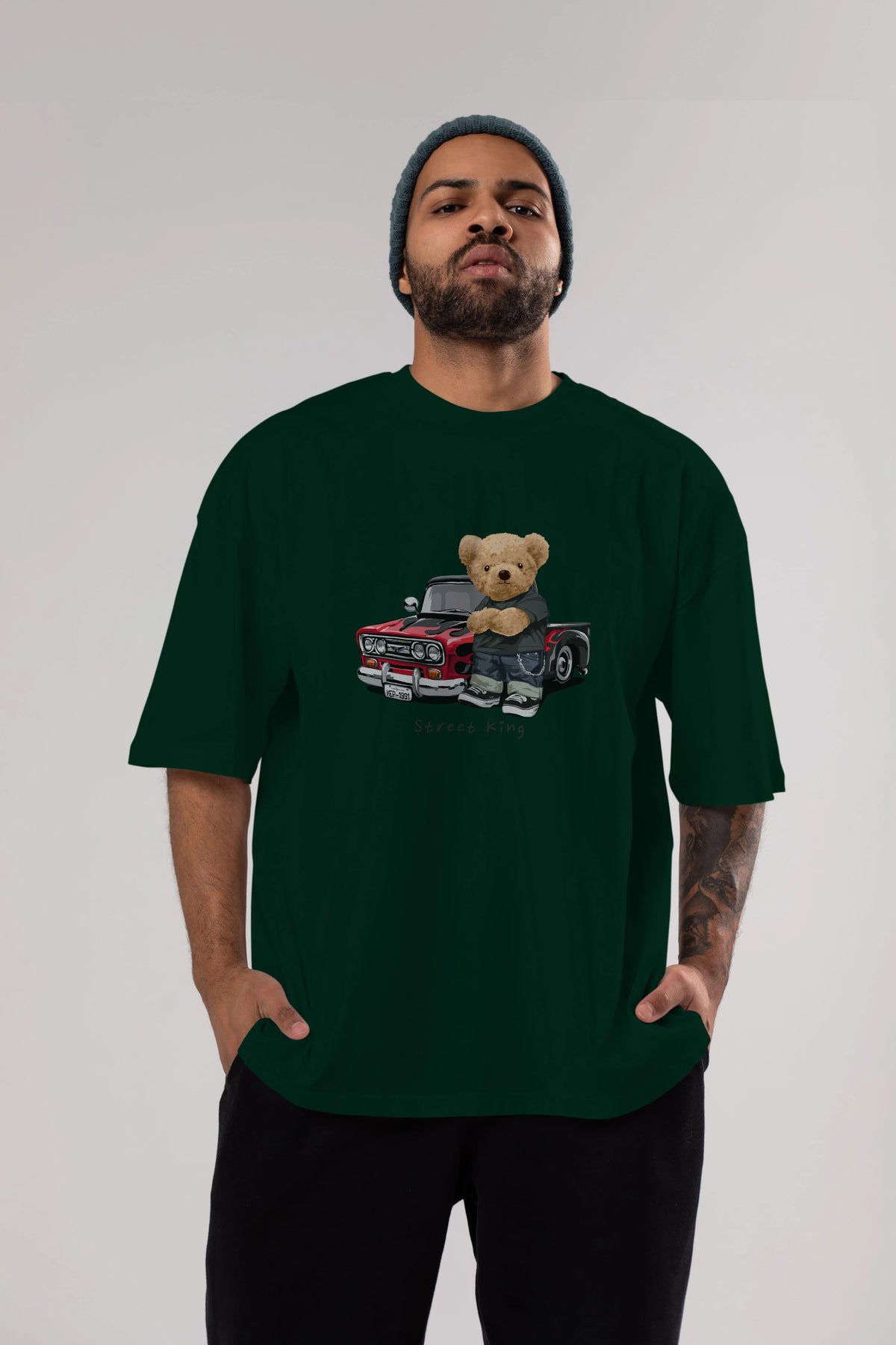 Teddy Bear Street King Ön Baskılı Oversize t-shirt Erkek Kadın Unisex %100 Pamuk