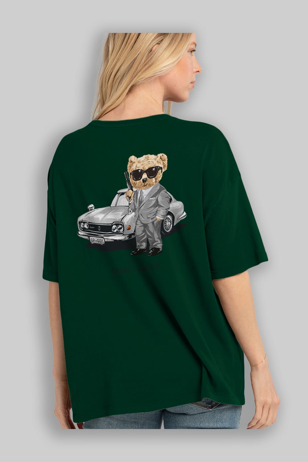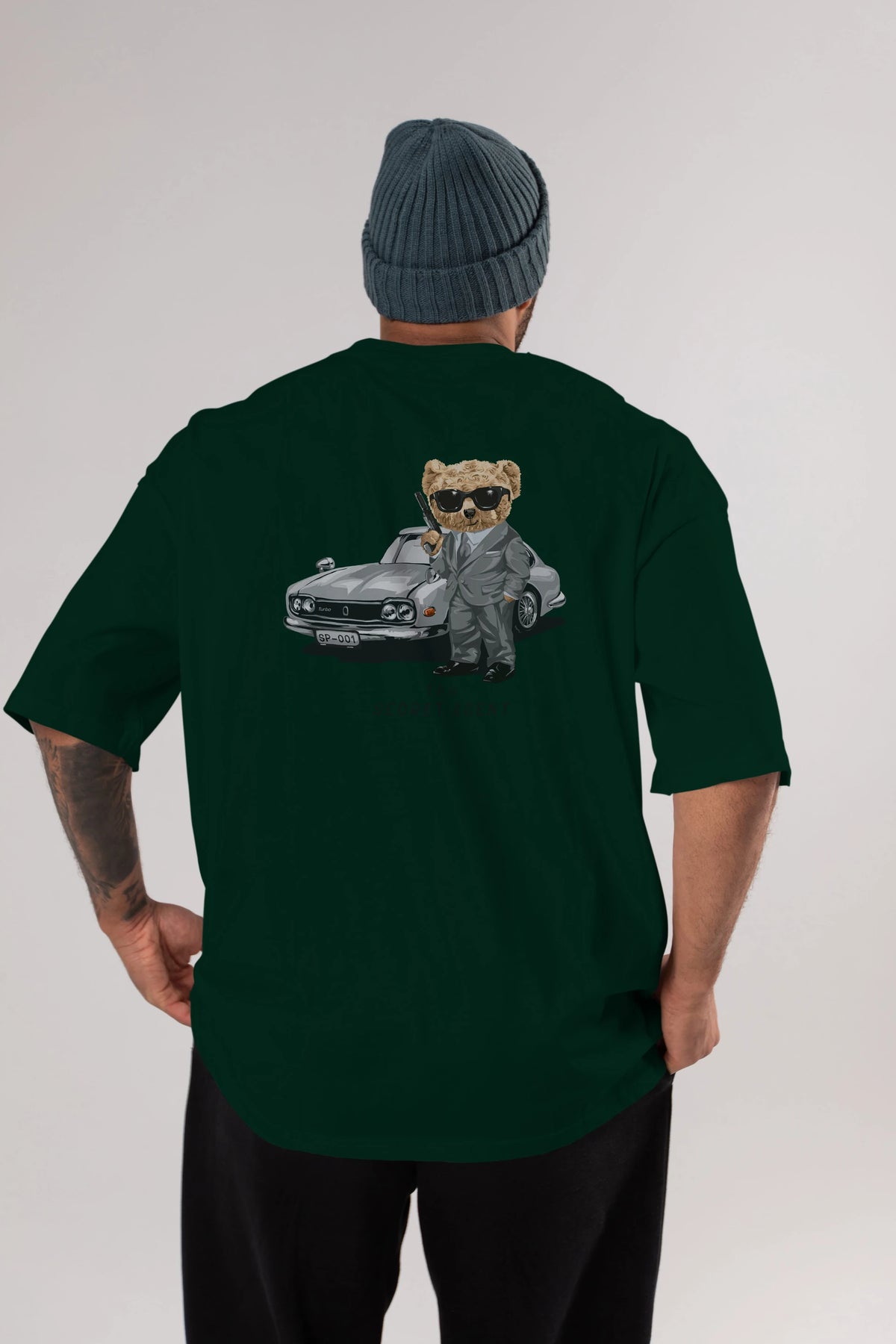 Teddy Bear The Secret Agent Arka Baskılı Oversize t-shirt Erkek Kadın Unisex %100 Pamuk