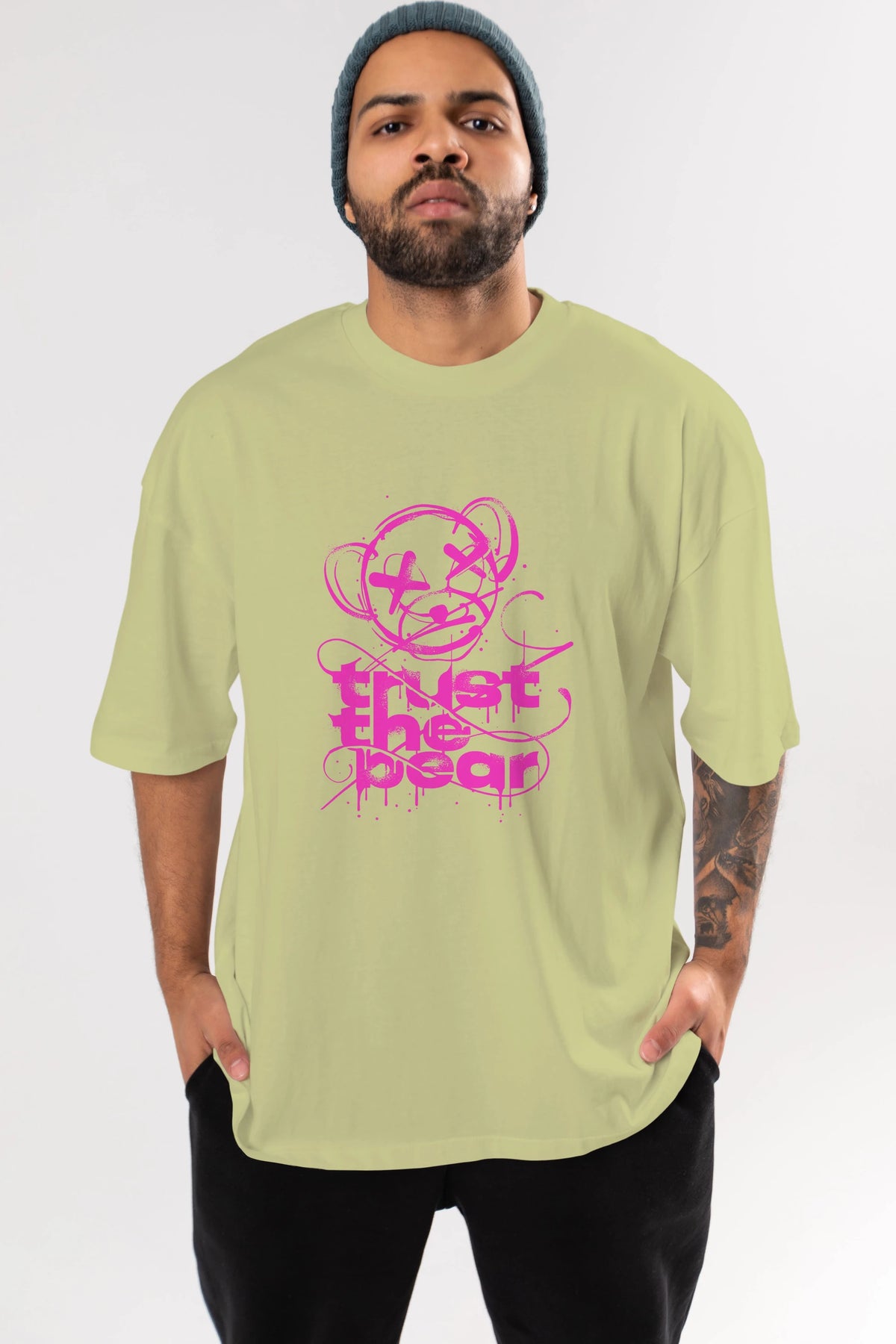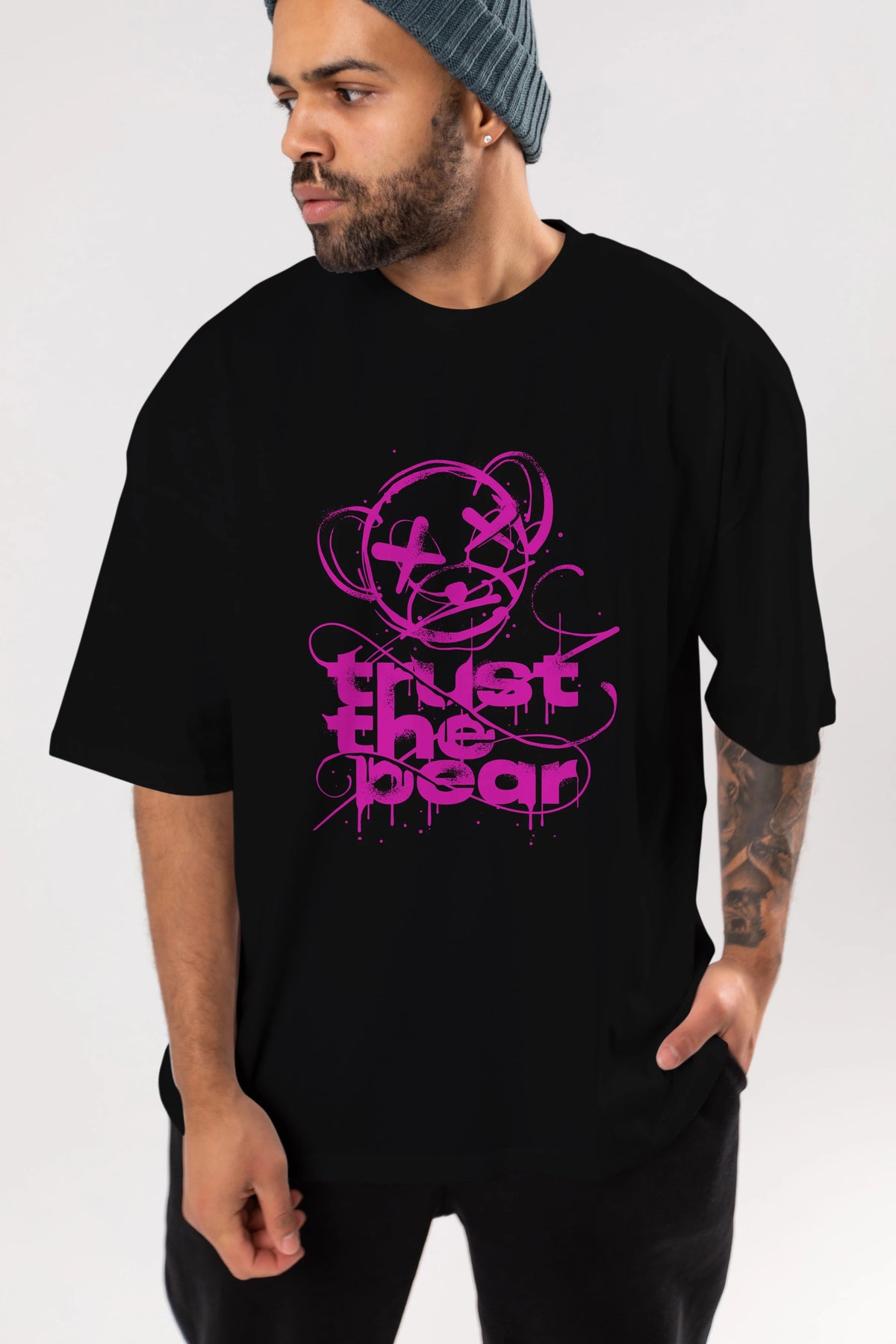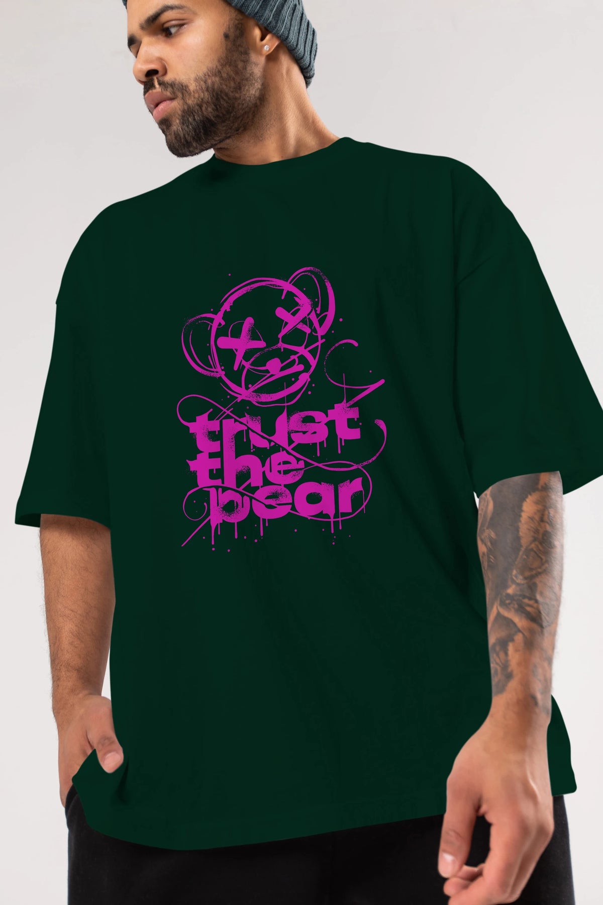Trust The Bear 2 Ön Baskılı Oversize t-shirt Erkek Kadın Unisex