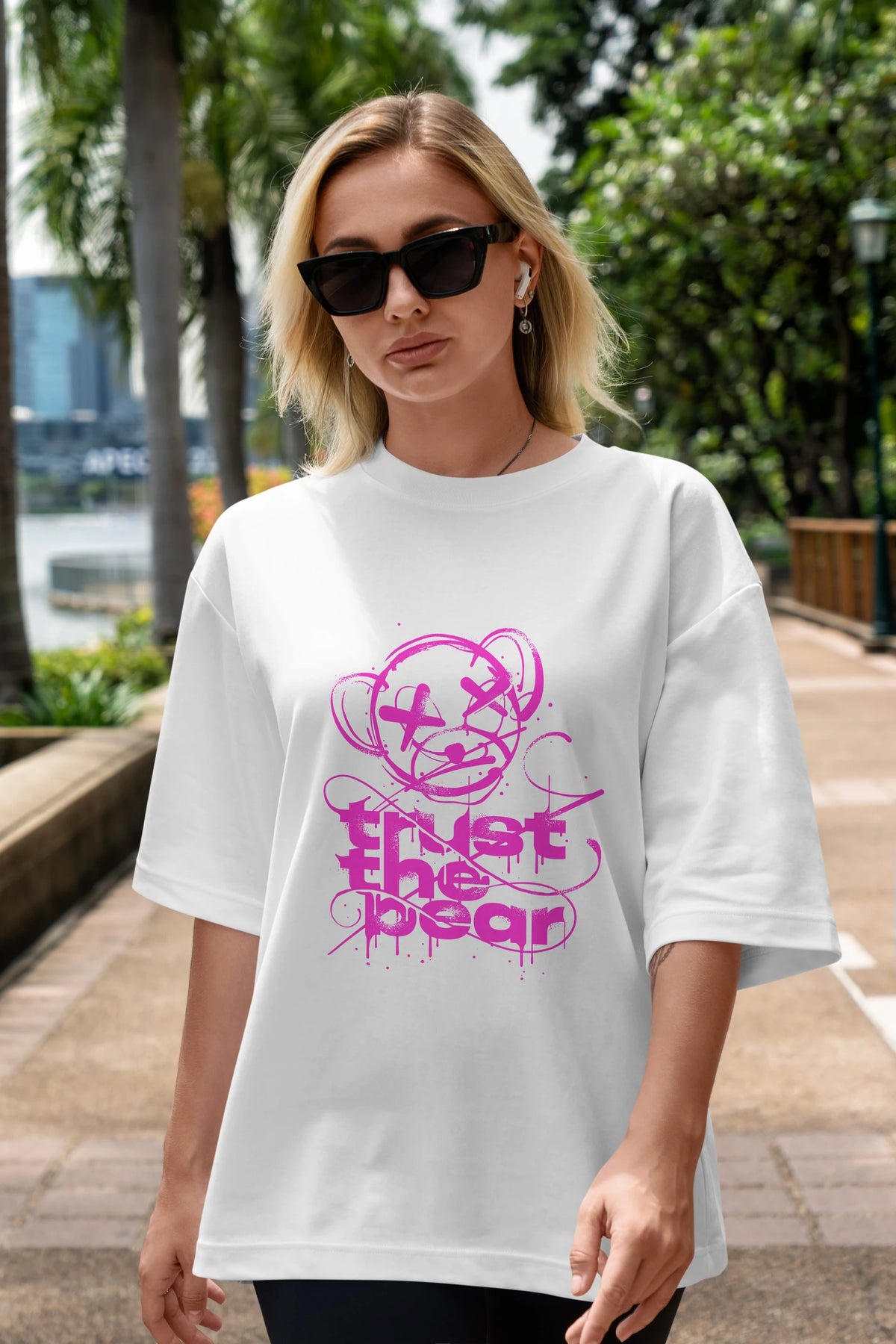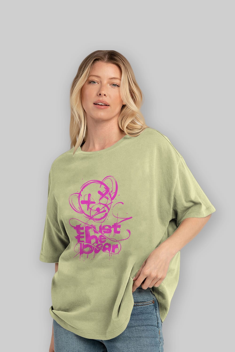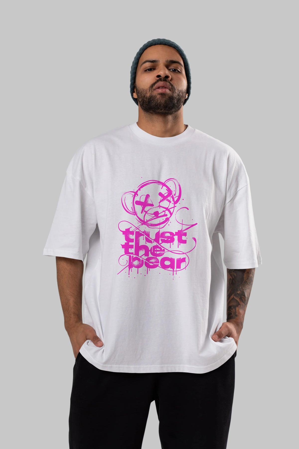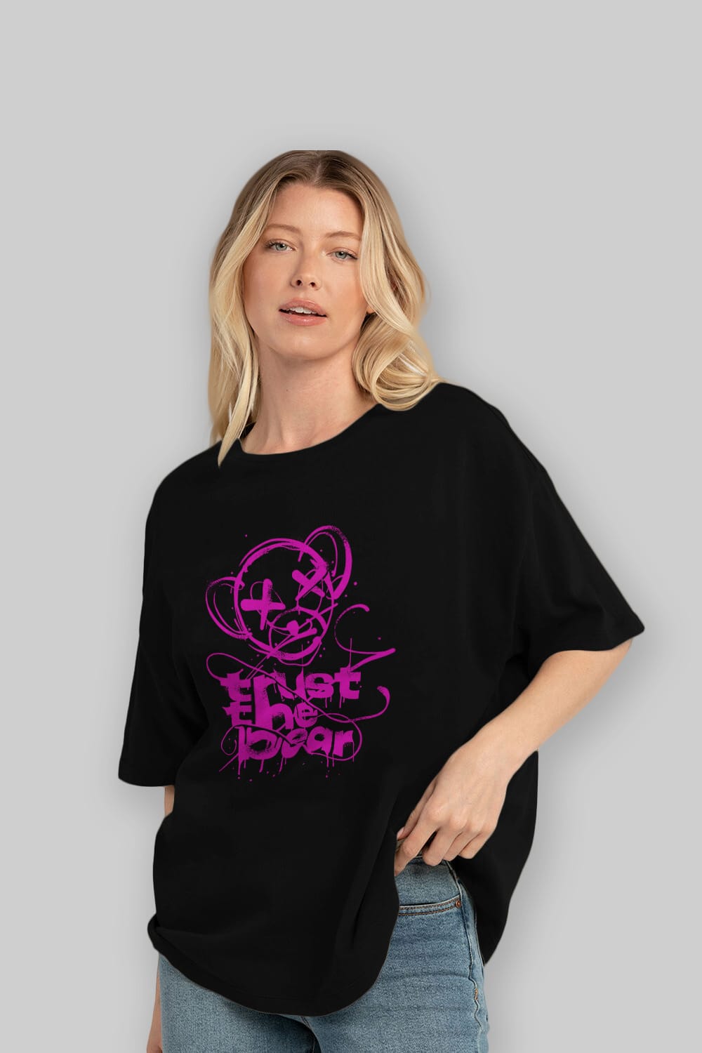Trust The Bear 2 Ön Baskılı Oversize t-shirt Erkek Kadın Unisex