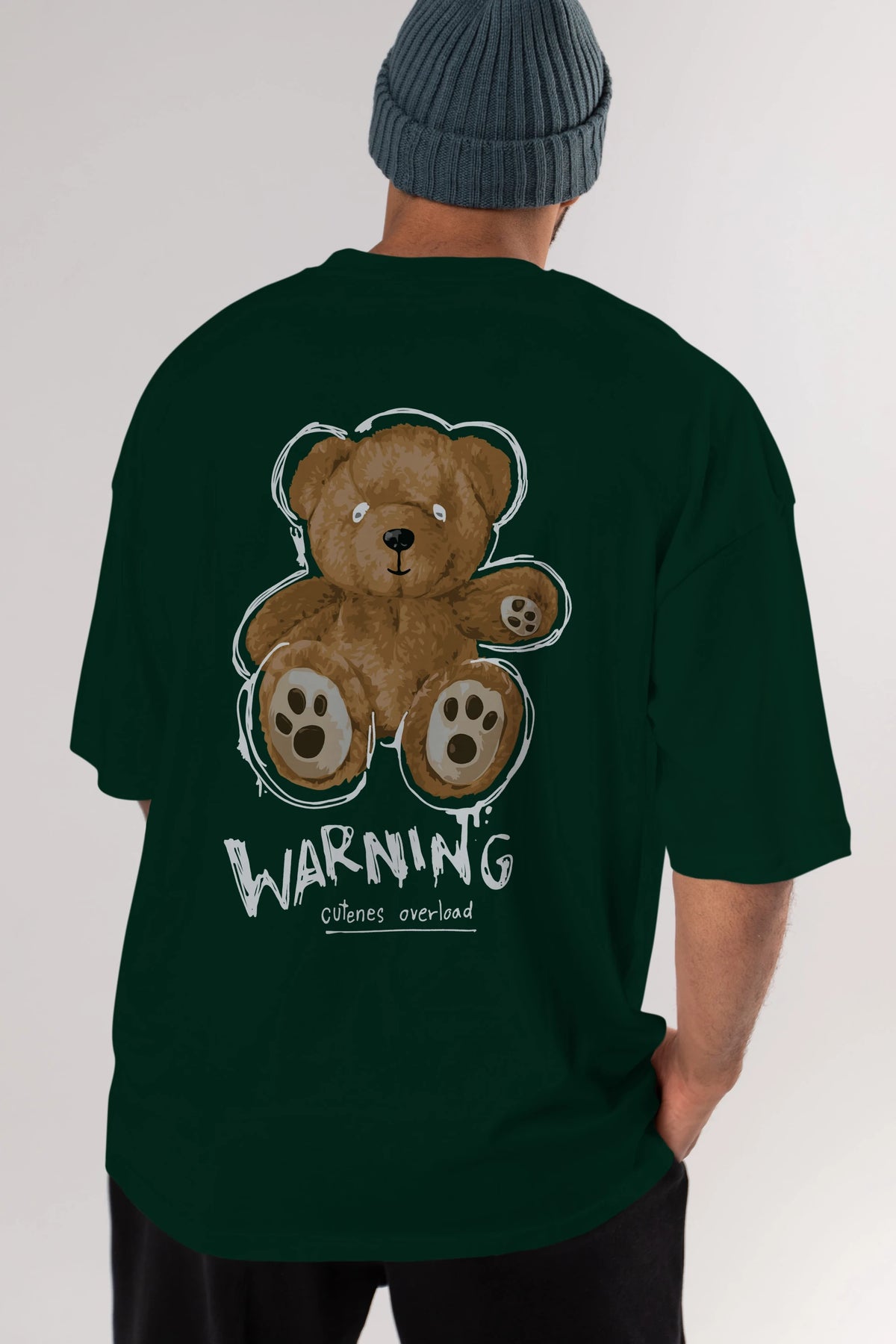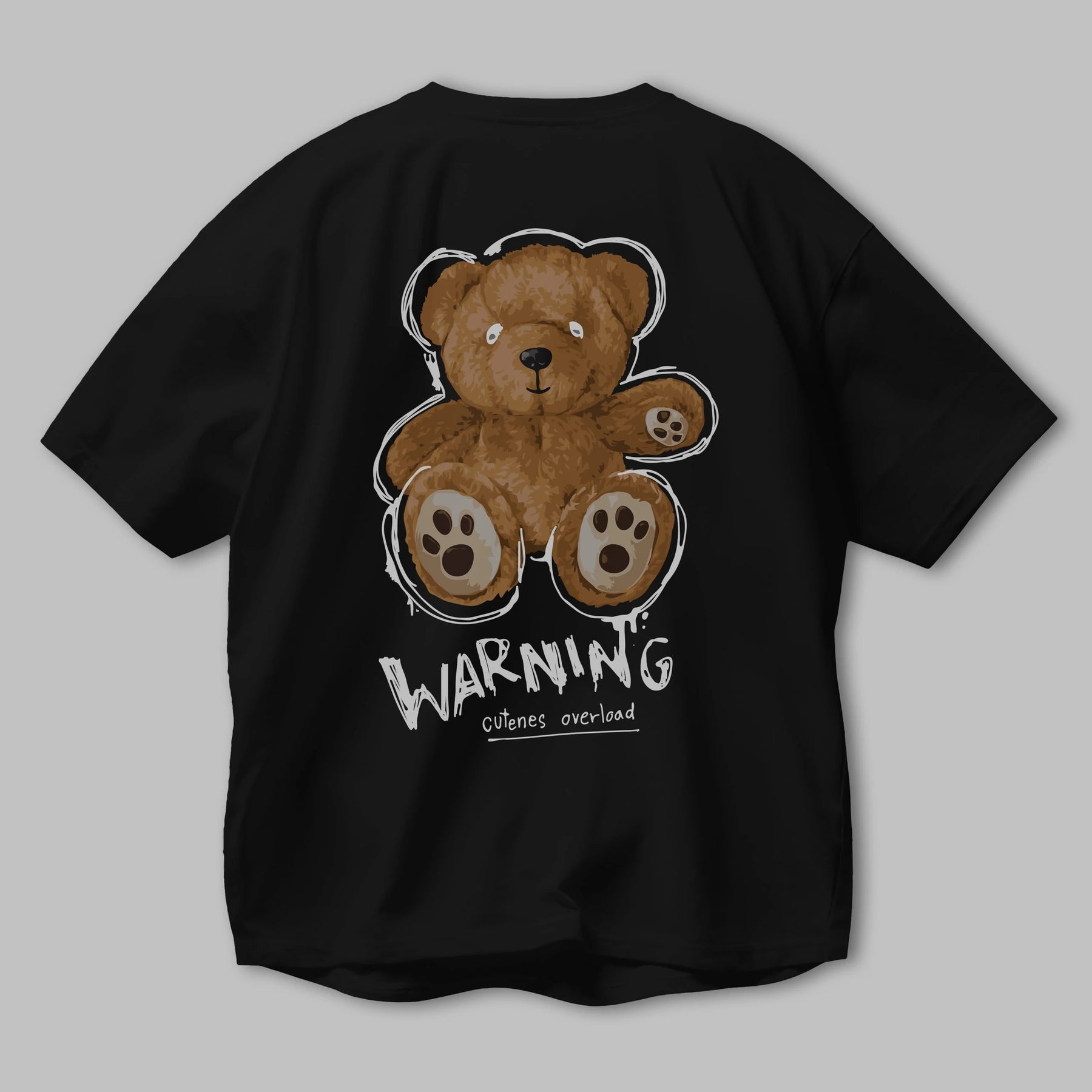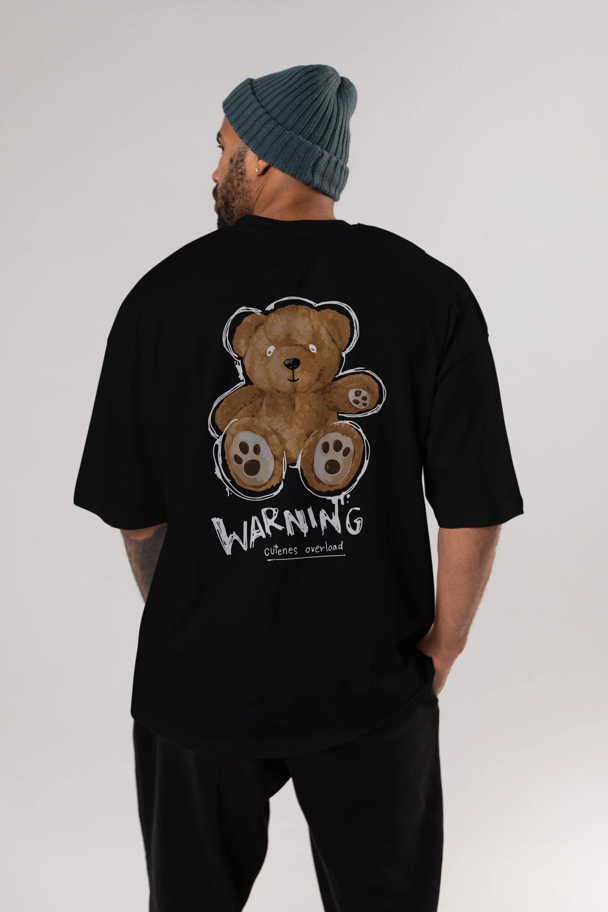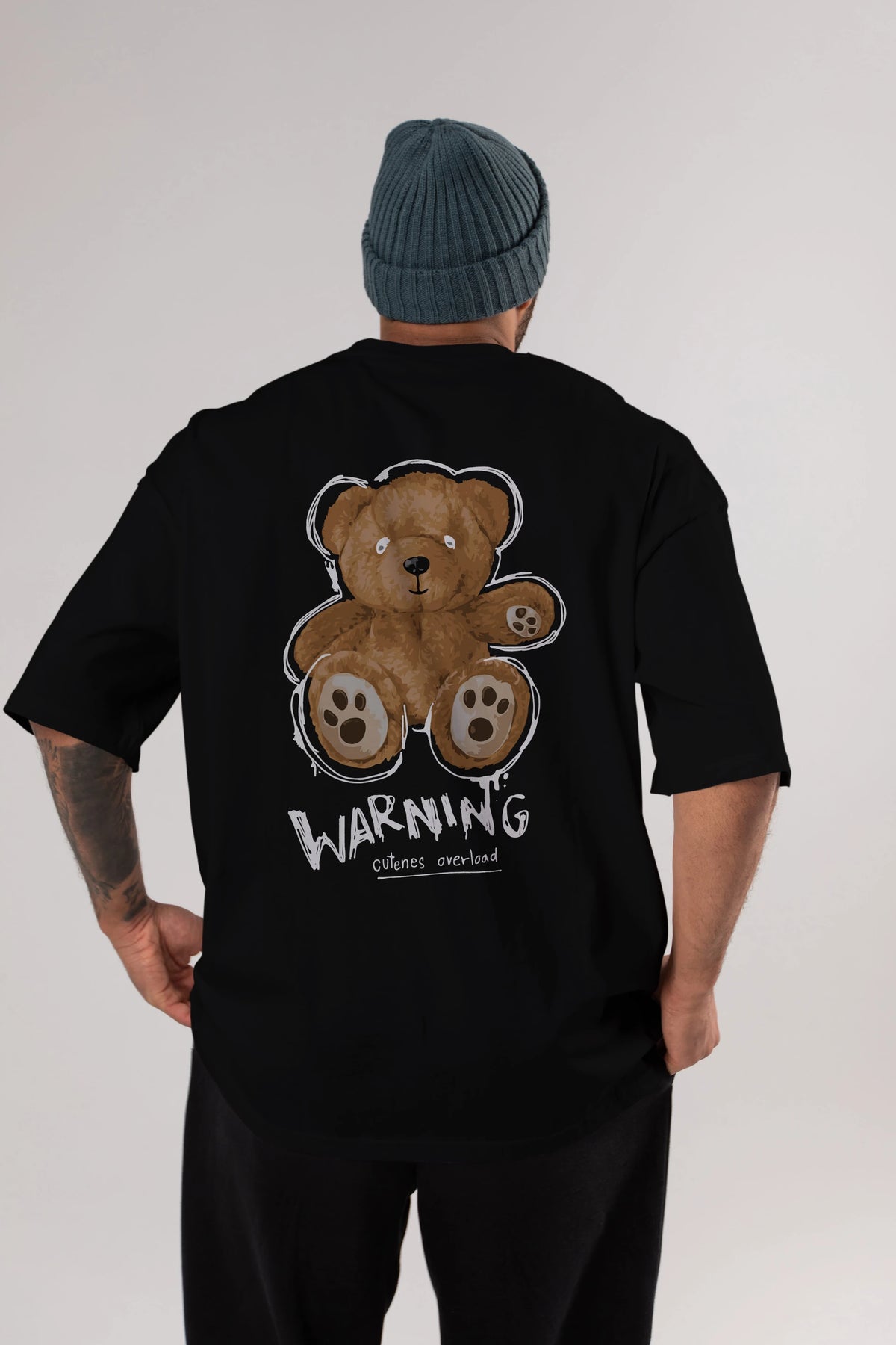Warning Cuteness Bear Arka Baskılı Oversize t-shirt Erkek Kadın Unisex