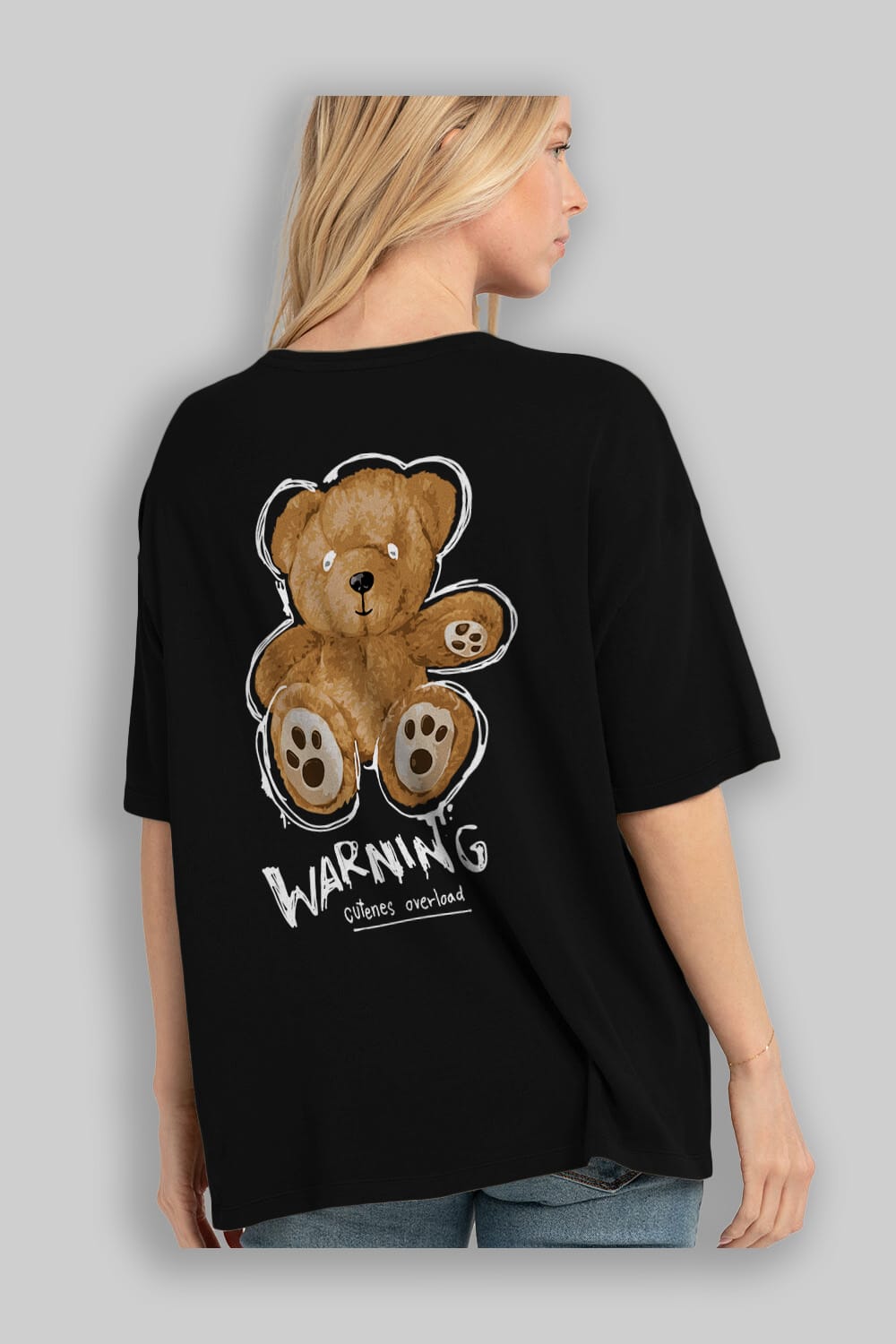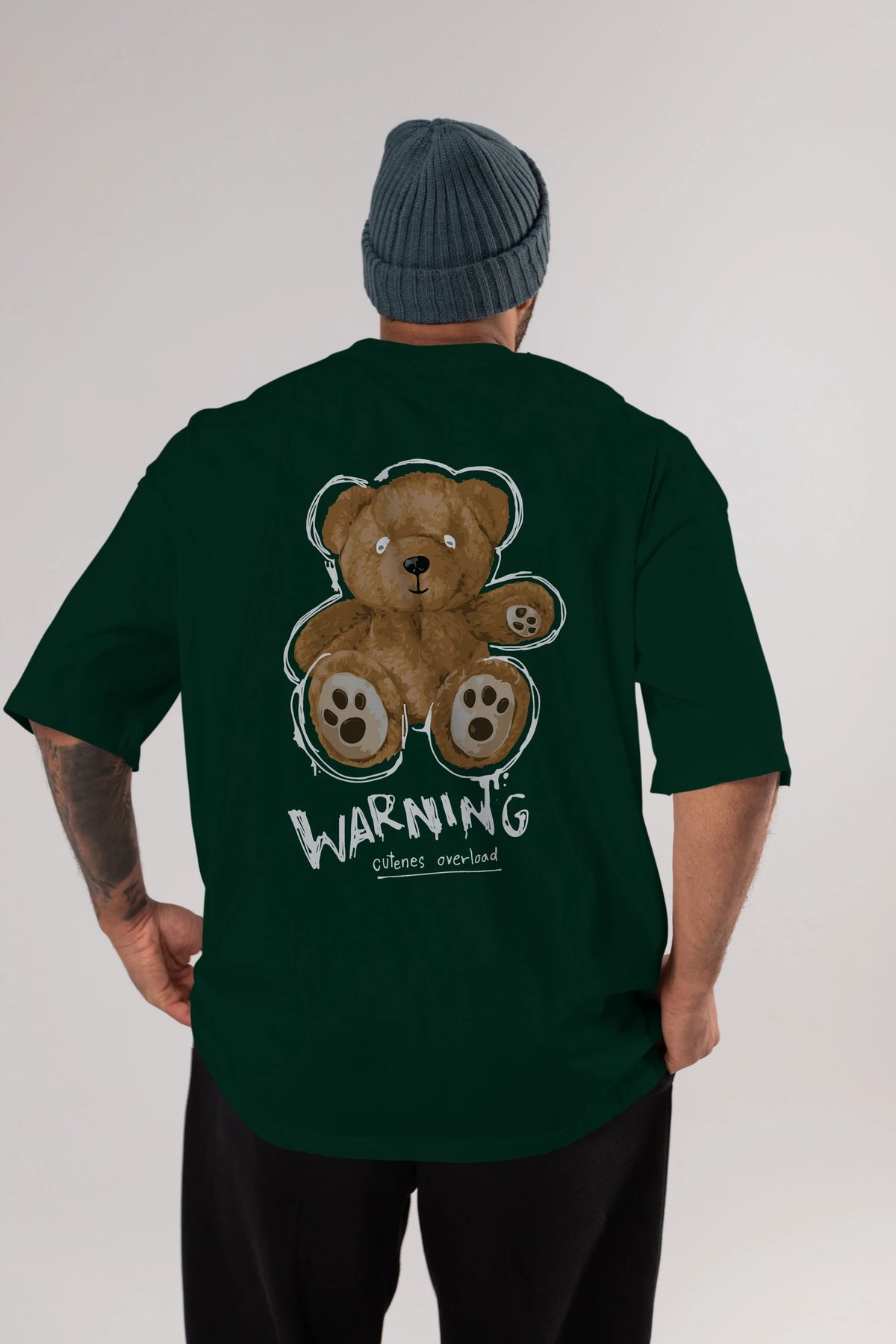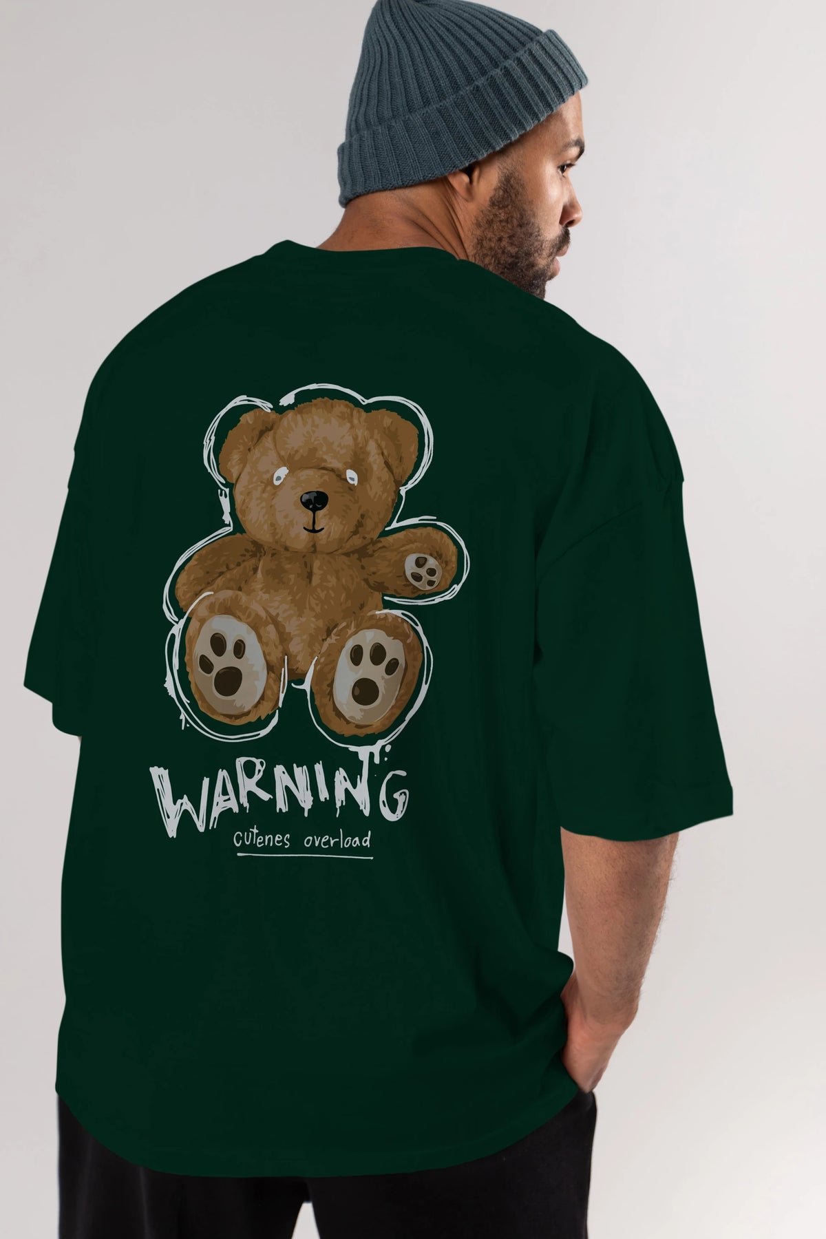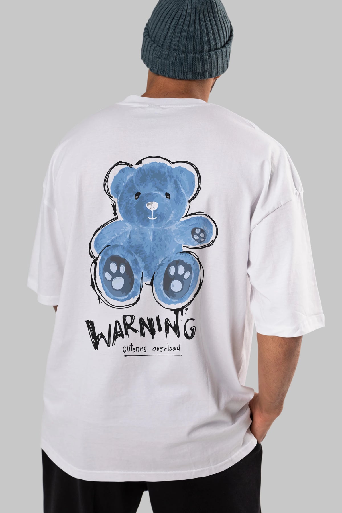 Warning Cuteness Bear Arka Baskılı Oversize t-shirt Erkek Kadın Unisex