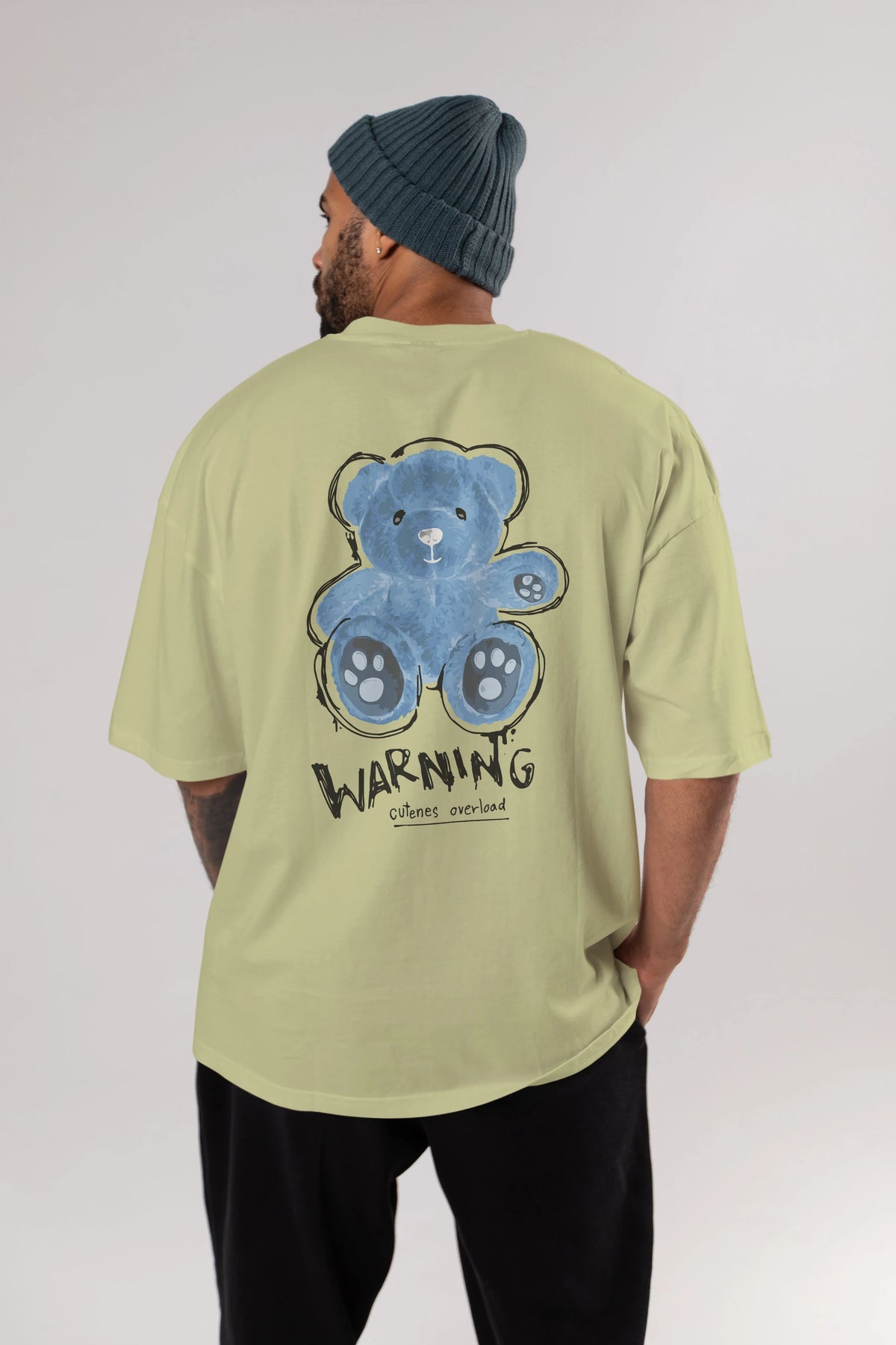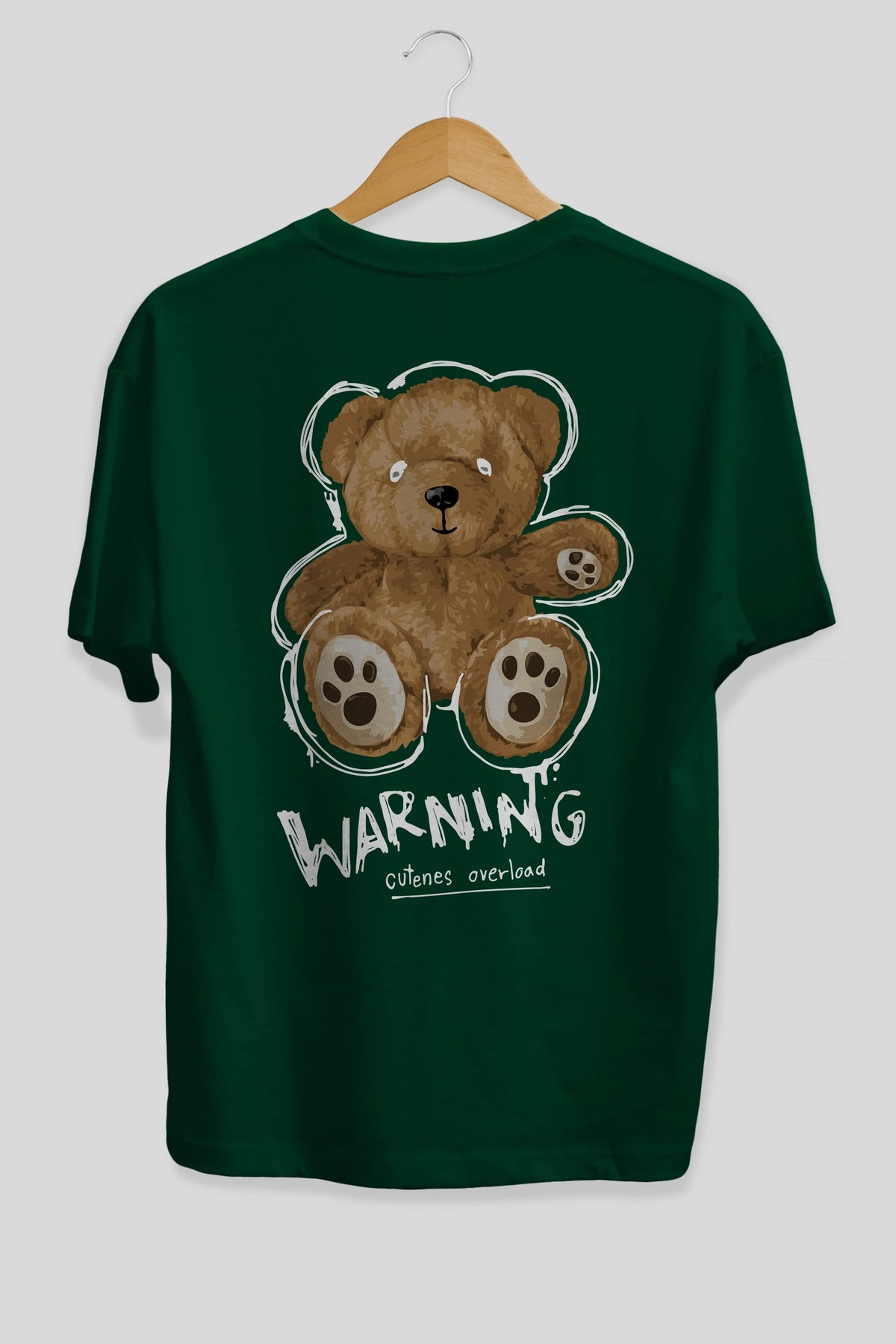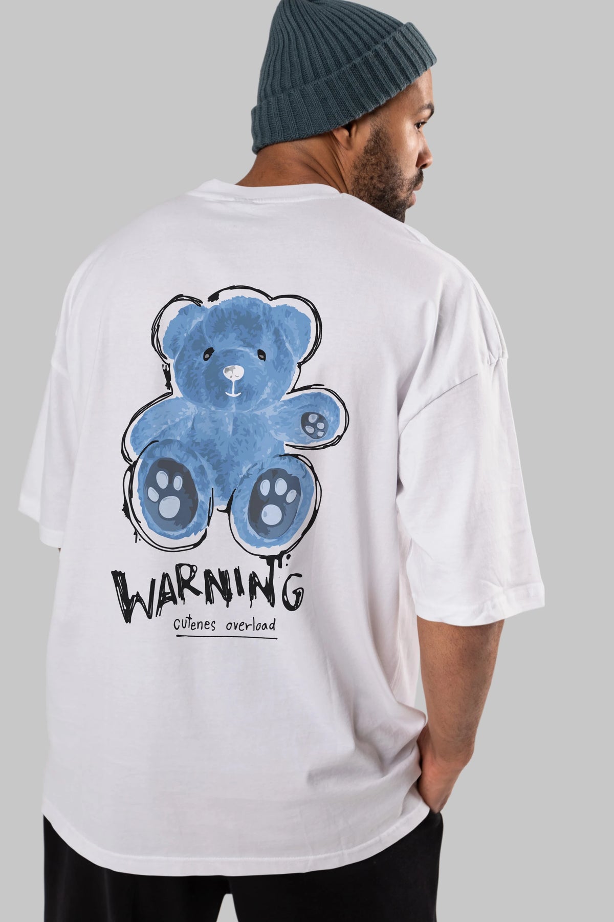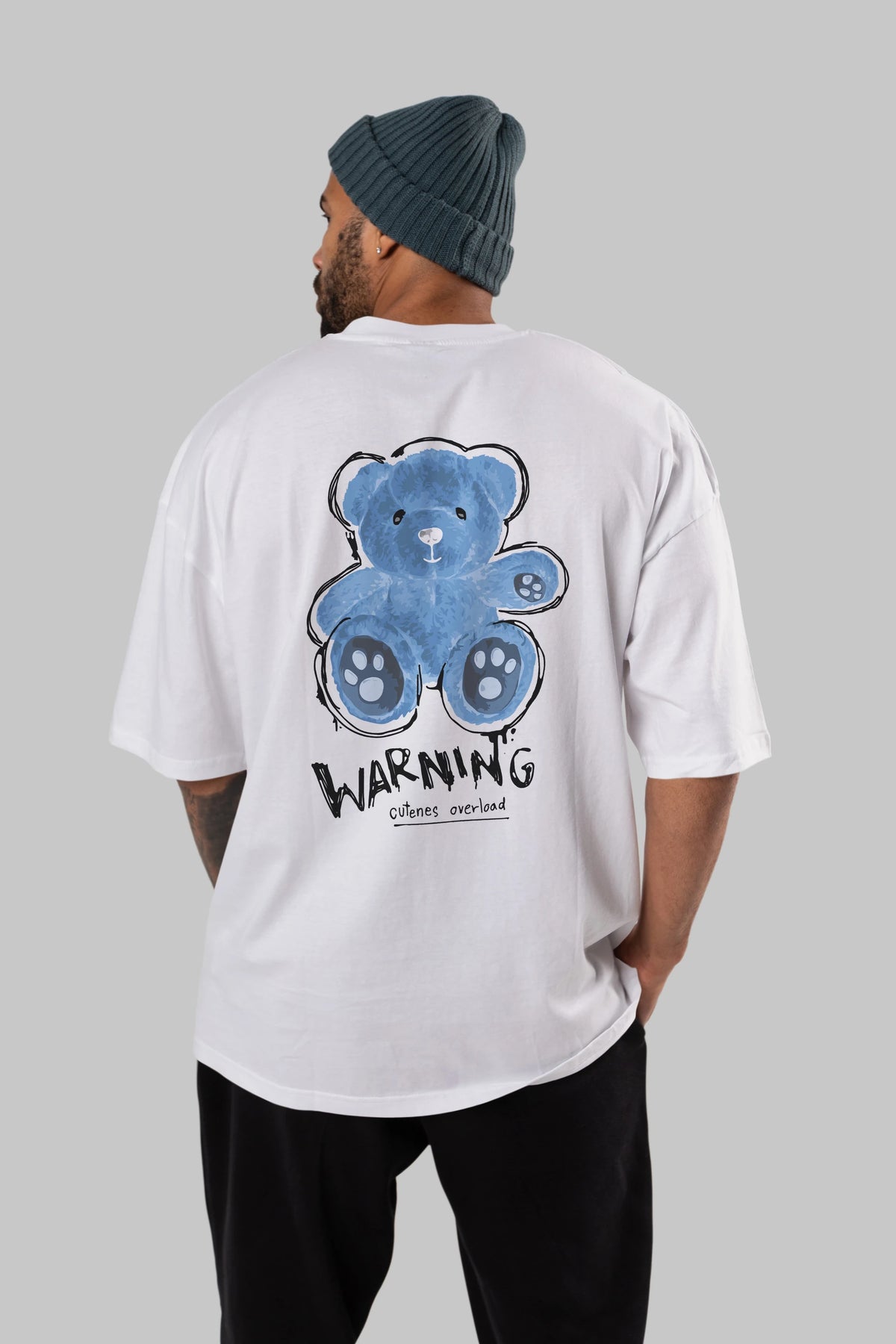 Warning Cuteness Bear Arka Baskılı Oversize t-shirt Erkek Kadın Unisex