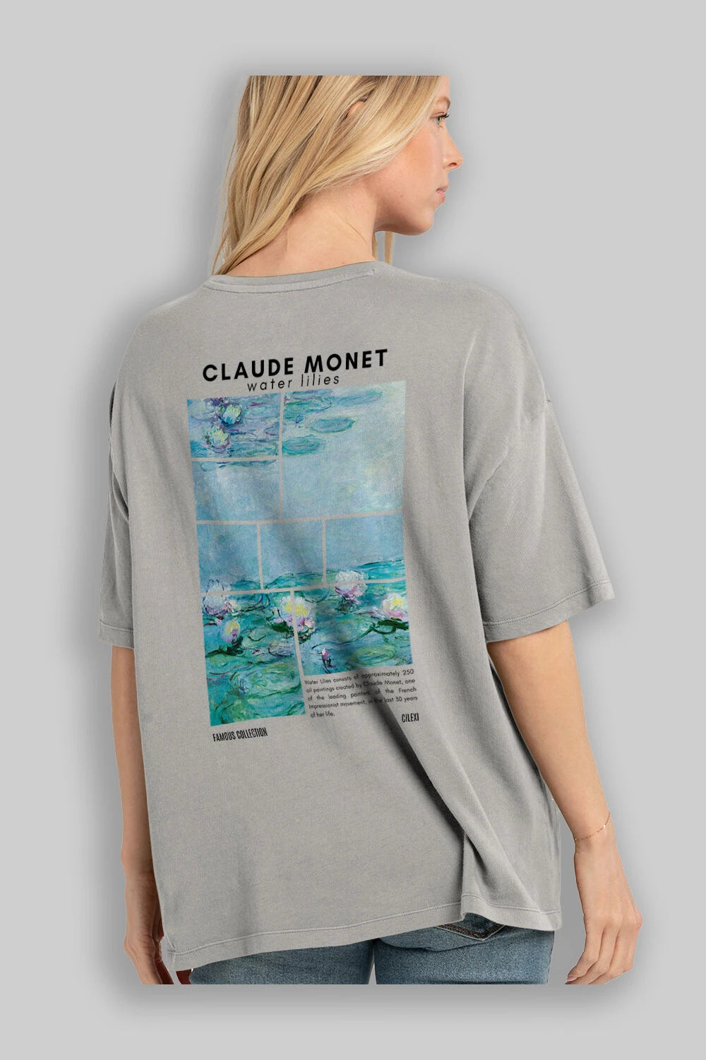 Claude Monet Arka Baskılı Oversize t-shirt Erkek Kadın Bisiklet Yaka Pamuk tişort