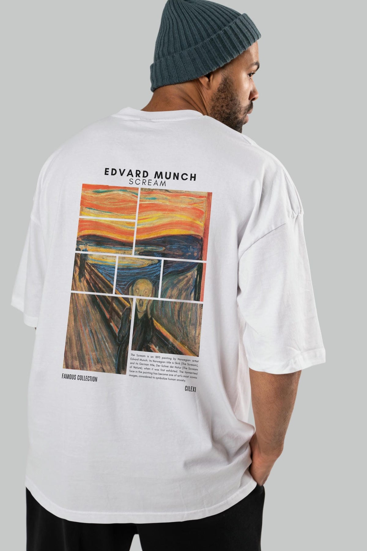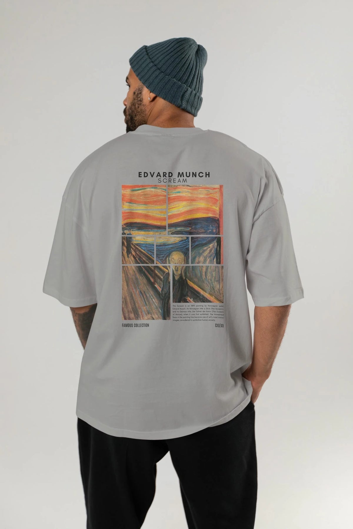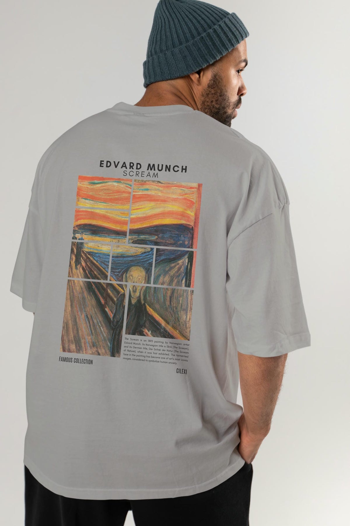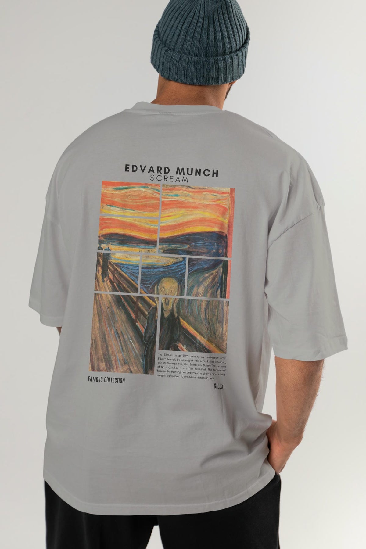 Edvard Munch Scream Arka Baskılı Oversize t-shirt Erkek Kadın Bisiklet Yaka Pamuk tişort