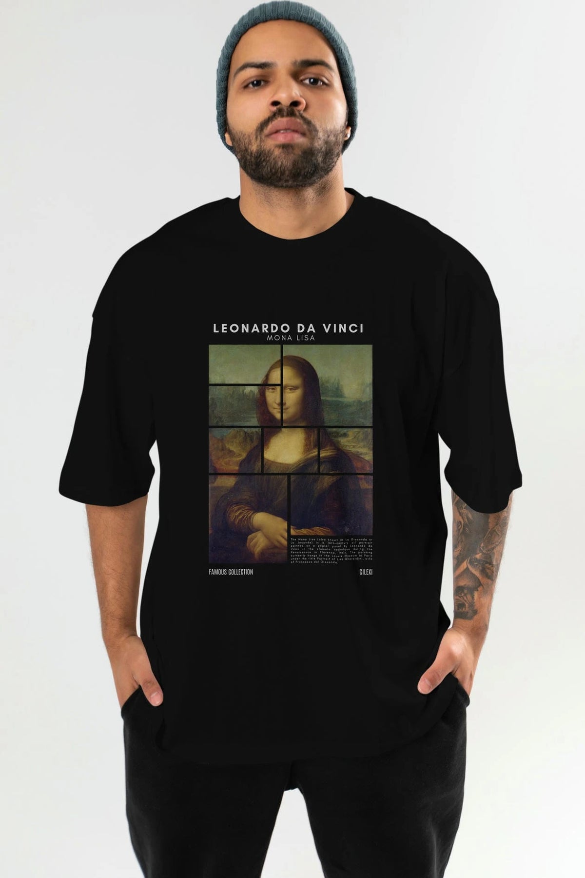 Leonardo Da Vinci Mona Lisa ön Baskılı Oversize t-shirt Erkek Kadın Bisiklet Yaka Pamuk tişort