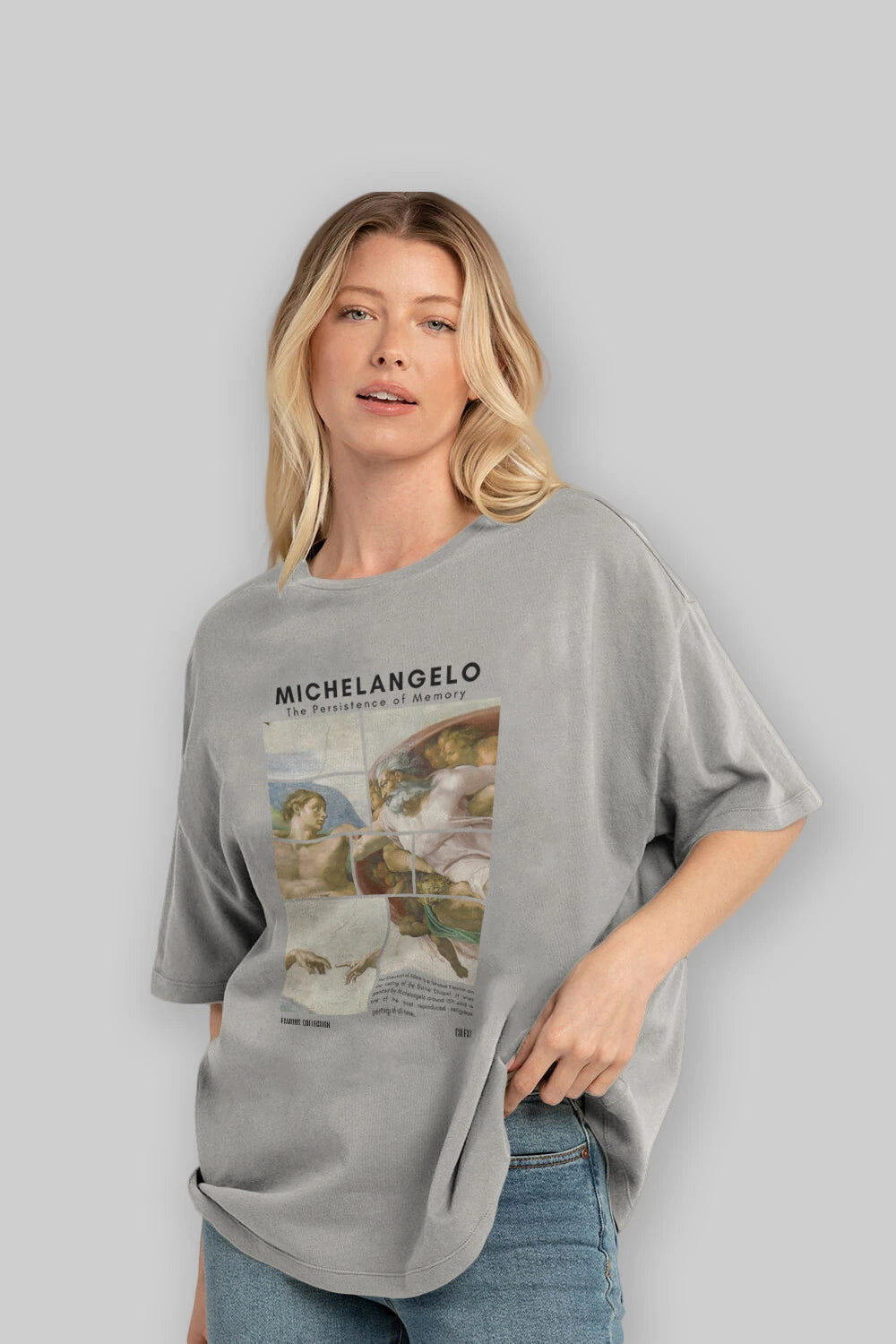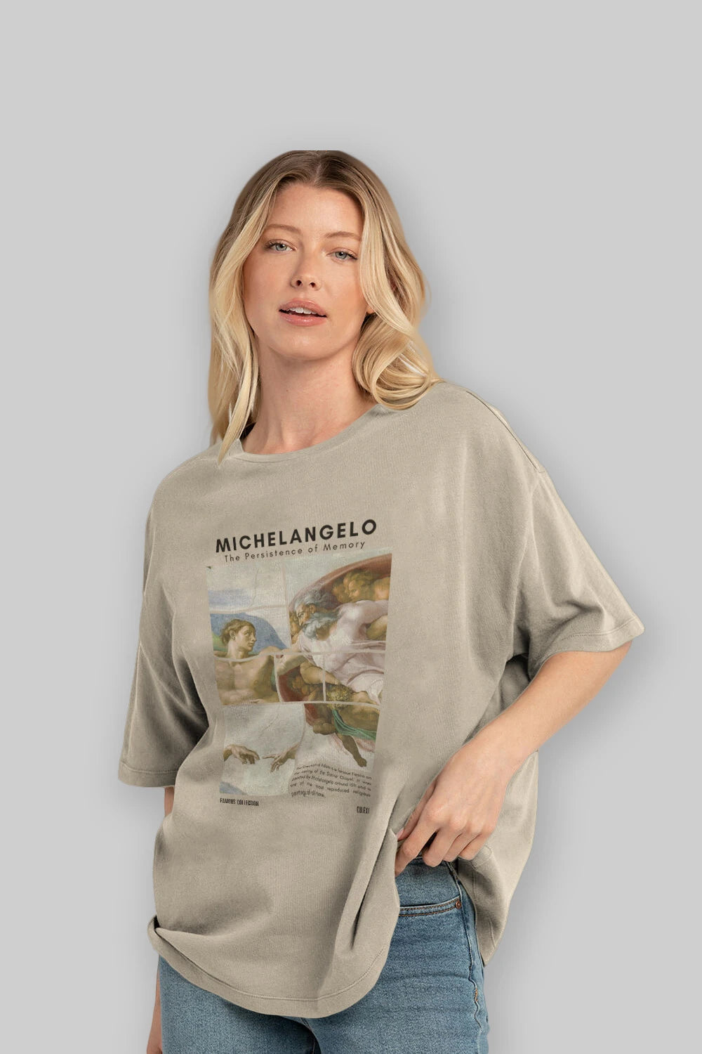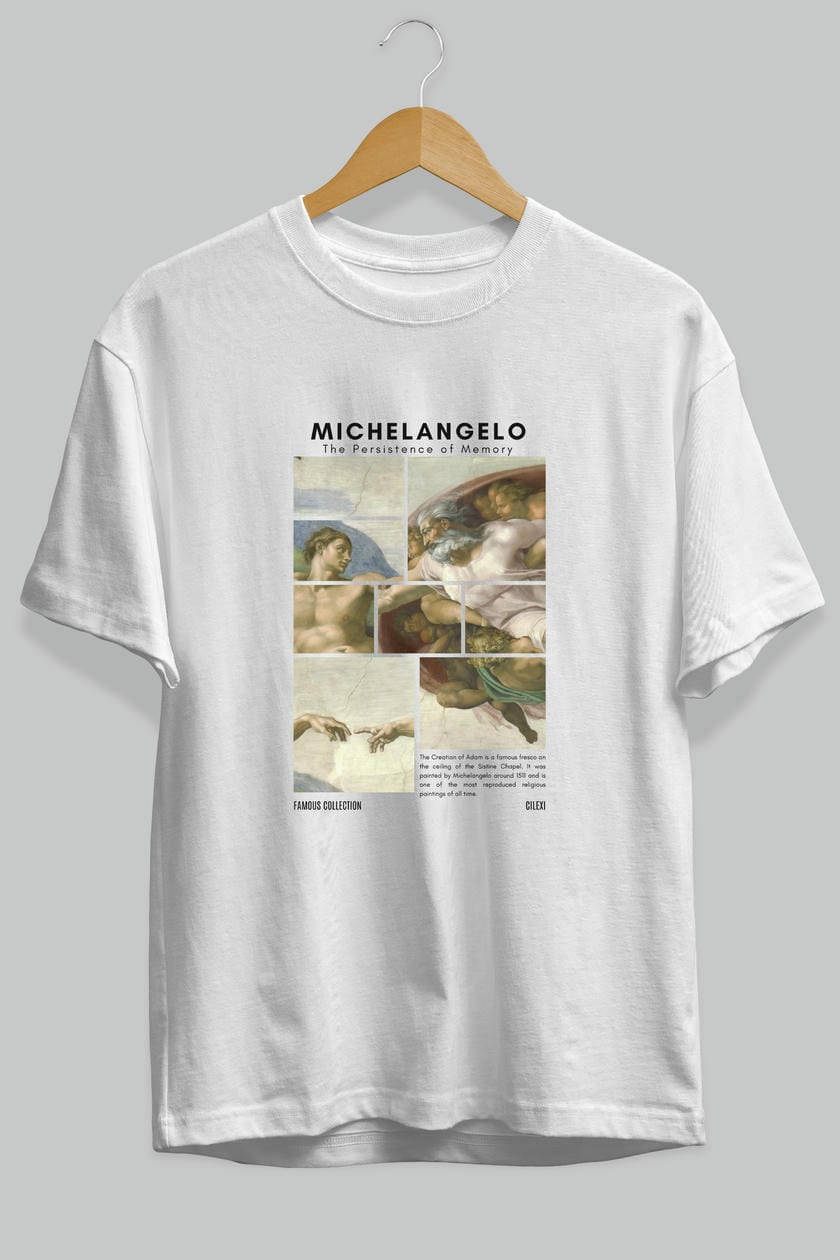 Michelangelo ön Baskılı Oversize t-shirt Erkek Kadın Bisiklet Yaka Pamuk tişort