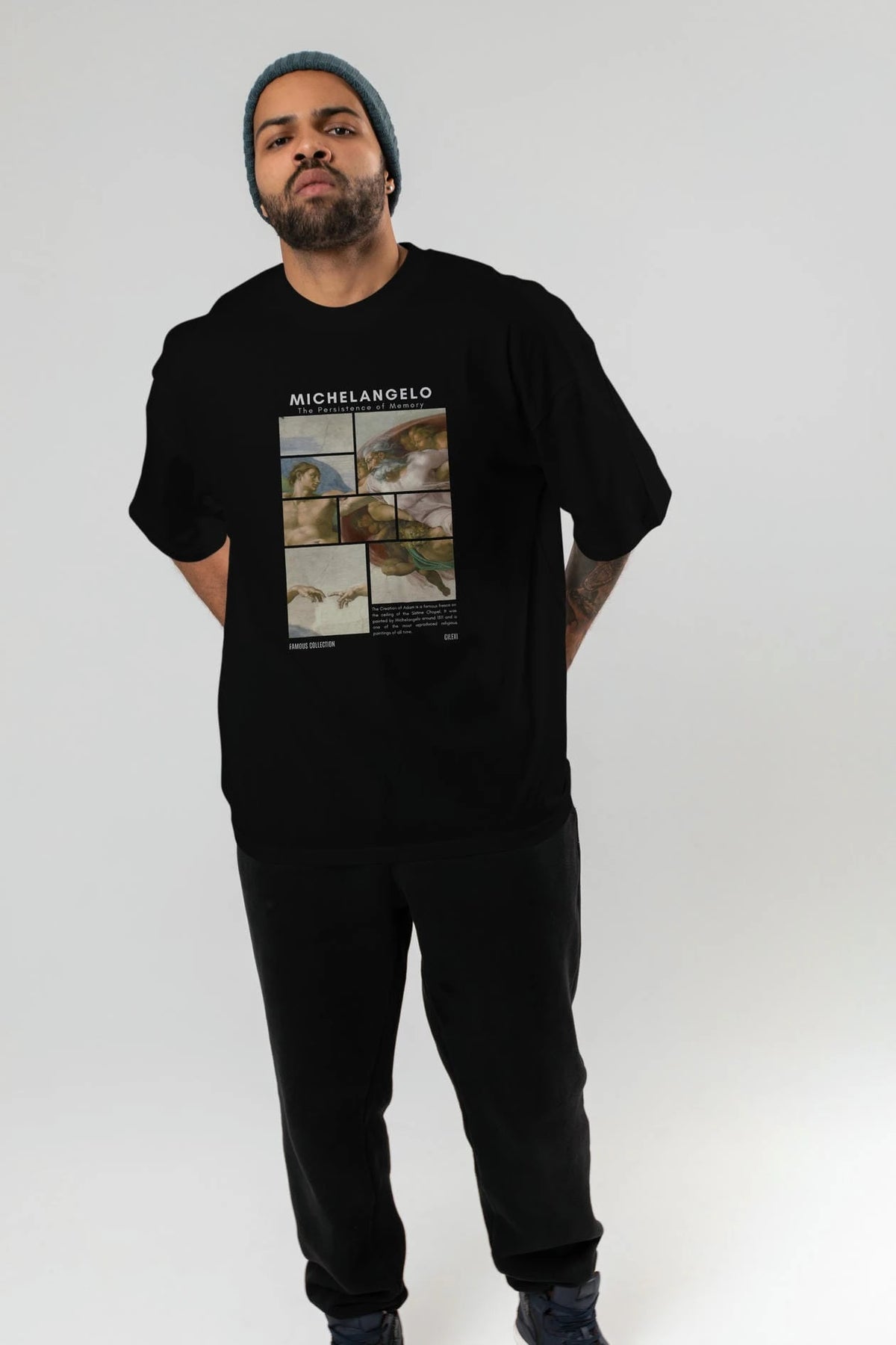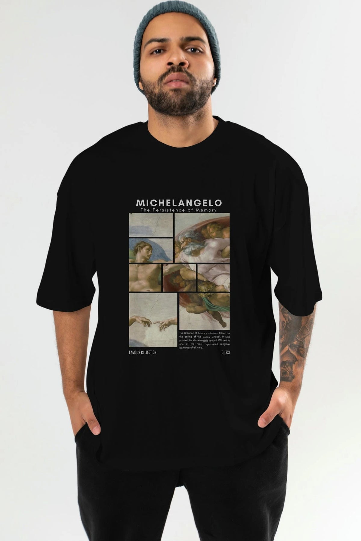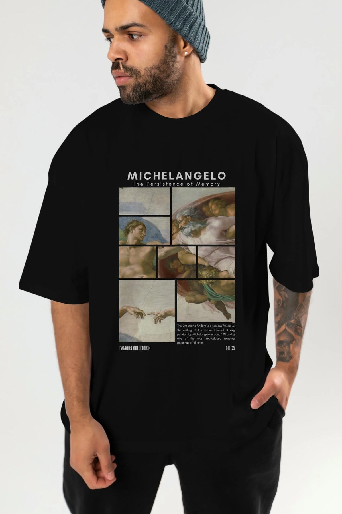 Michelangelo ön Baskılı Oversize t-shirt Erkek Kadın Bisiklet Yaka Pamuk tişort