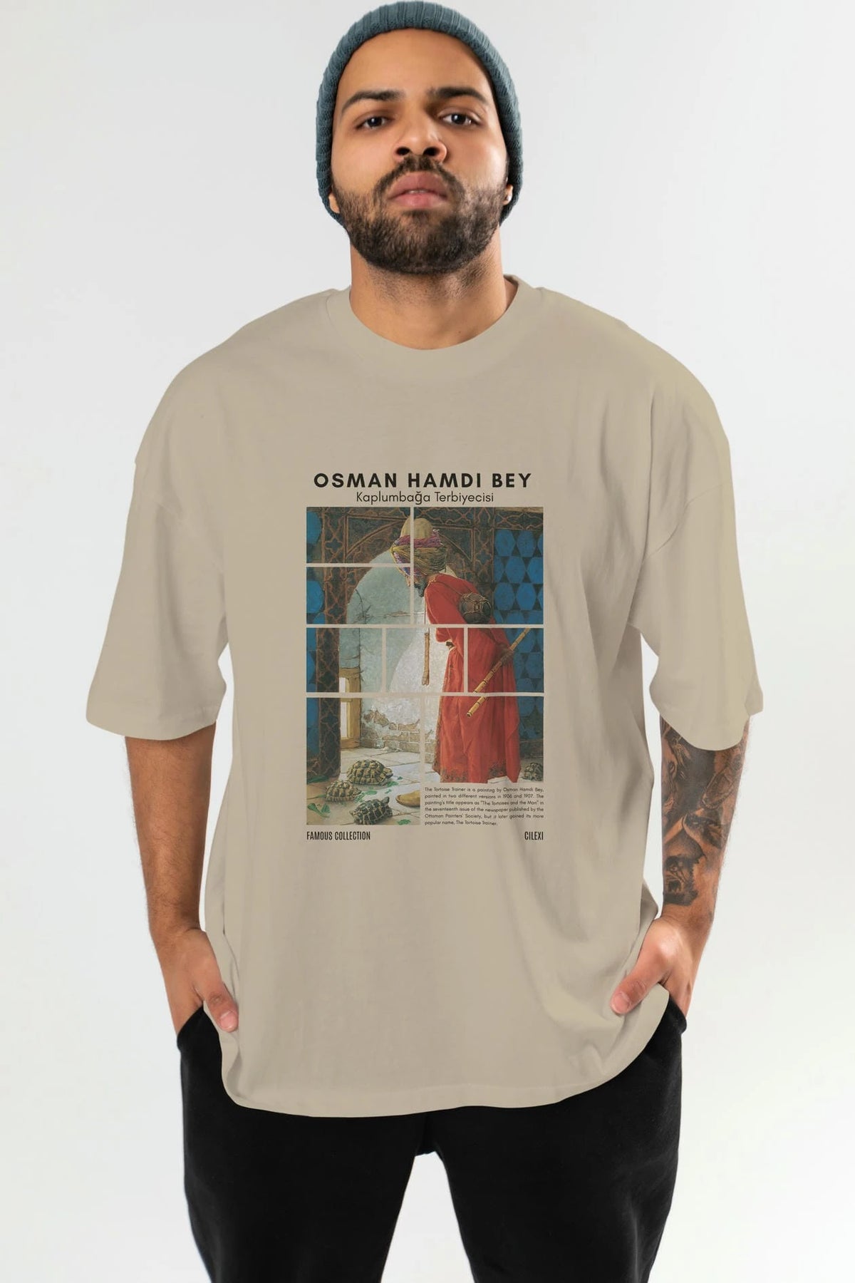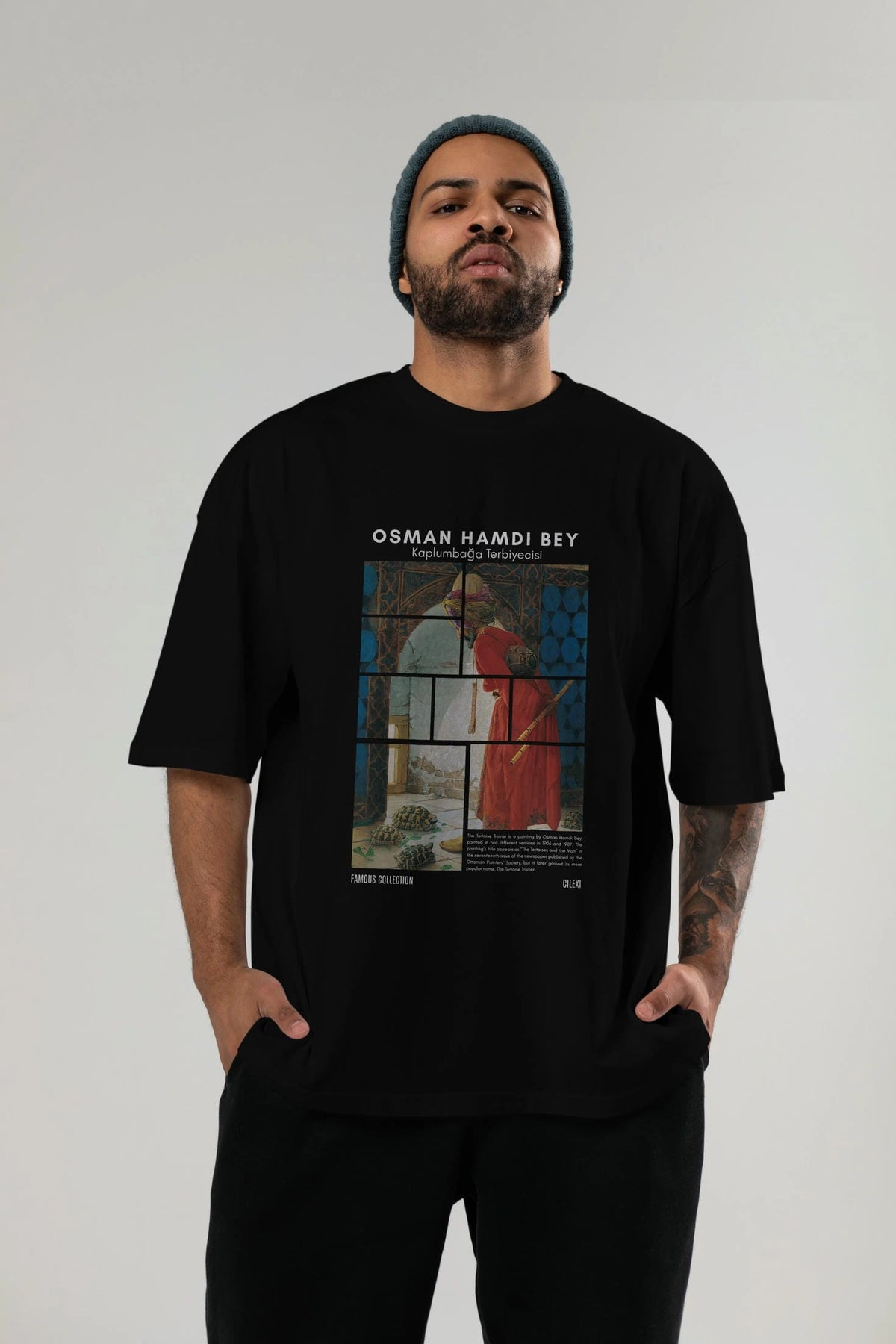 Osman Hamdi Bey ön Baskılı Oversize t-shirt Erkek Kadın Bisiklet Yaka Pamuk tişort