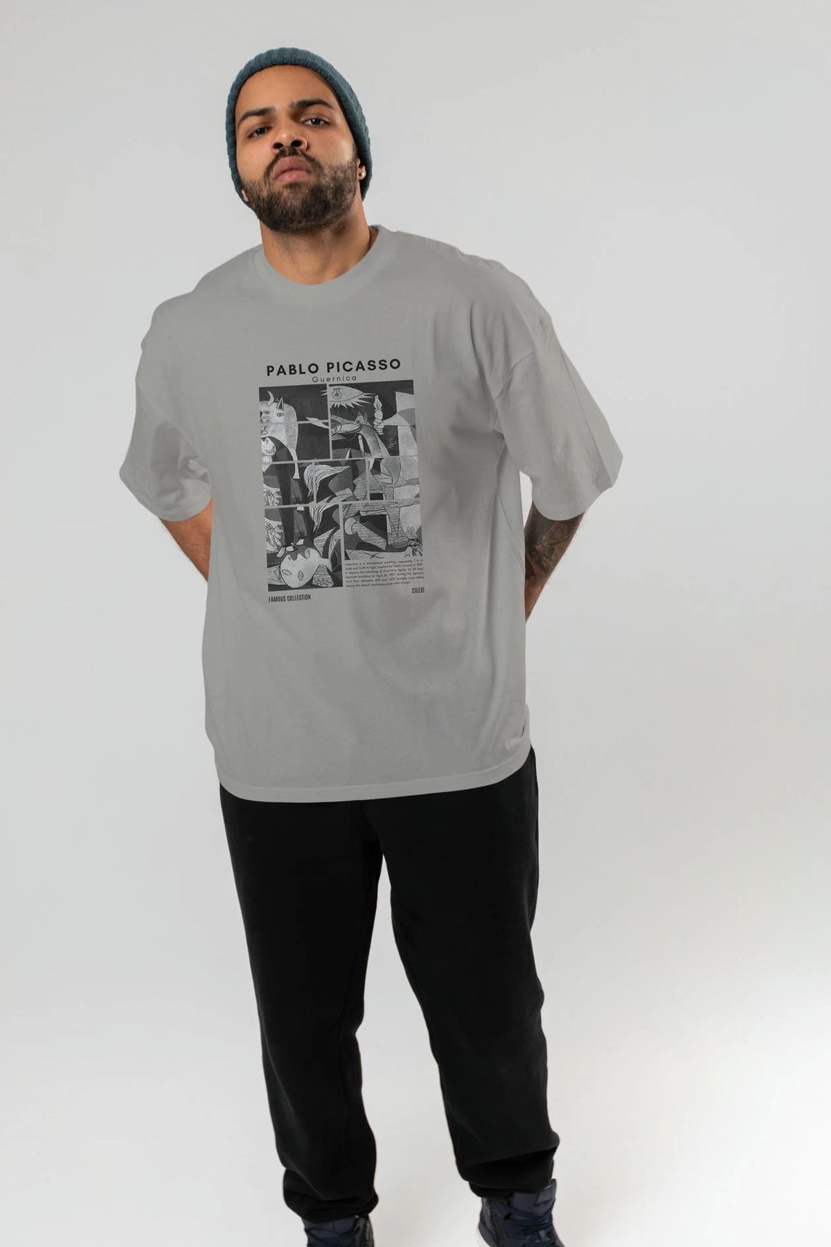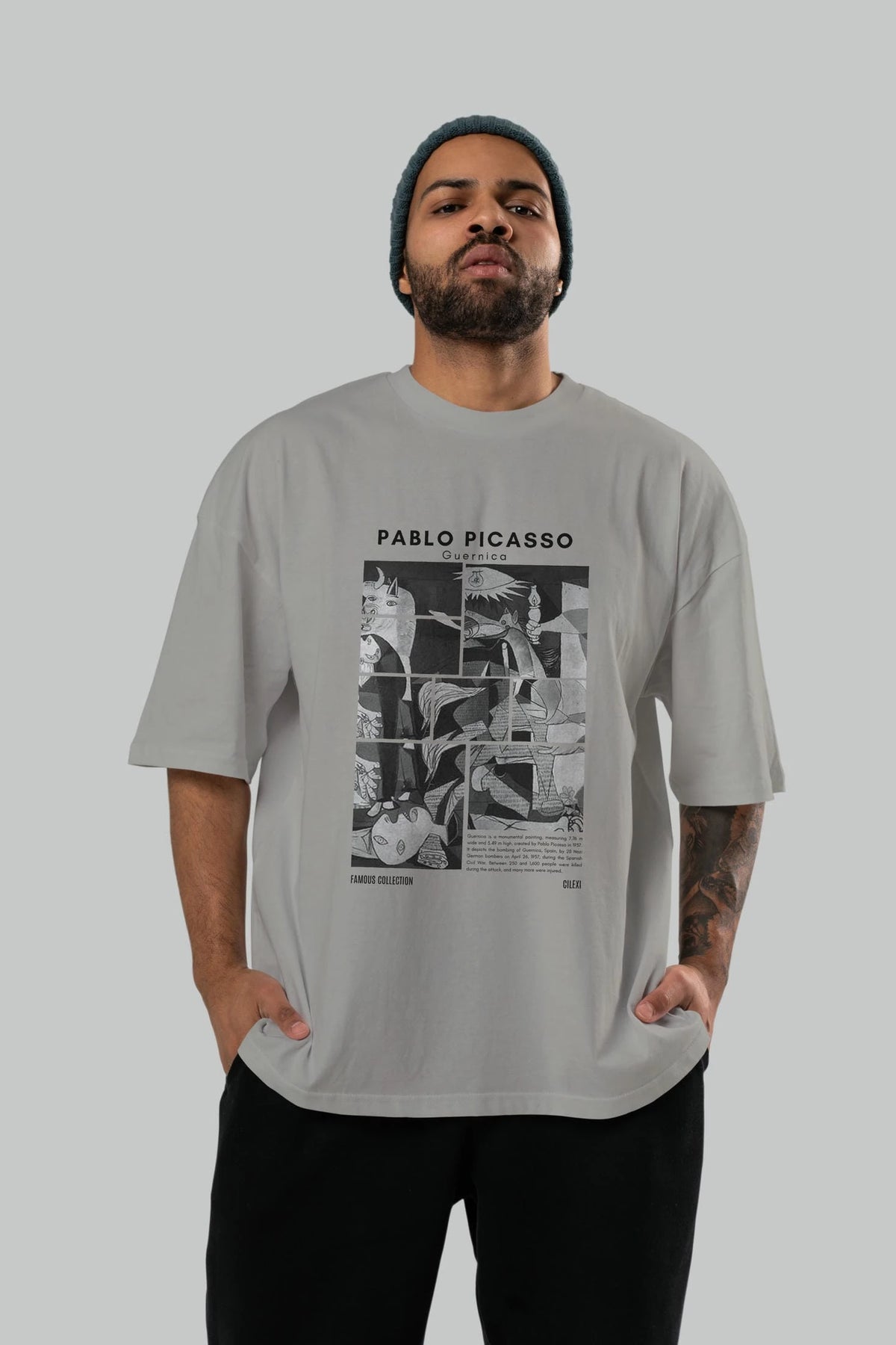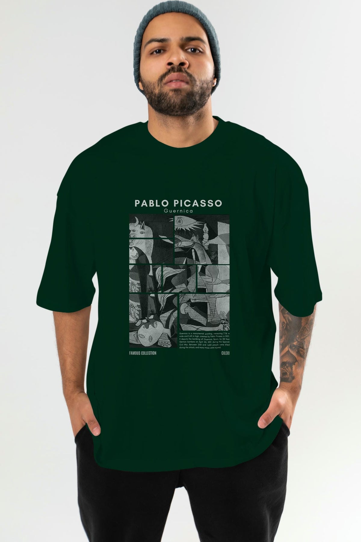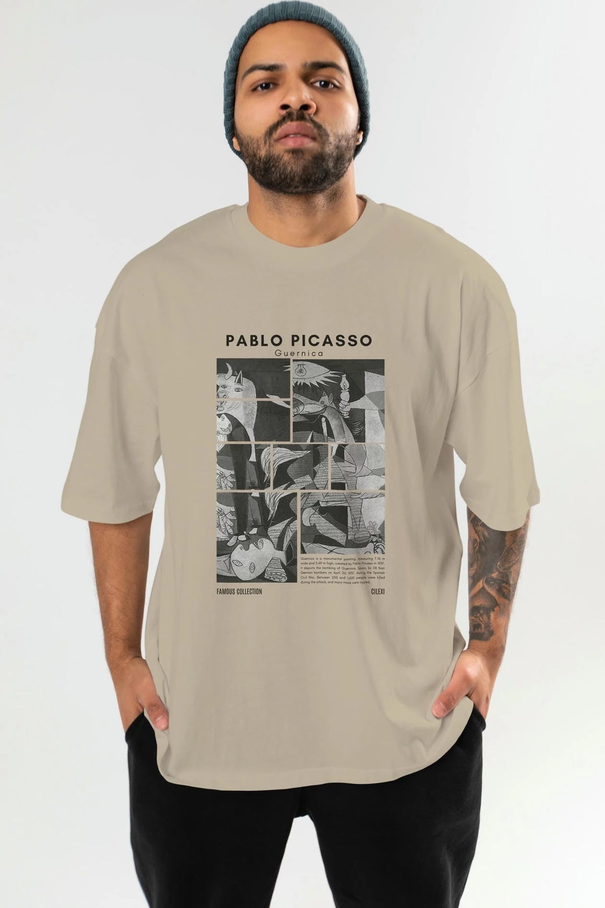 Pablo Picasso Guernica ön Baskılı Oversize t-shirt Erkek Kadın Bisiklet Yaka Pamuk tişort