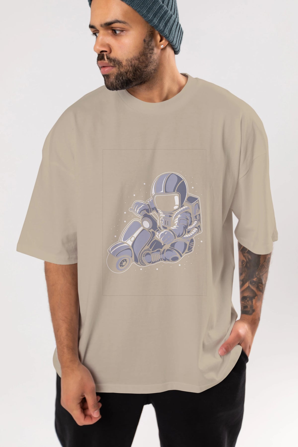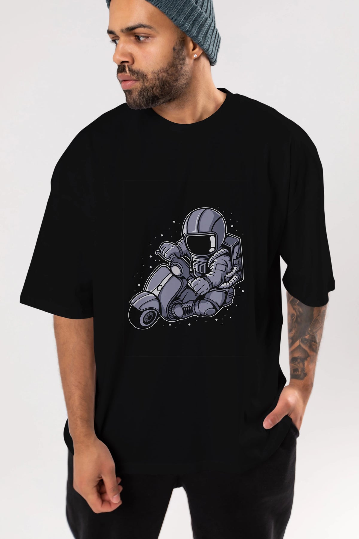 Astronaut Scooter (2) Ön Baskılı Oversize t-shirt Erkek Kadın Unisex