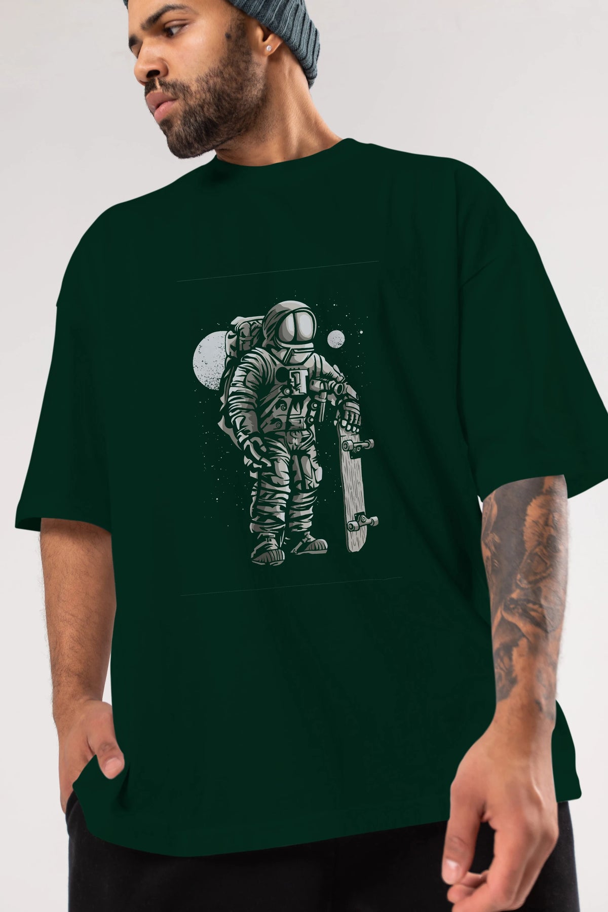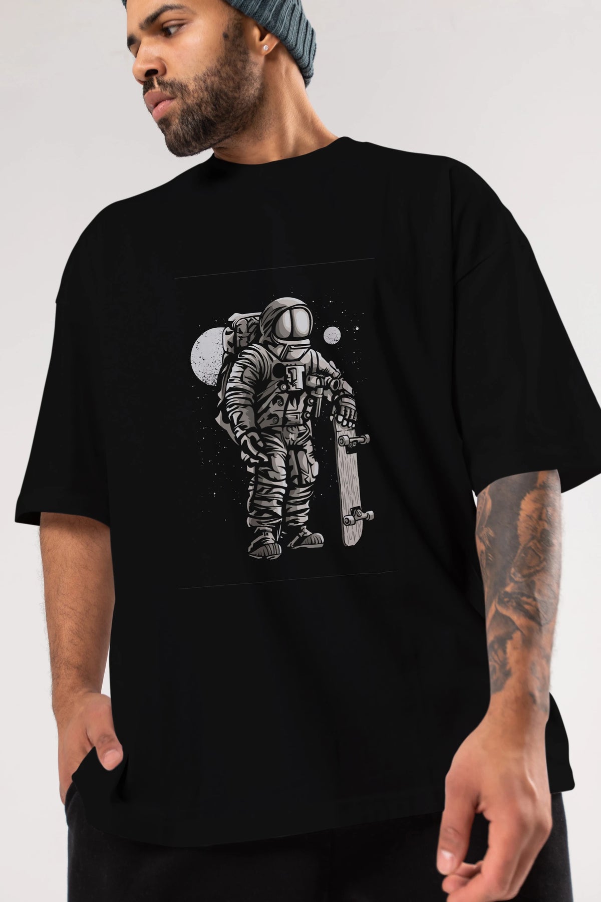 Astronaut Skater Ön Baskılı Oversize t-shirt Erkek Kadın Unisex %100 Pamuk tişort