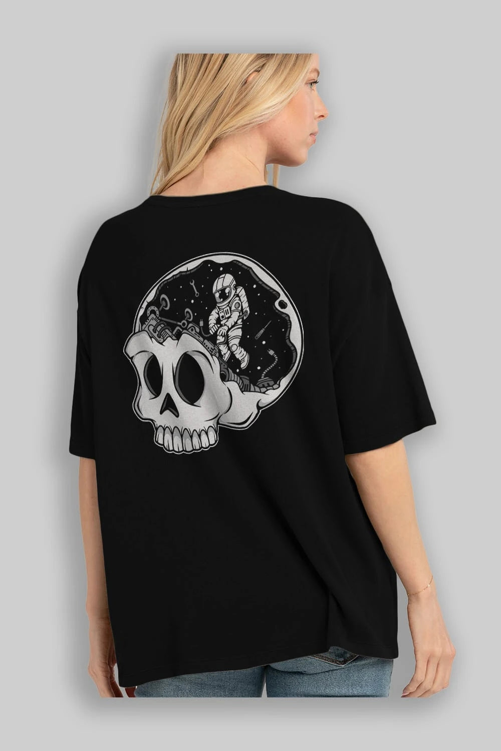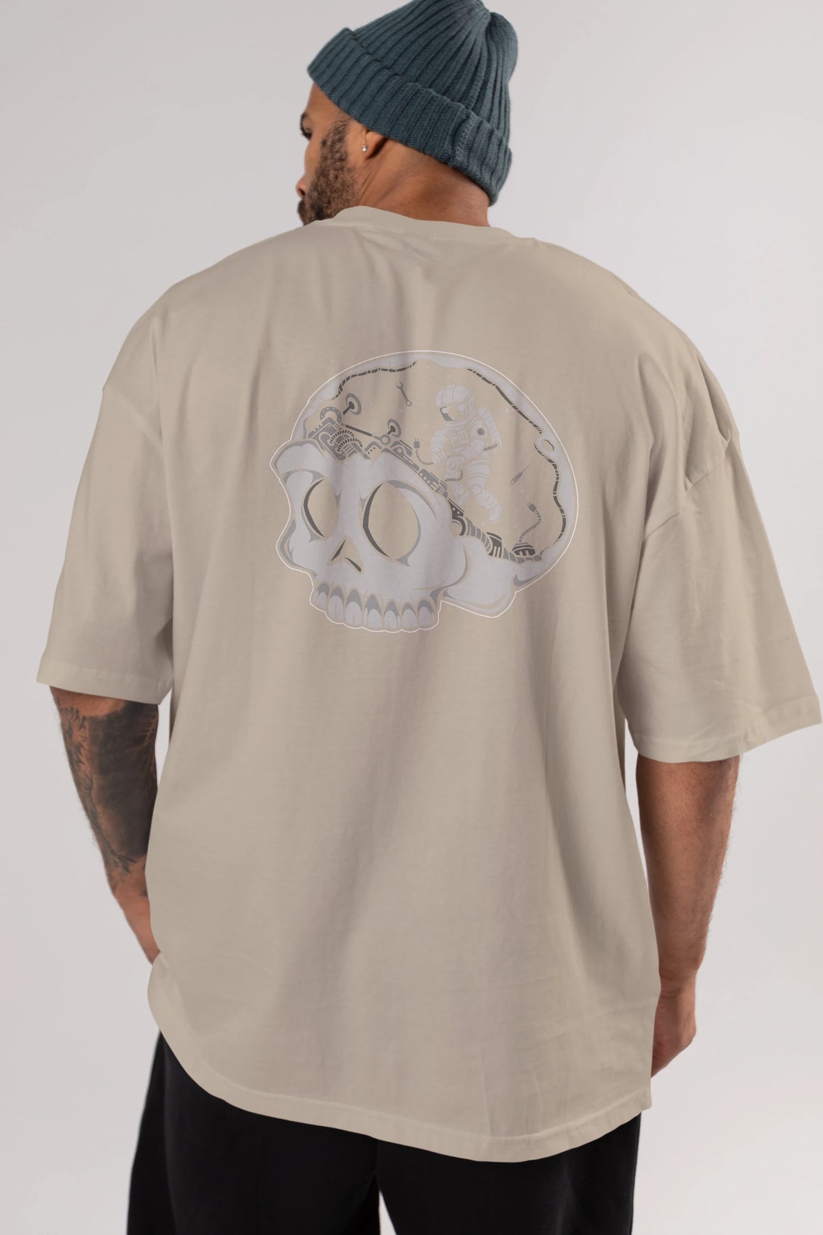 Astronaut Skull Brain Arka Baskılı Oversize t-shirt Erkek Kadın Unisex