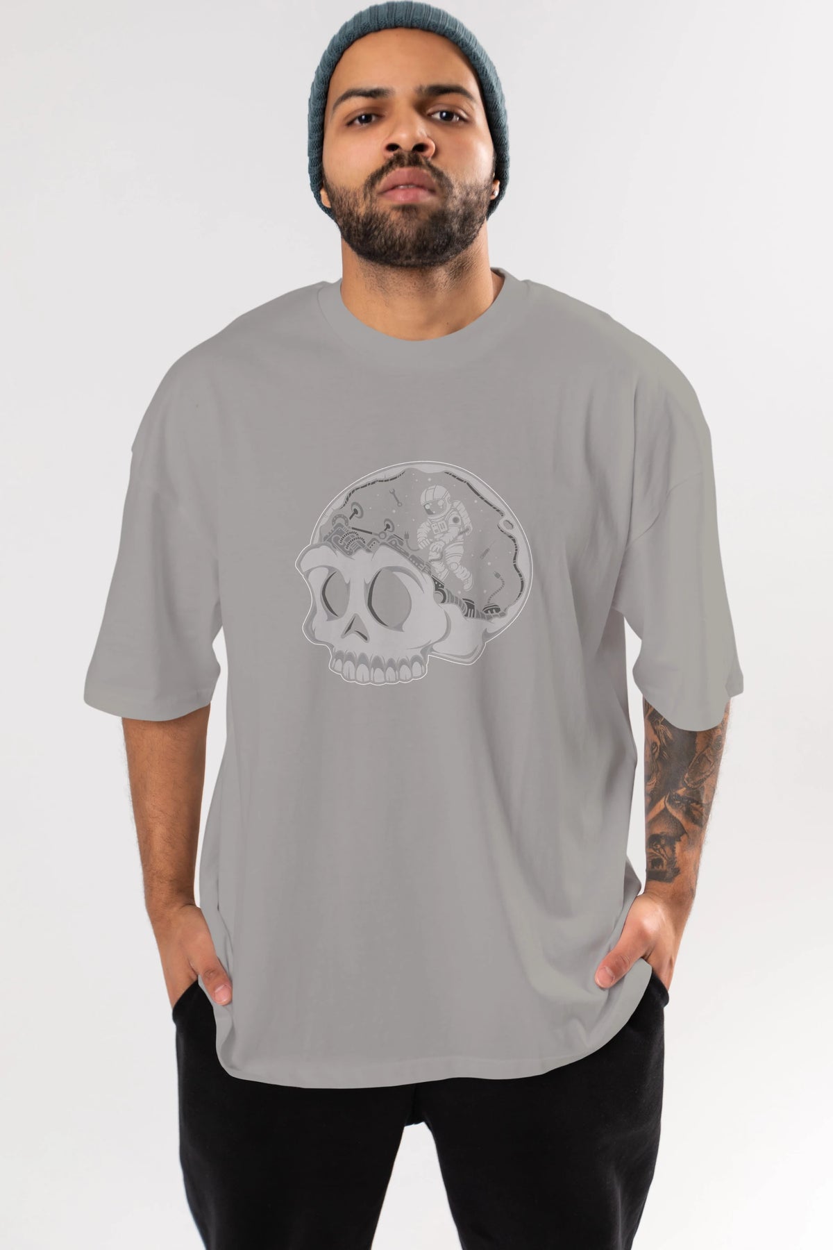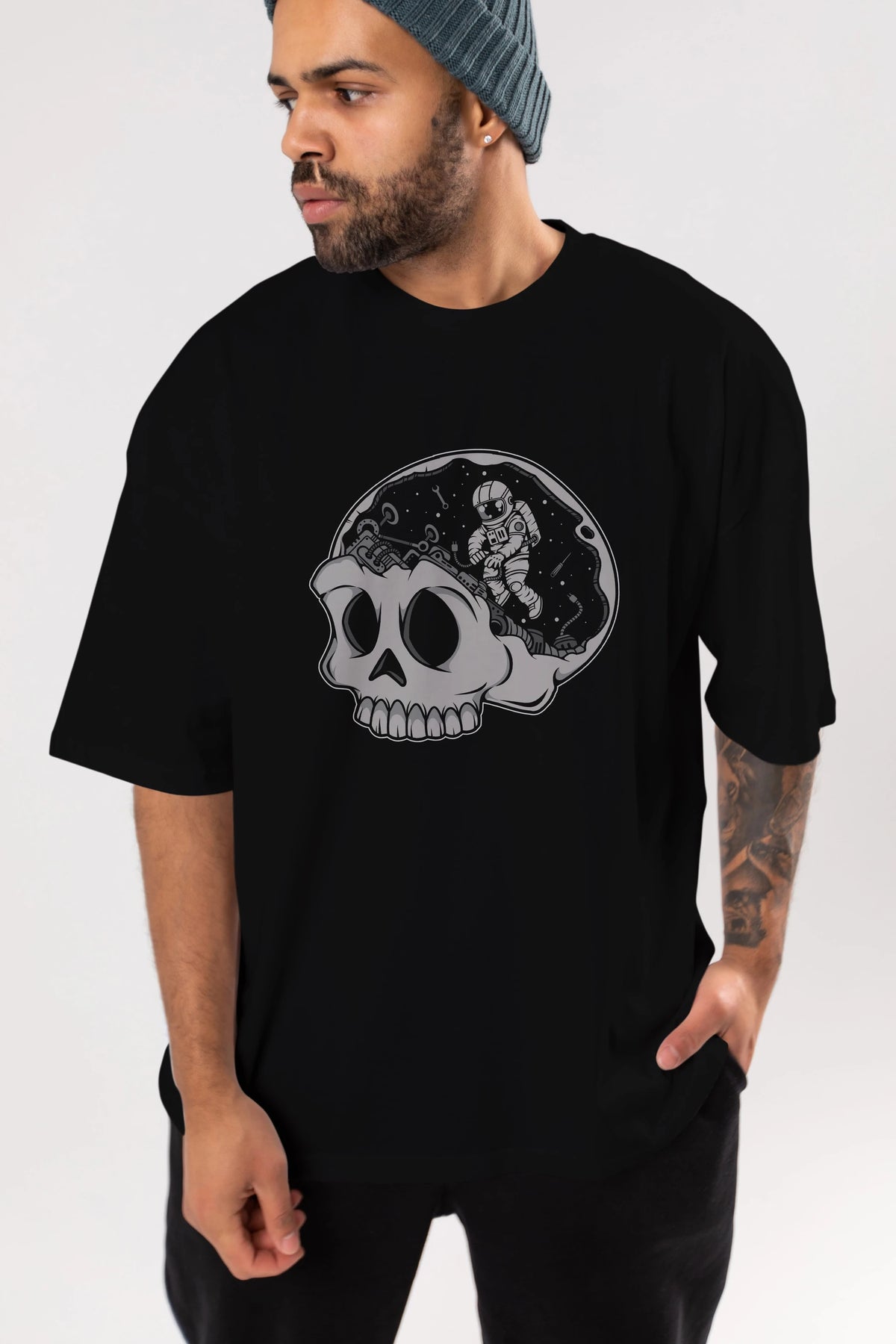 Astronaut Skull Brain Ön Baskılı Oversize t-shirt Erkek Kadın Unisex