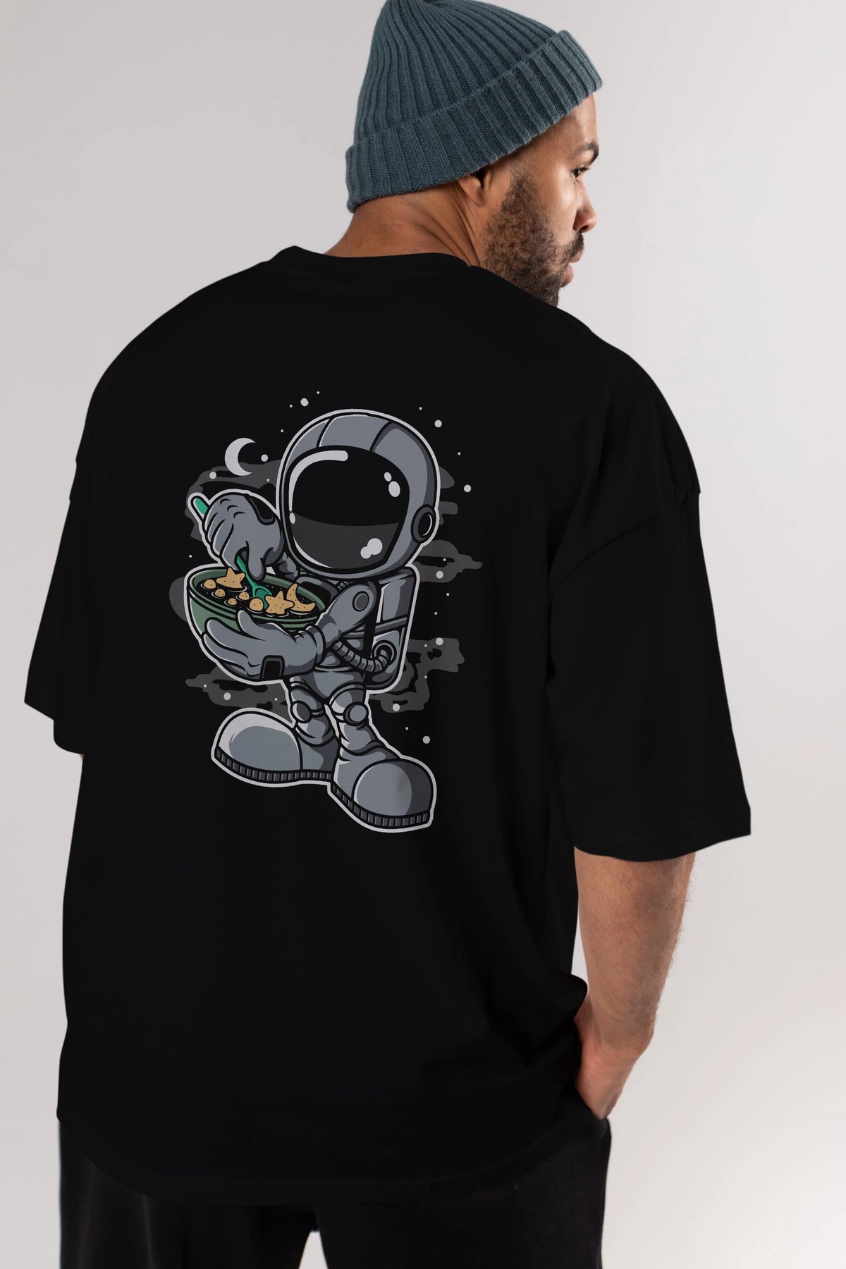 Astronaut Star Flakes Arka Baskılı Oversize t-shirt Erkek Kadın Unisex