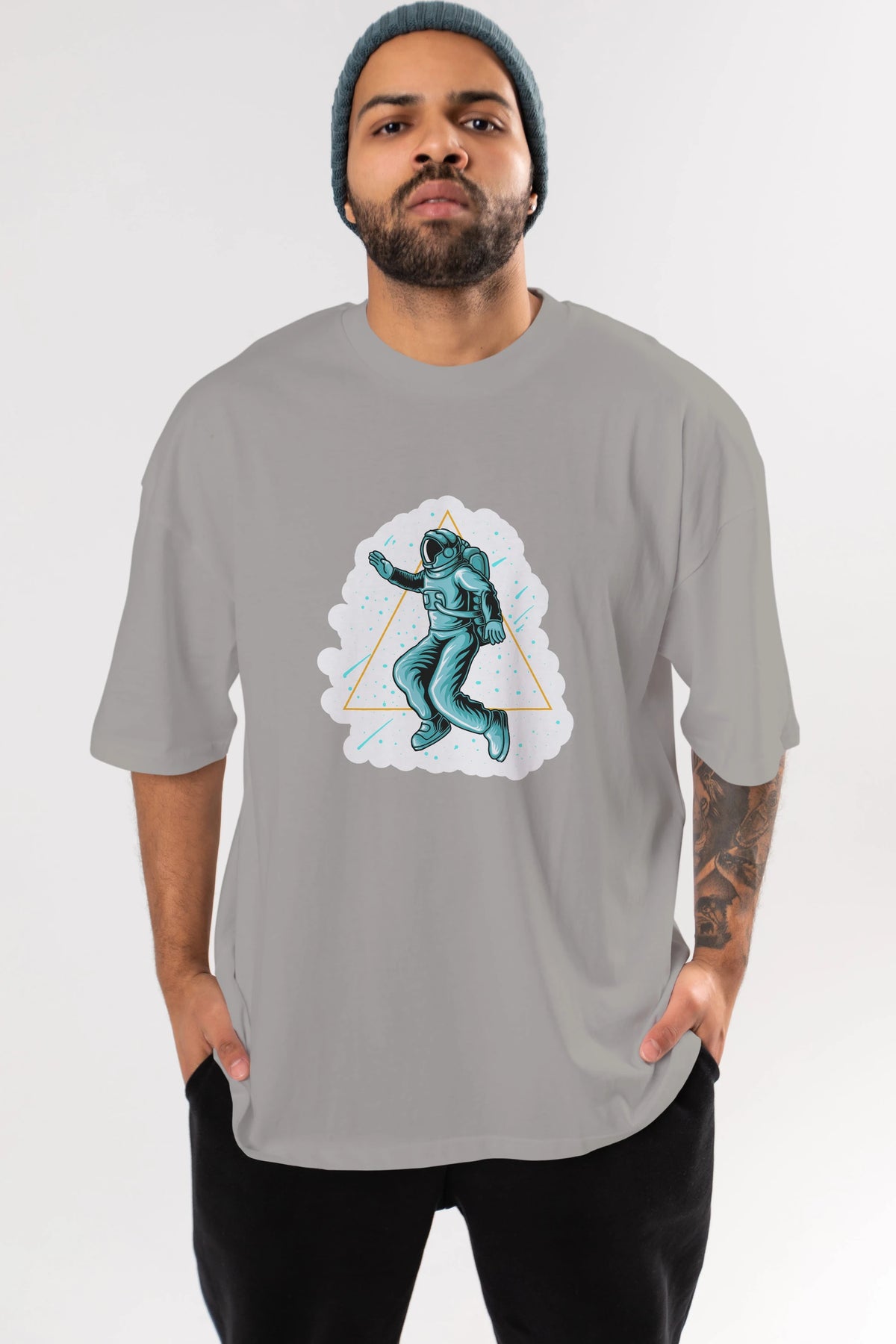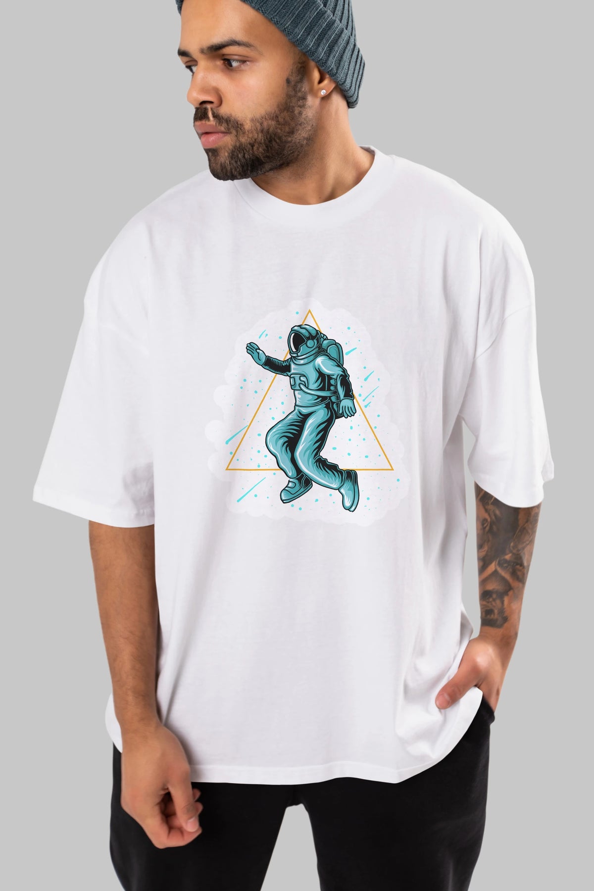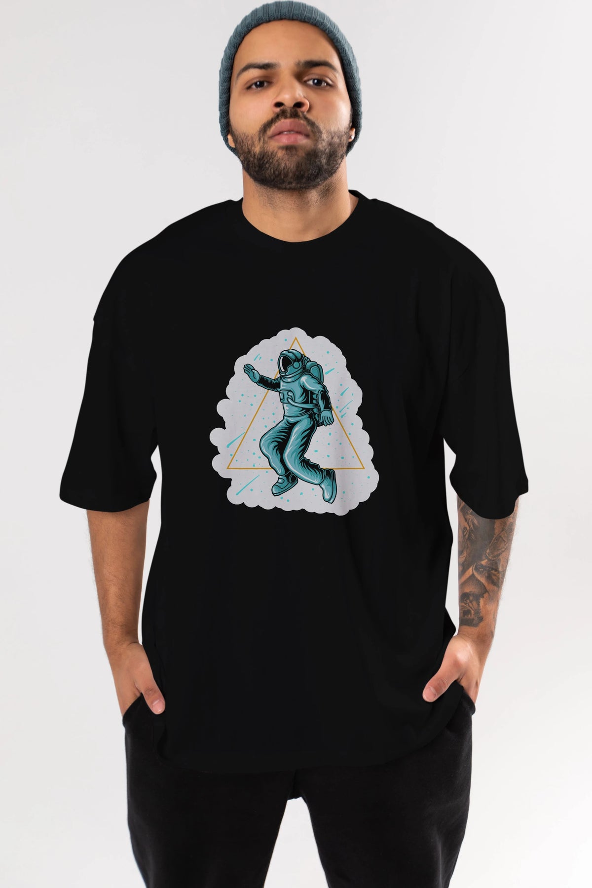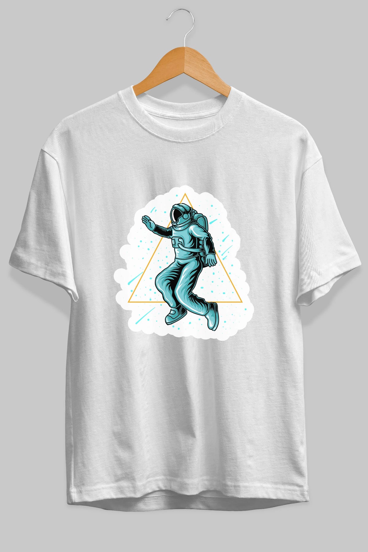 Astronaut Starry Triangle Sticker Ön Baskılı Oversize t-shirt Erkek Kadın Unisex