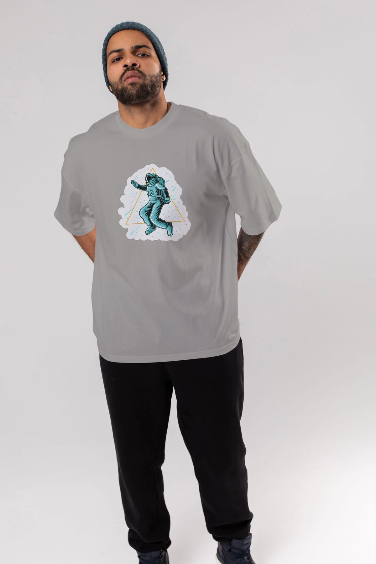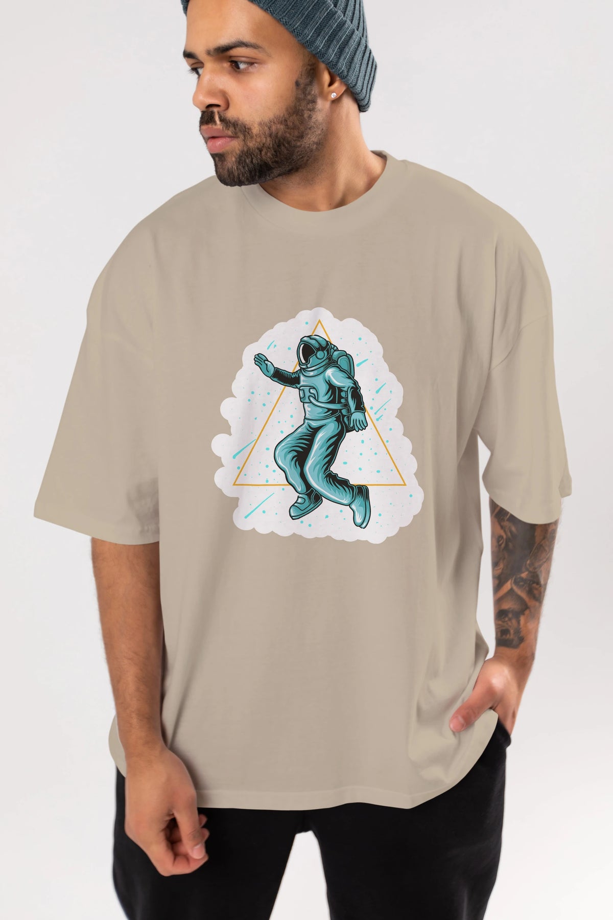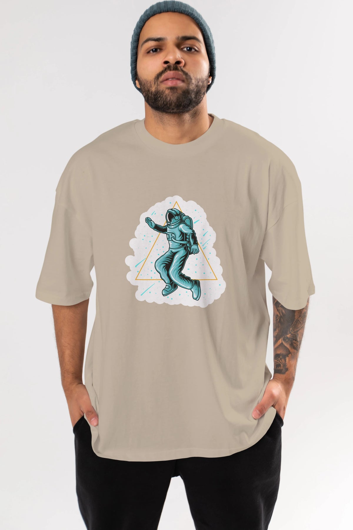 Astronaut Starry Triangle Sticker Ön Baskılı Oversize t-shirt Erkek Kadın Unisex