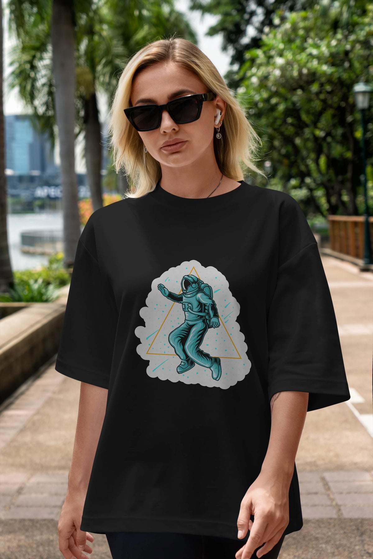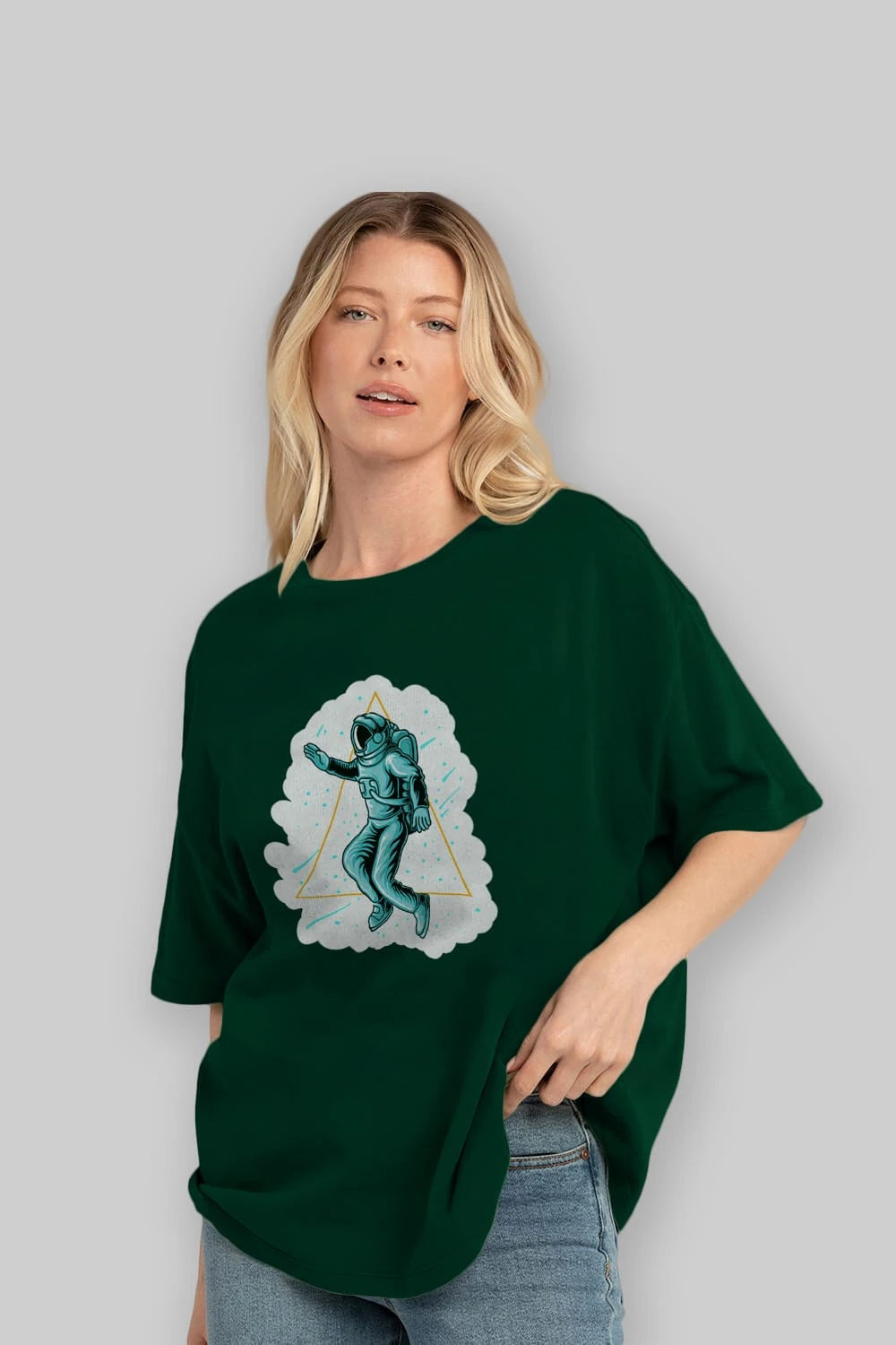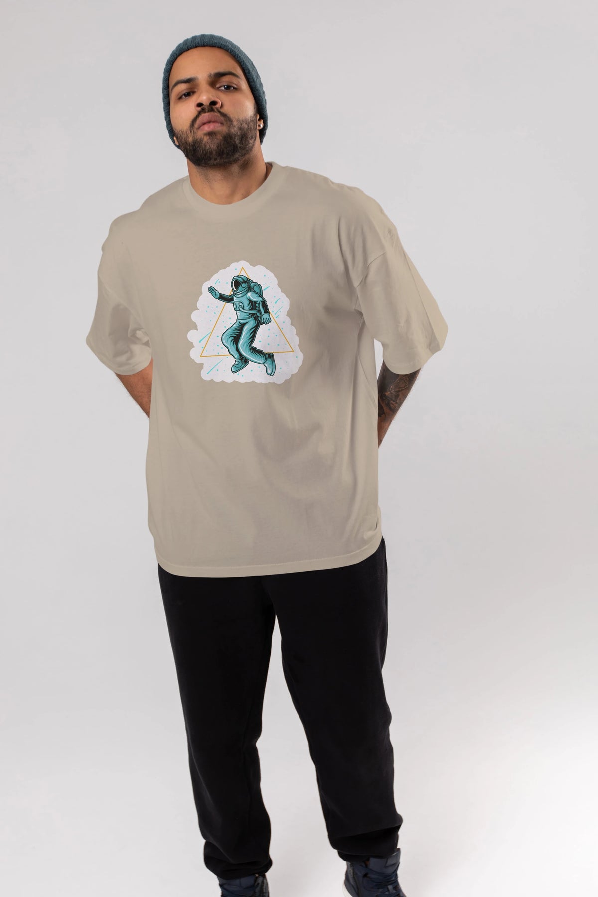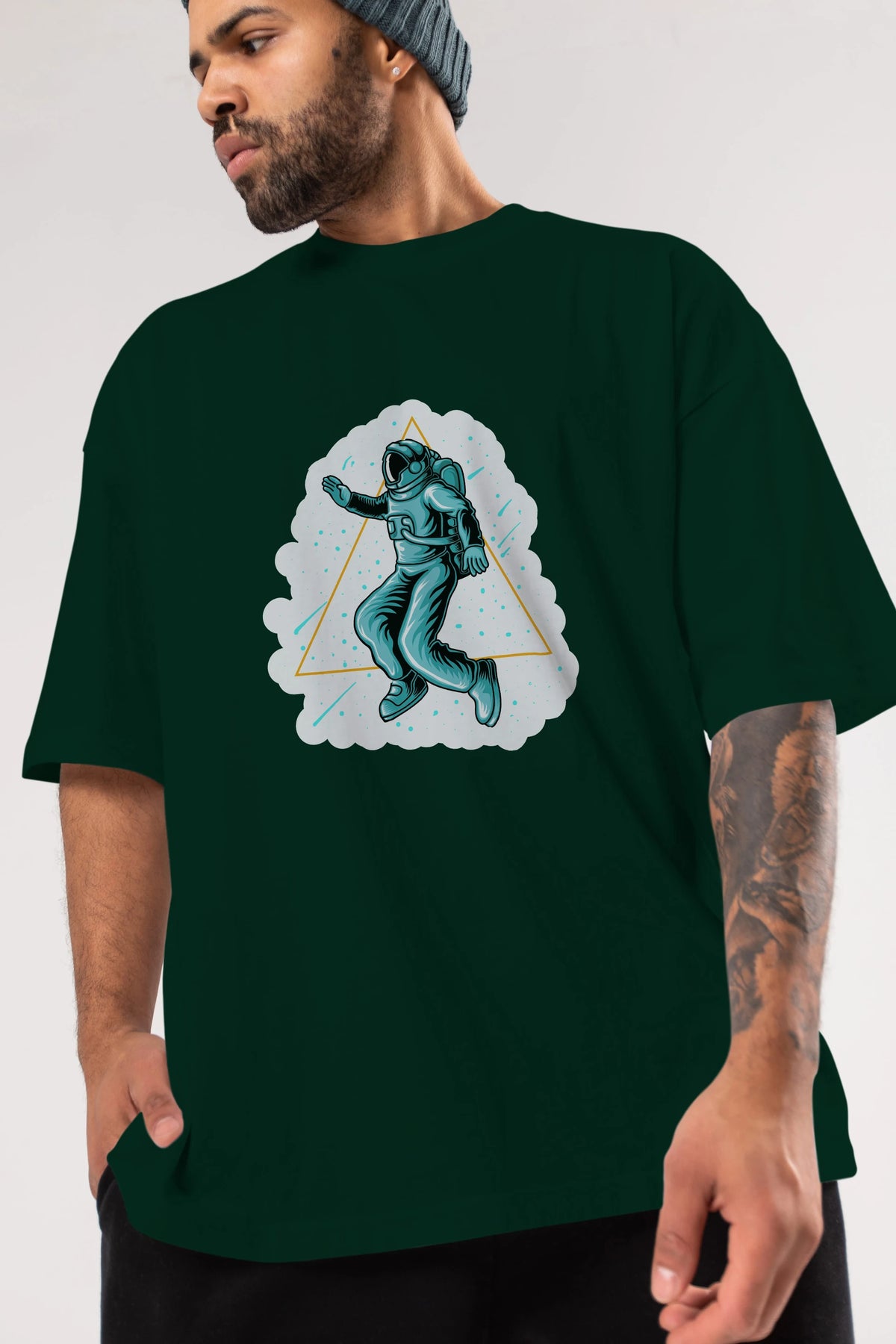 Astronaut Starry Triangle Sticker Ön Baskılı Oversize t-shirt Erkek Kadın Unisex