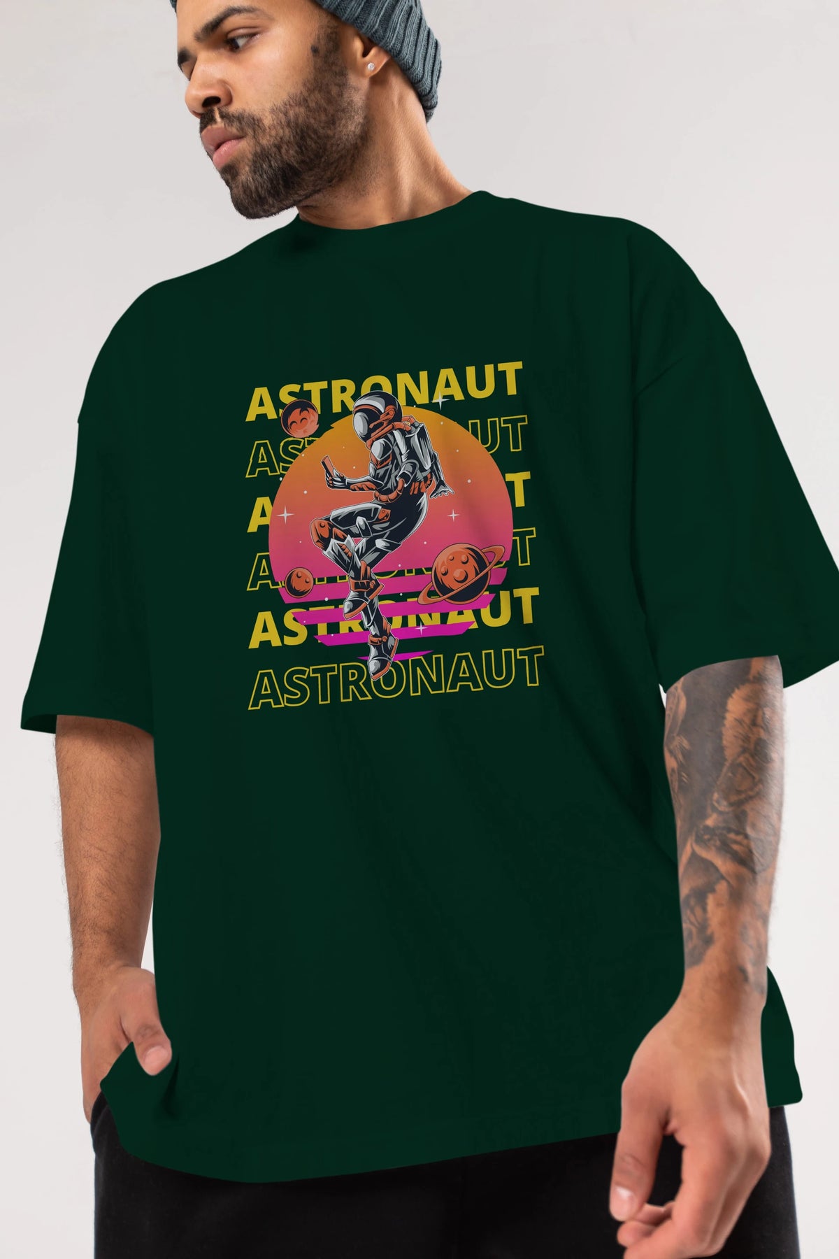 Astronaut Streetwear 2 Ön Baskılı Oversize t-shirt Erkek Kadın Unisex