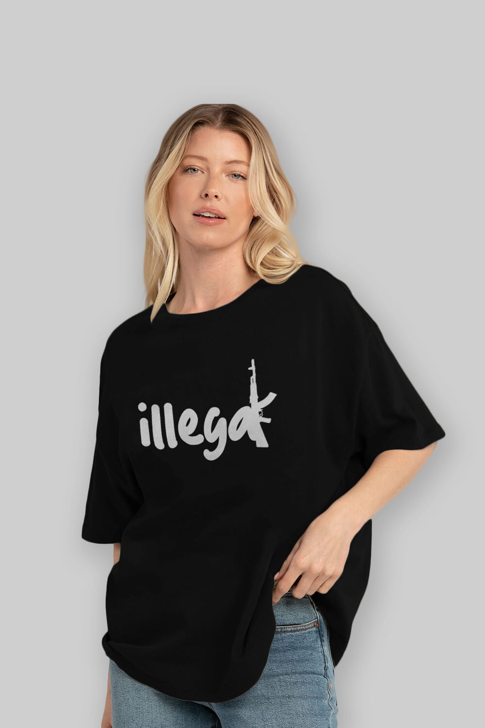 illegal Ön Baskılı Oversize t-shirt %100 pamuk Erkek Kadın Unisex