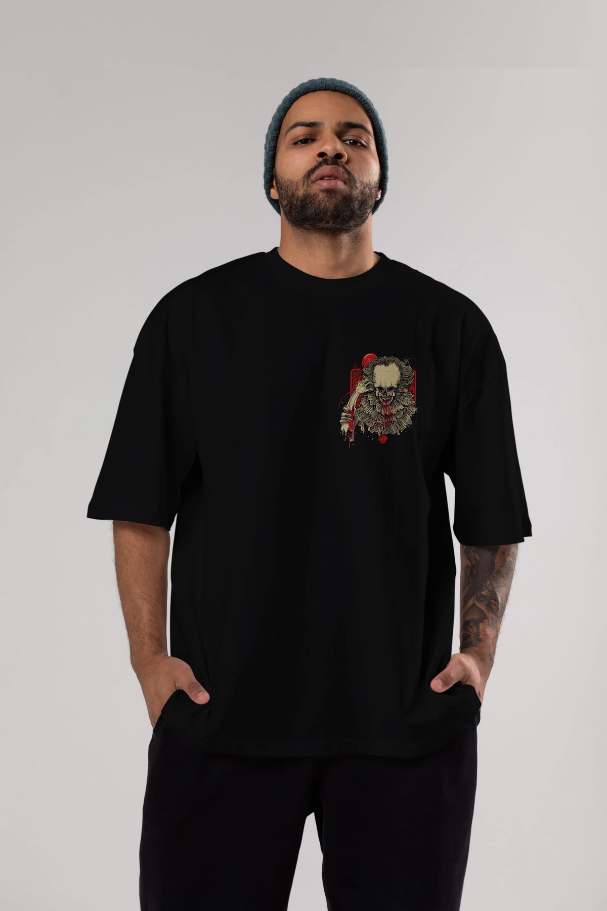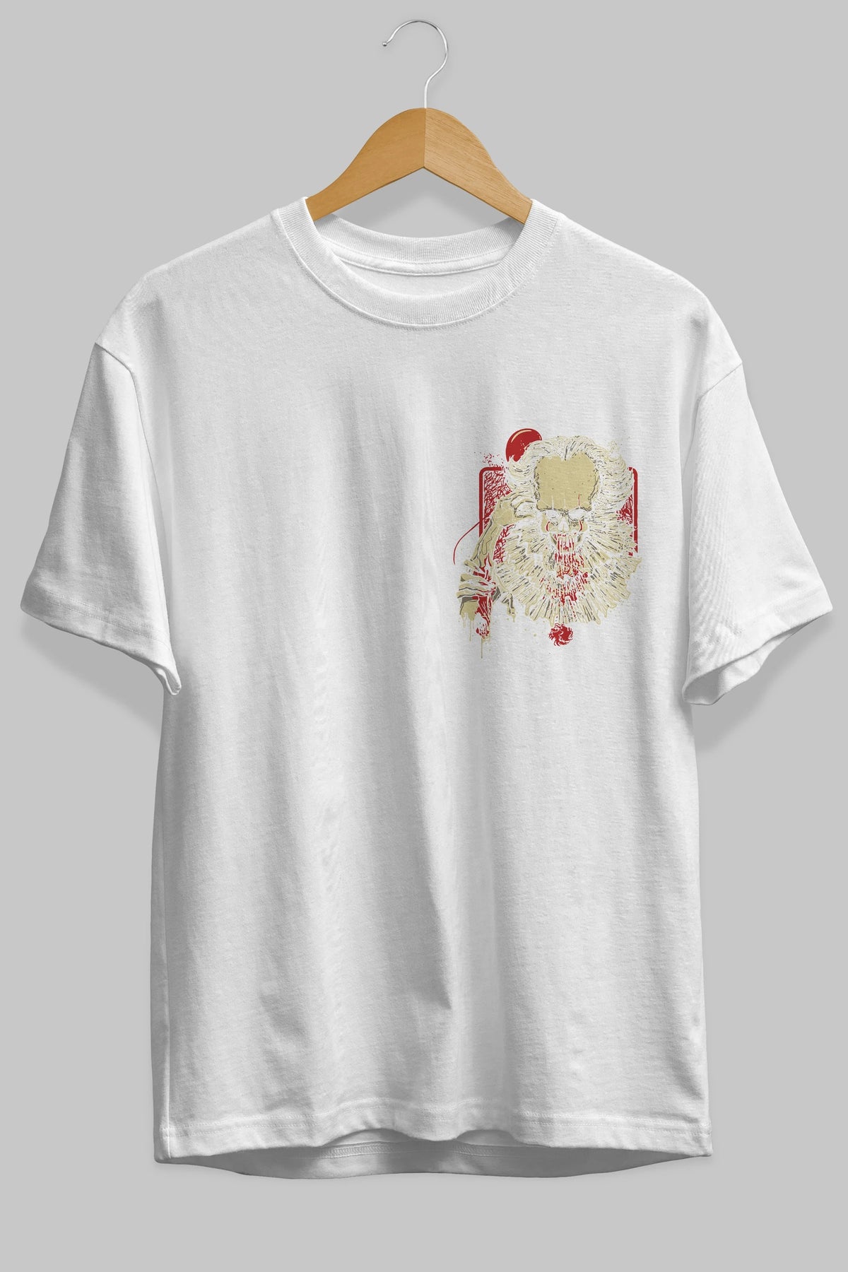 it (2) Ön Sol Baskılı Oversize t-shirt Erkek Kadın Unisex %100 Pamuk Bisiklet Yaka tişort