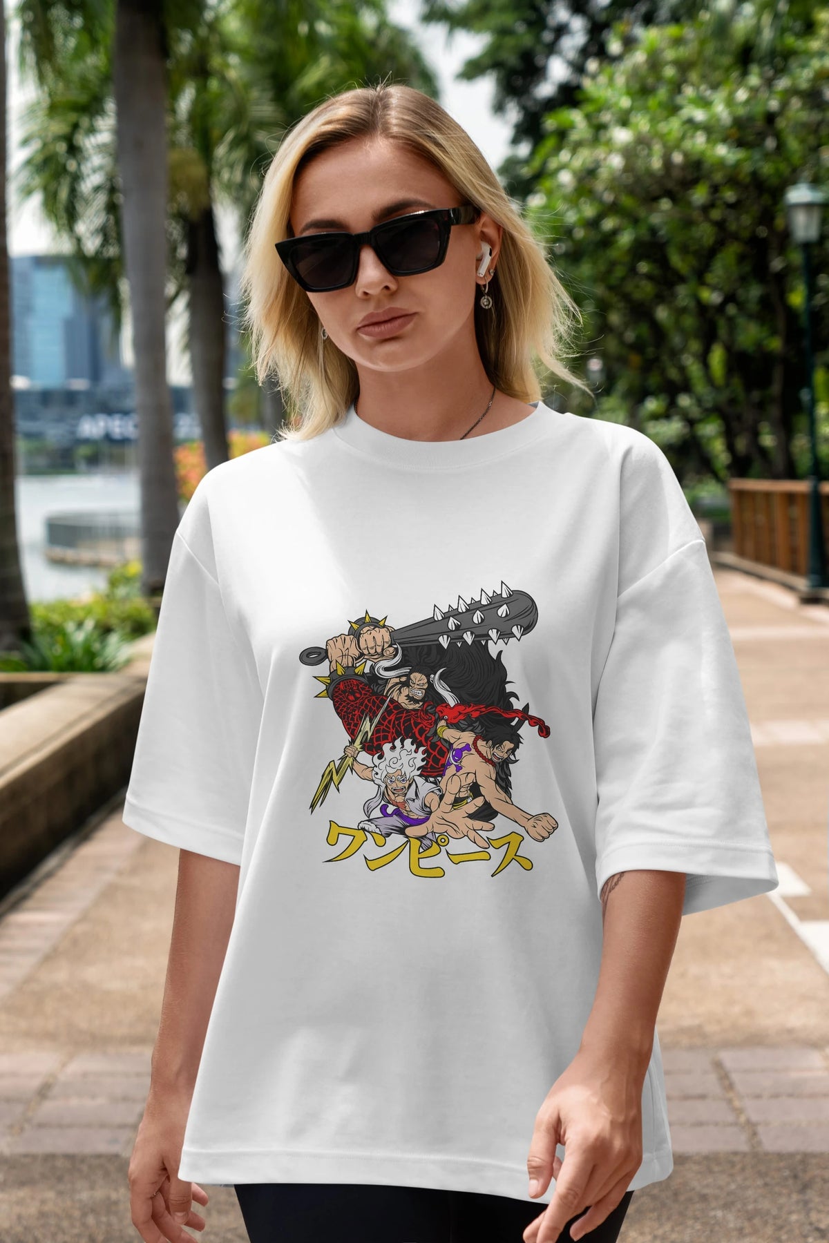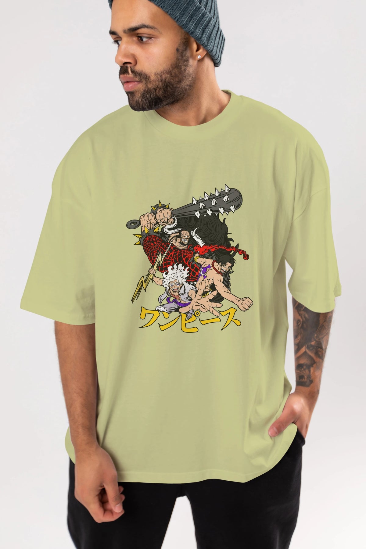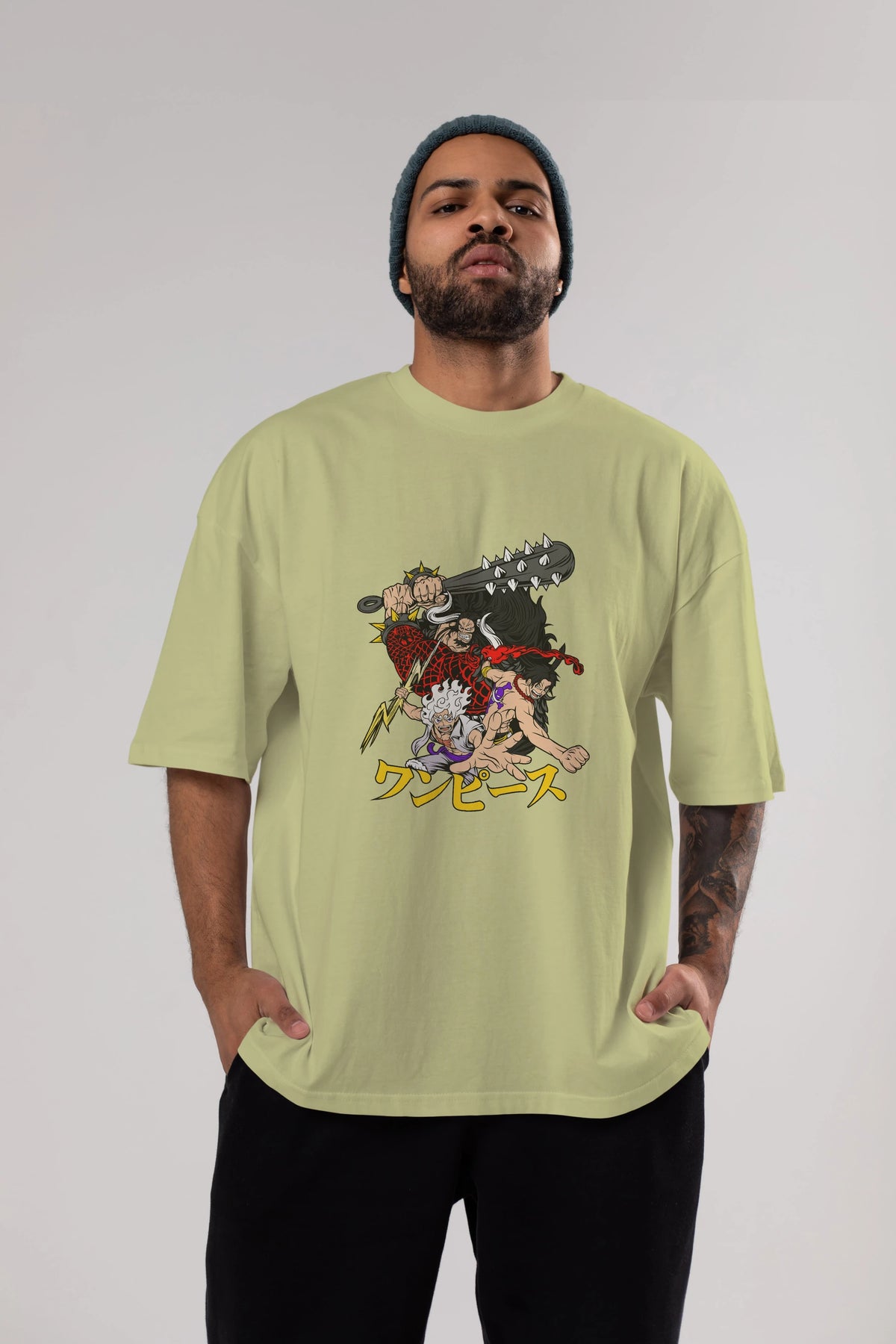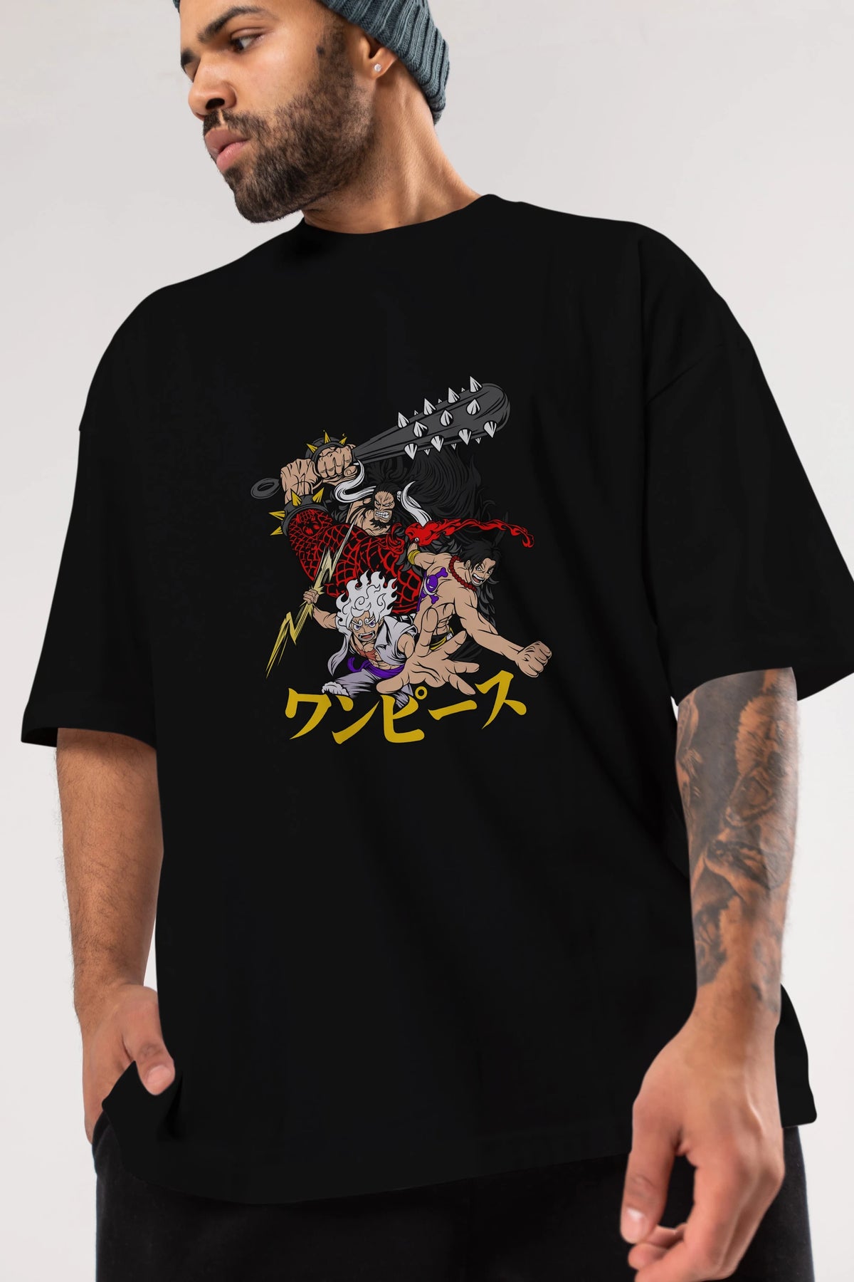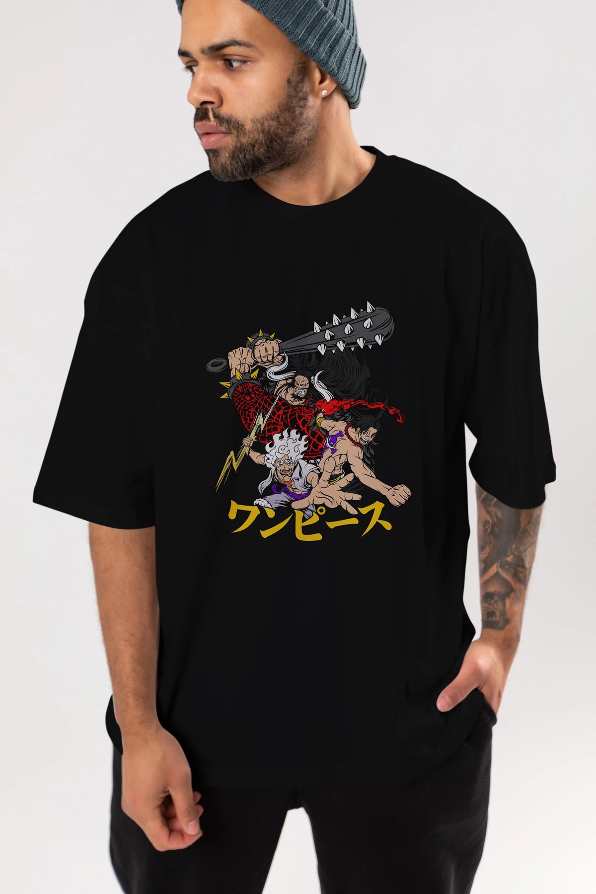luffyacekaido Anime Ön Baskılı Oversize t-shirt %100 pamuk Erkek Kadın Unisex