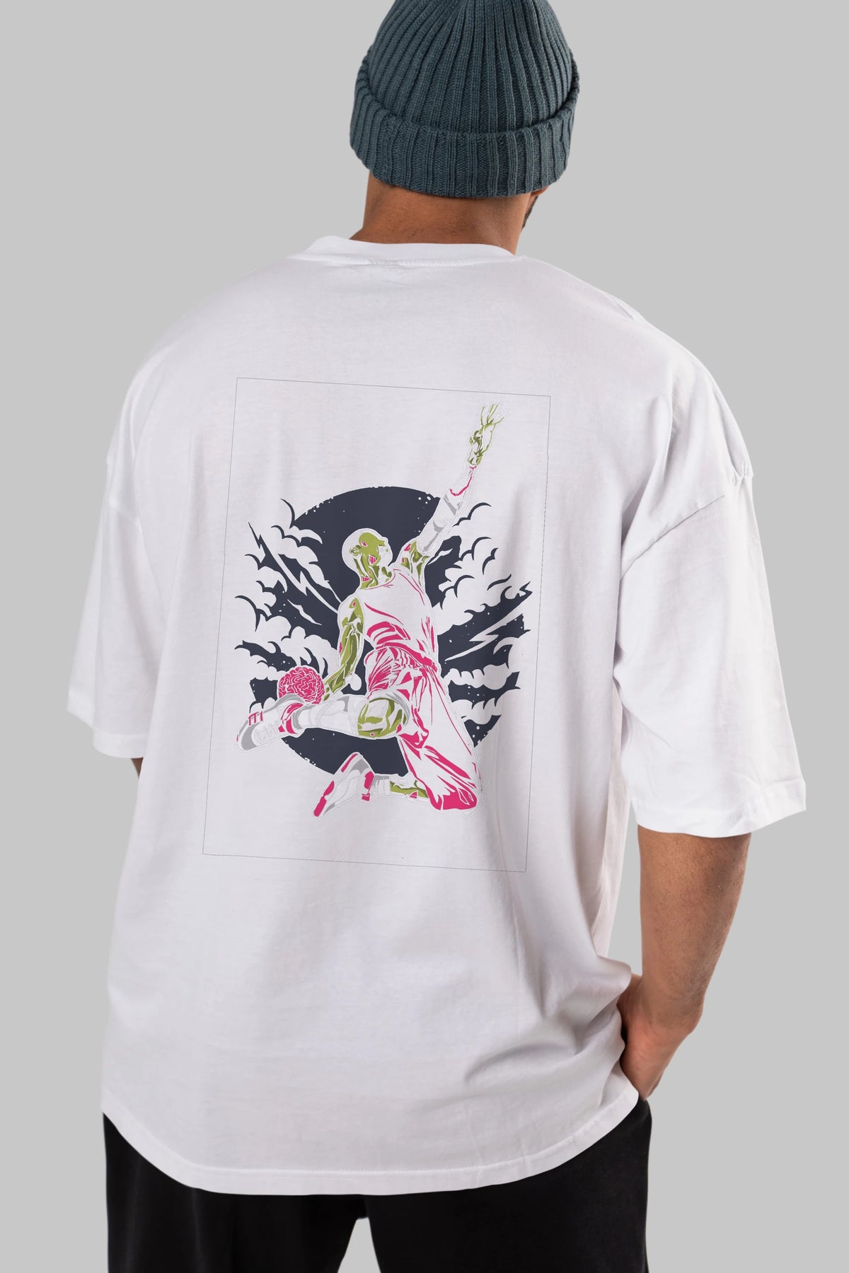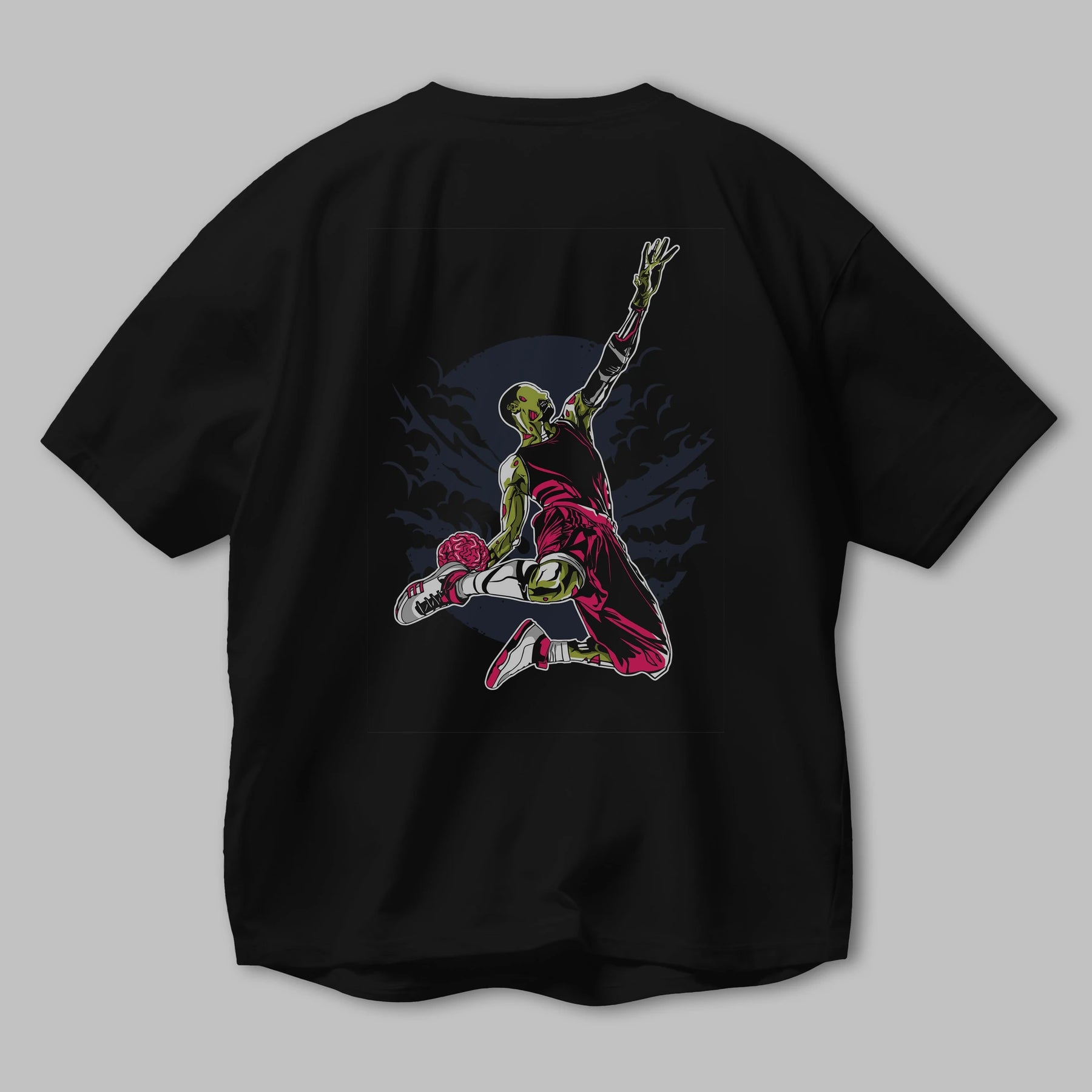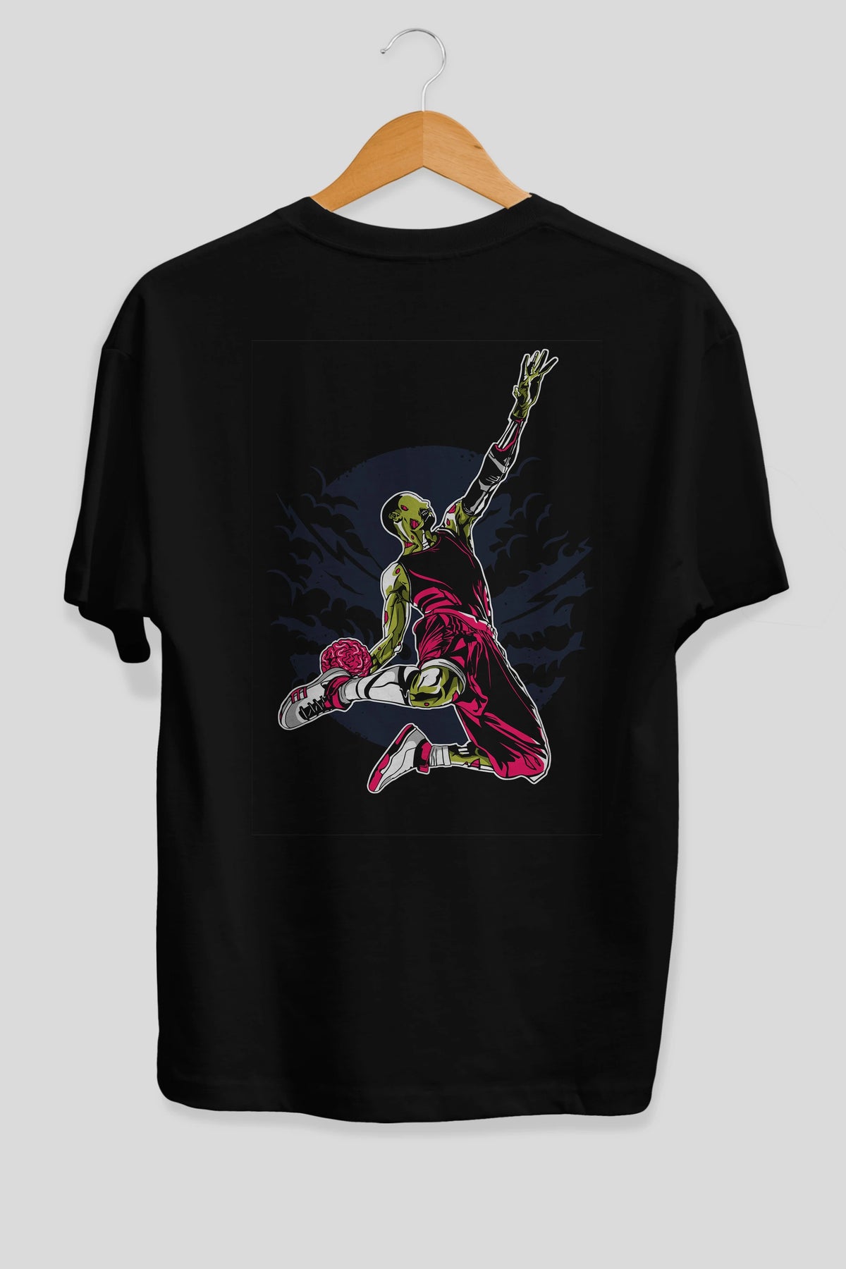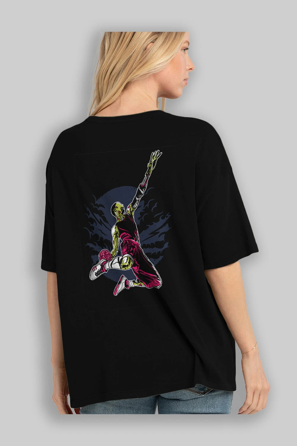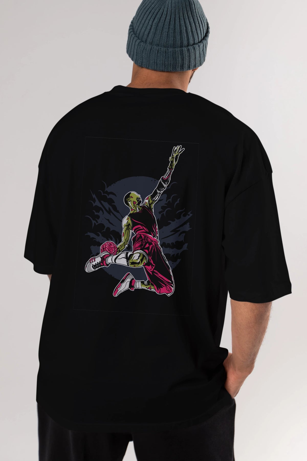 Zombie Slam Dunk Arka Baskılı Oversize t-shirt Erkek Kadın Unisex %100 Pamuk