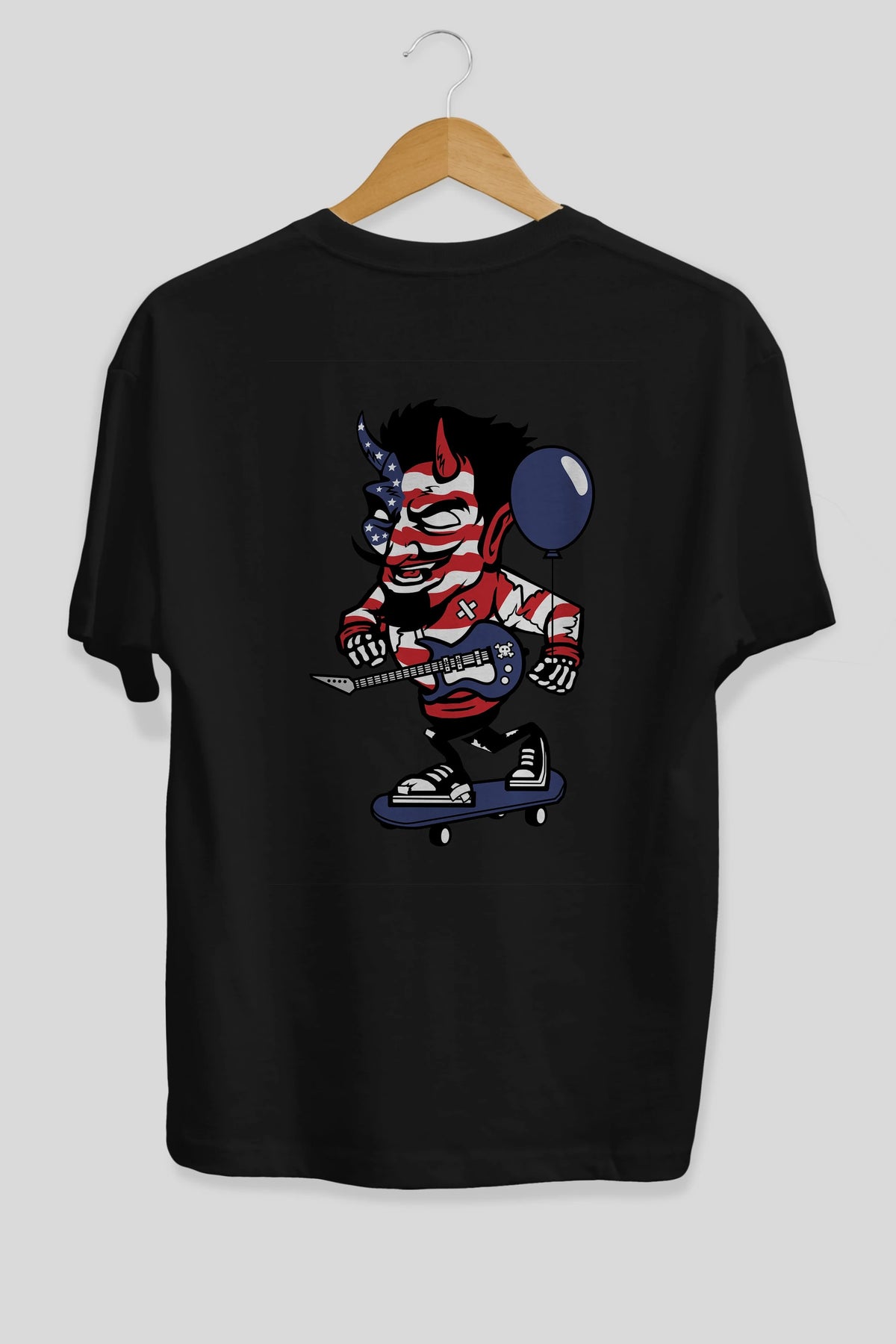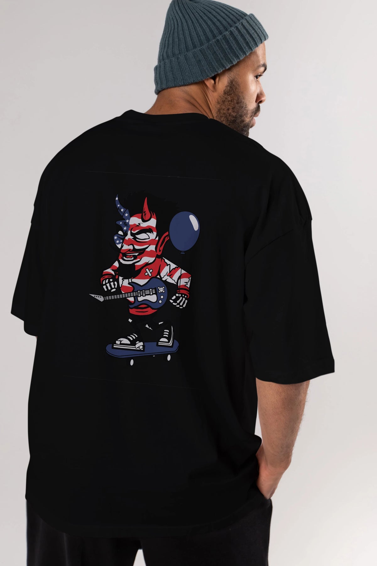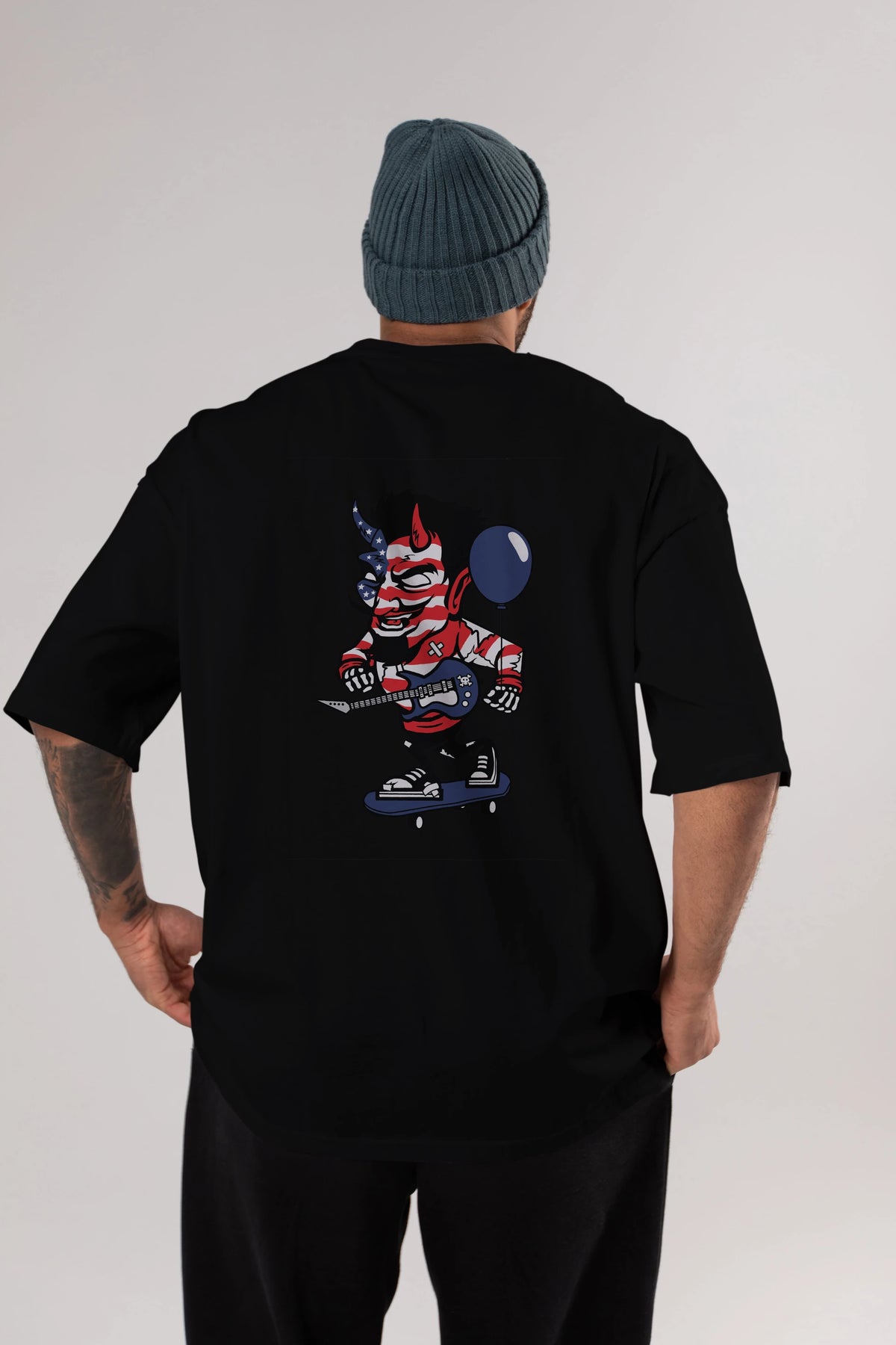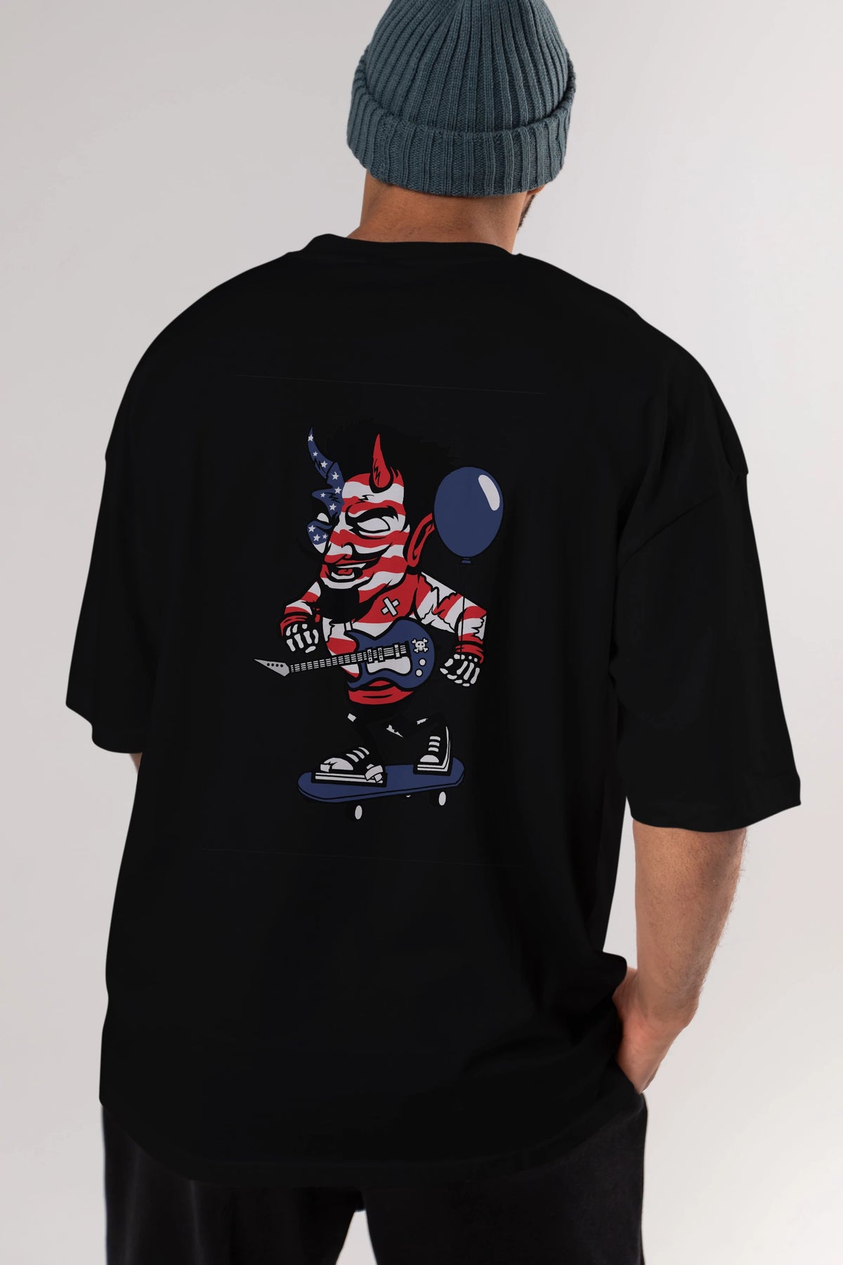 American Devil Skater Arka Baskılı Oversize t-shirt Erkek Kadın Unisex %100 Pamuk tişort