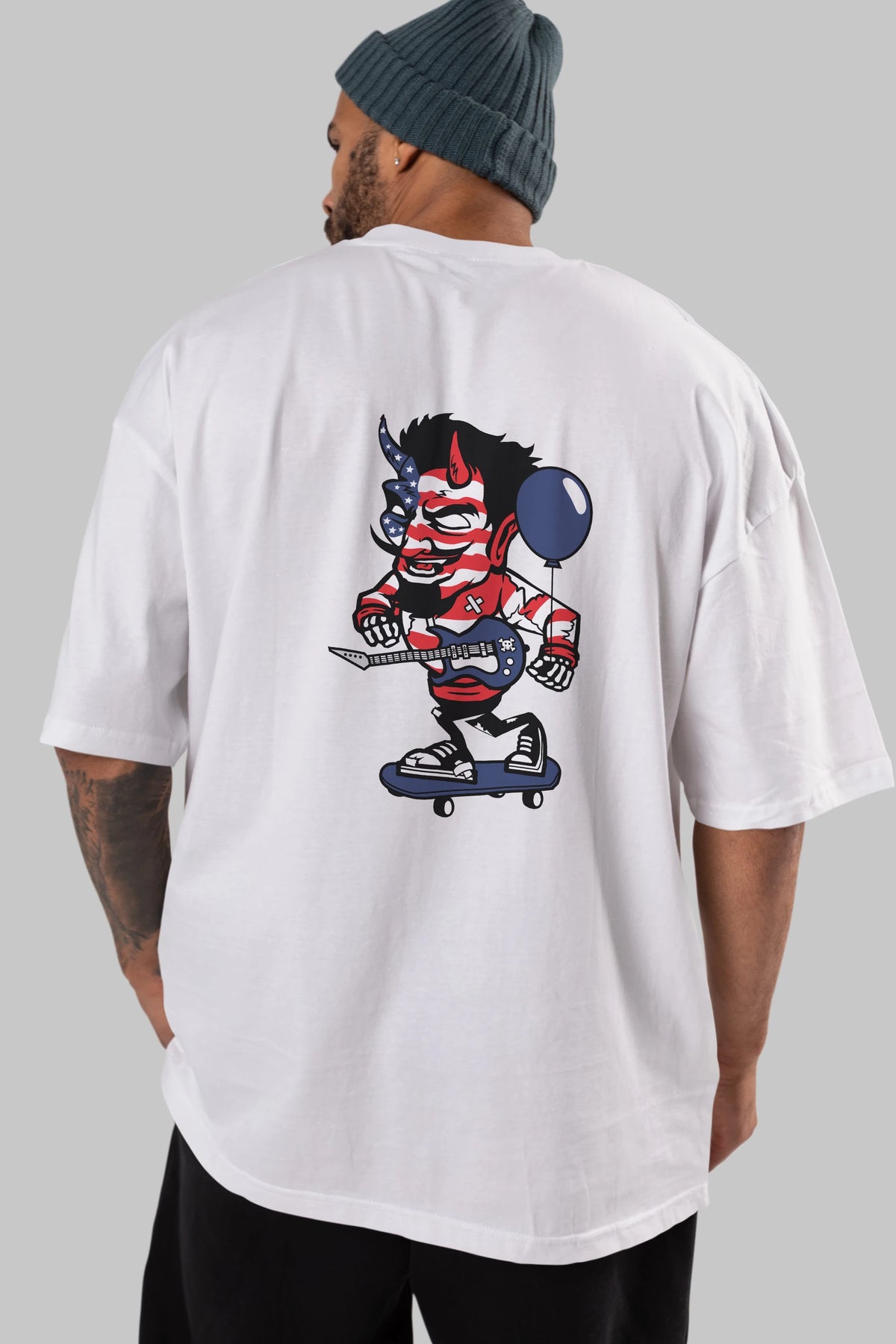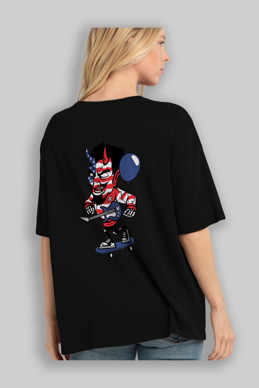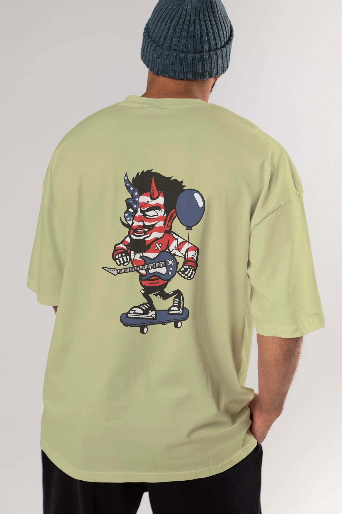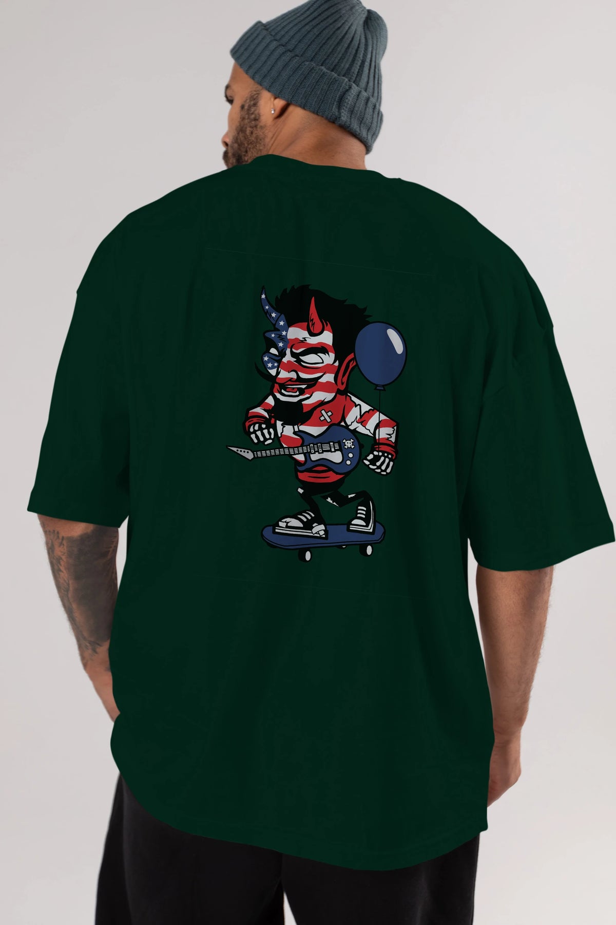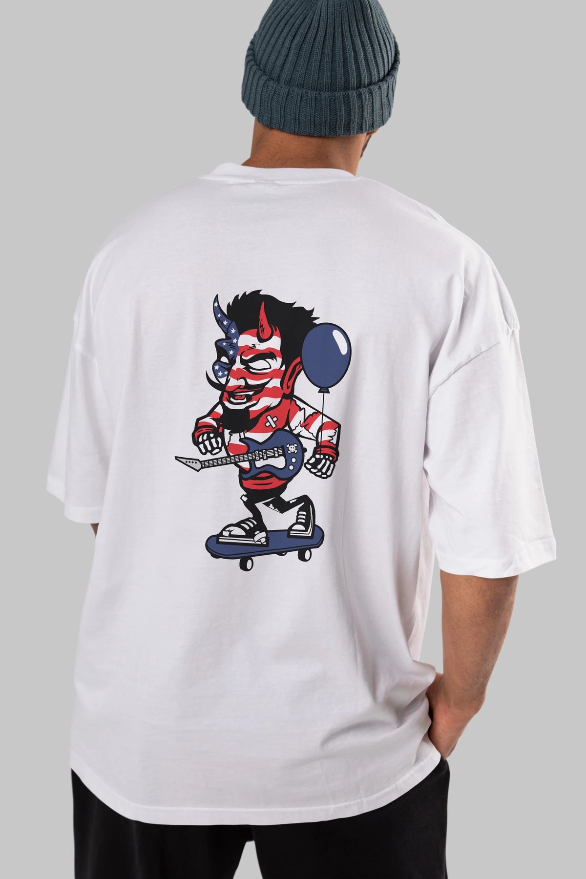 American Devil Skater Arka Baskılı Oversize t-shirt Erkek Kadın Unisex %100 Pamuk tişort
