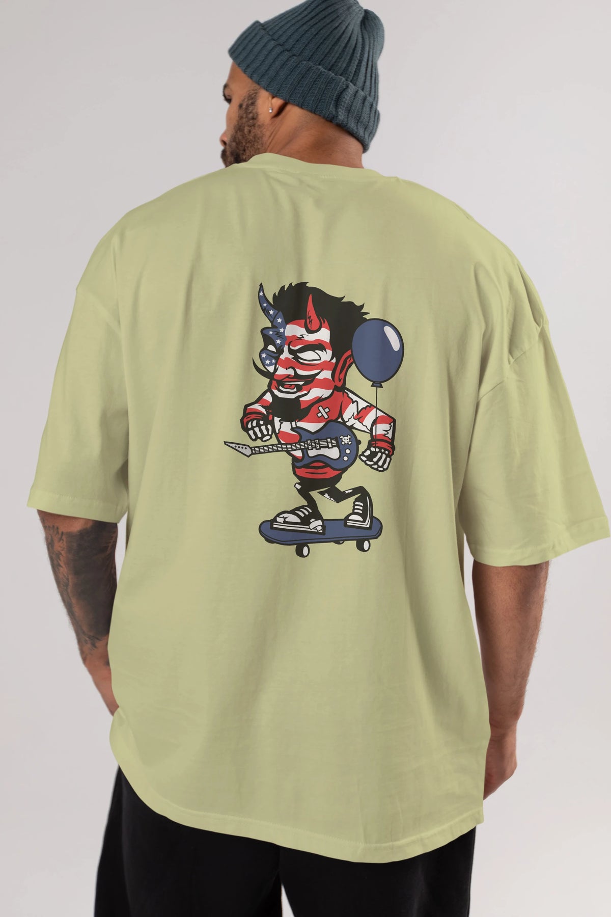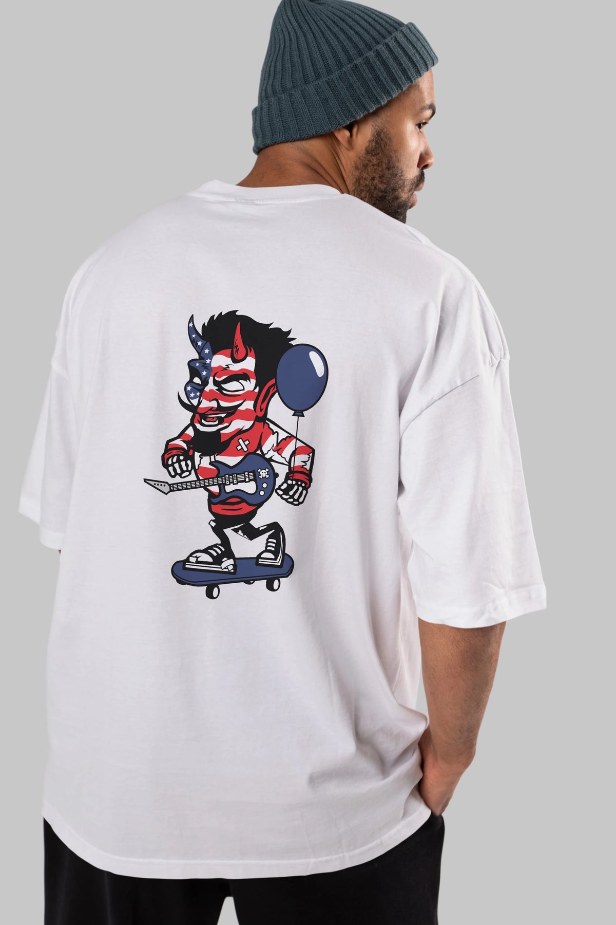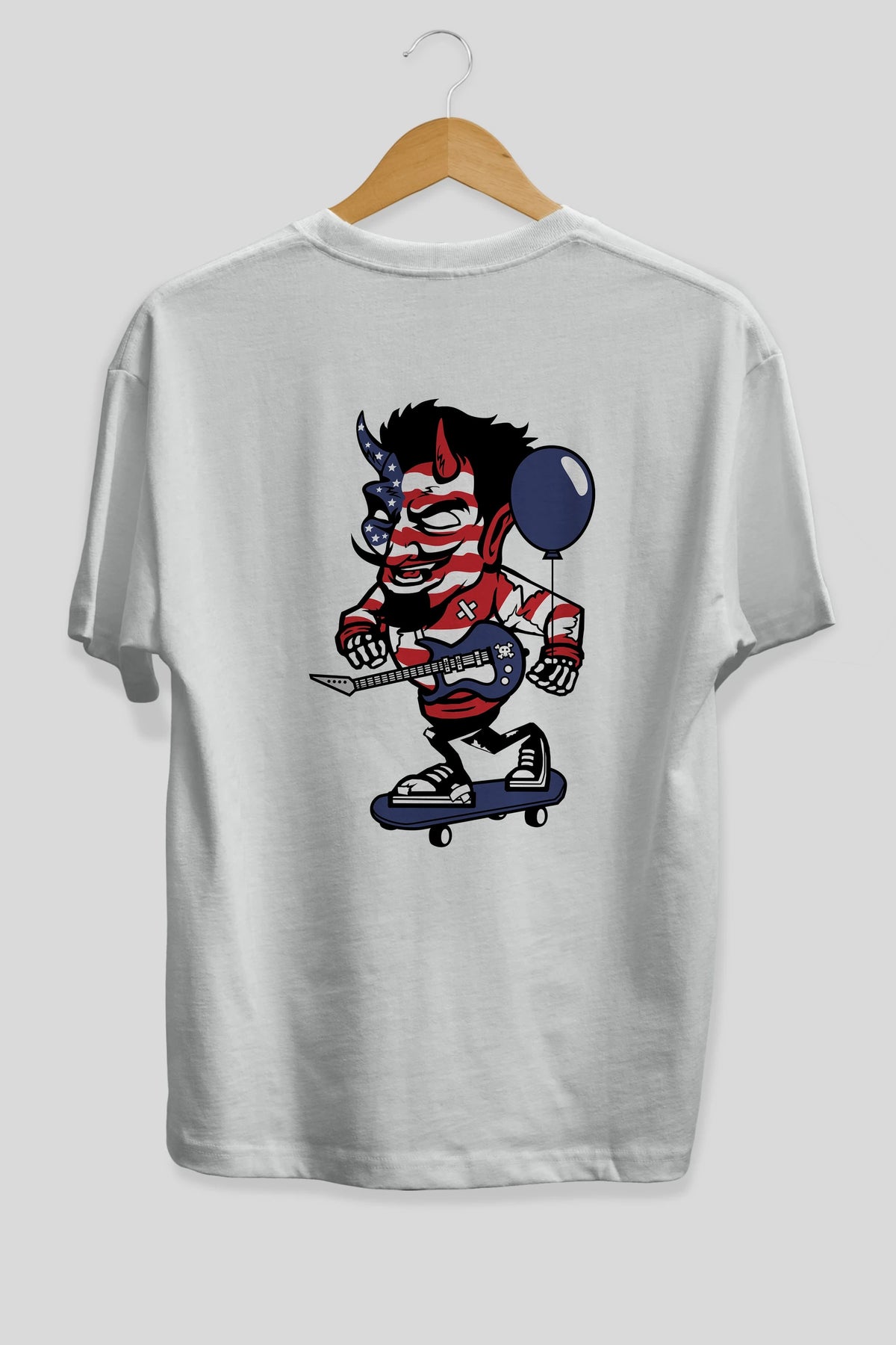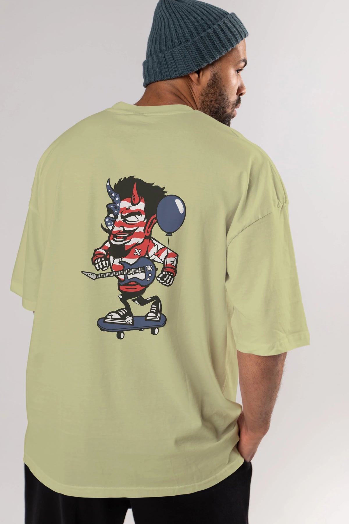American Devil Skater Arka Baskılı Oversize t-shirt Erkek Kadın Unisex %100 Pamuk tişort
