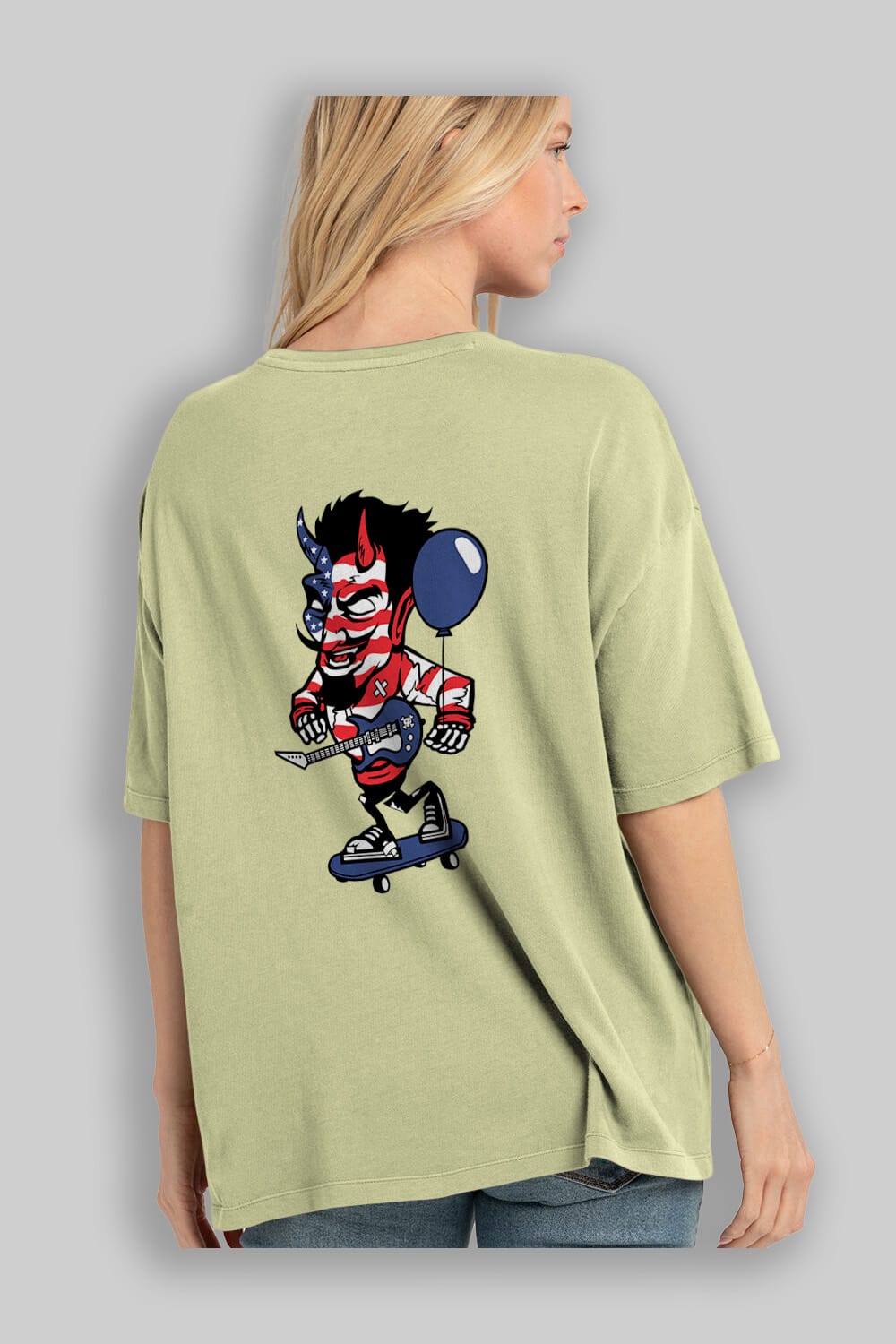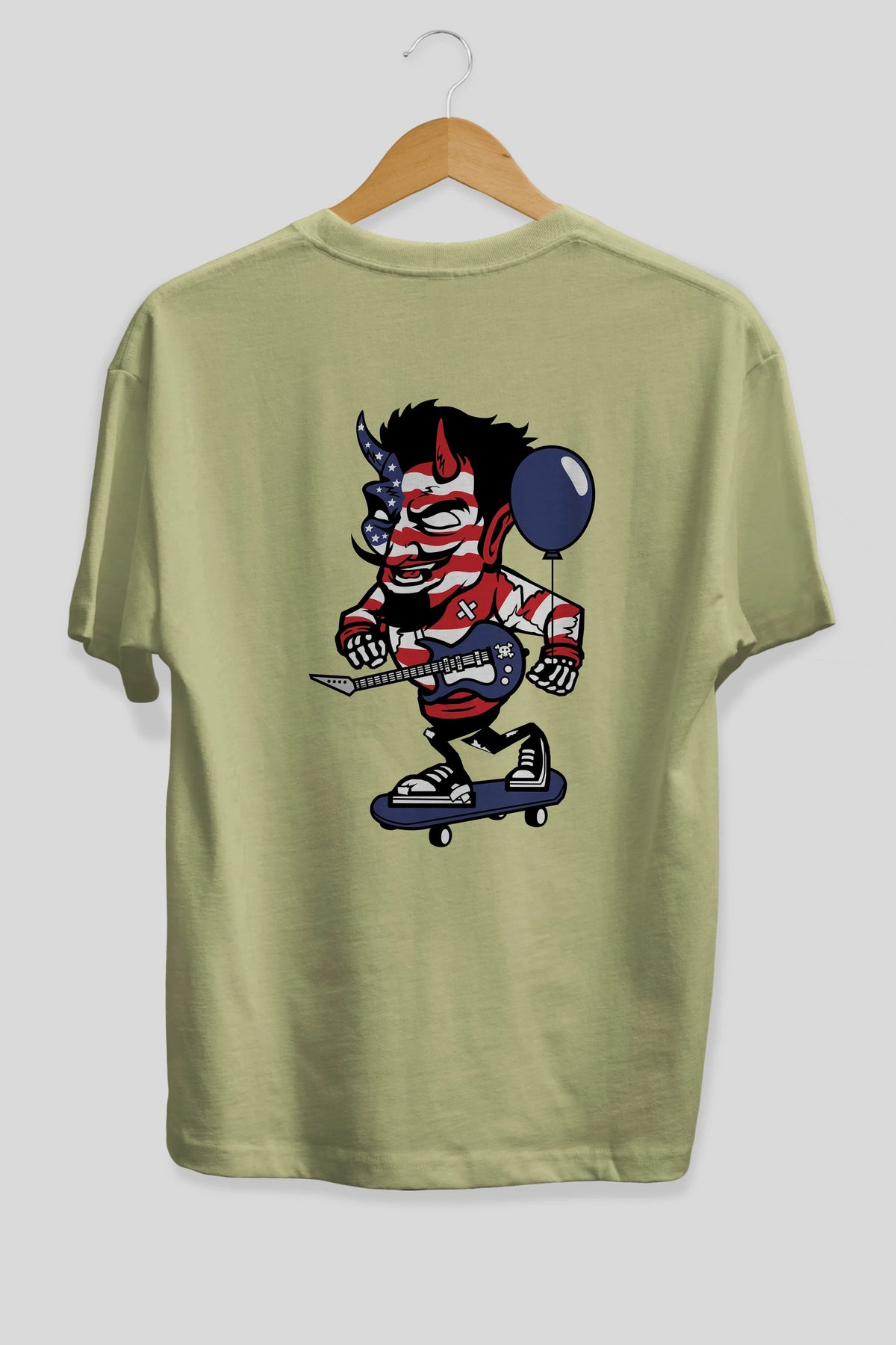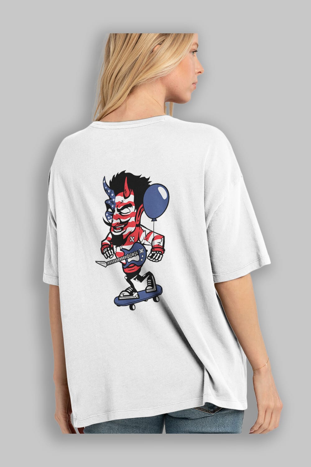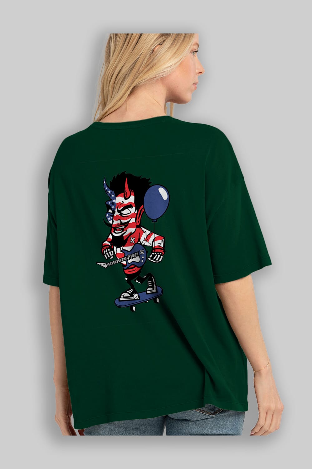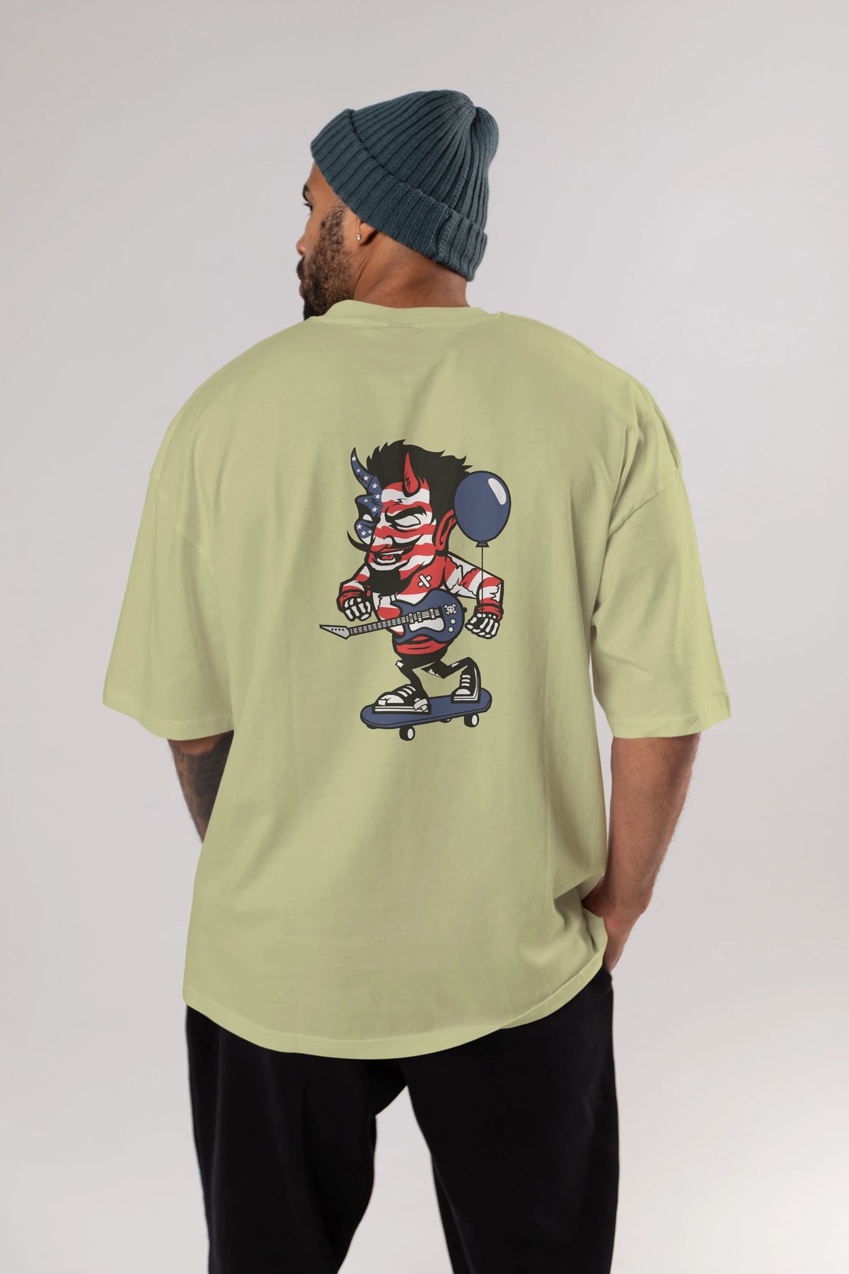 American Devil Skater Arka Baskılı Oversize t-shirt Erkek Kadın Unisex %100 Pamuk tişort