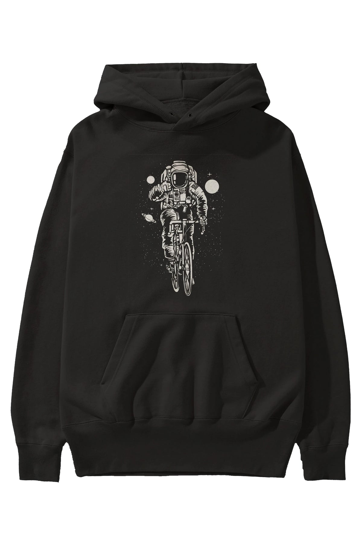 Astronaut Bicycle Ön Baskılı Hoodie Oversize Kapüşonlu Sweatshirt Erkek Kadın Unisex