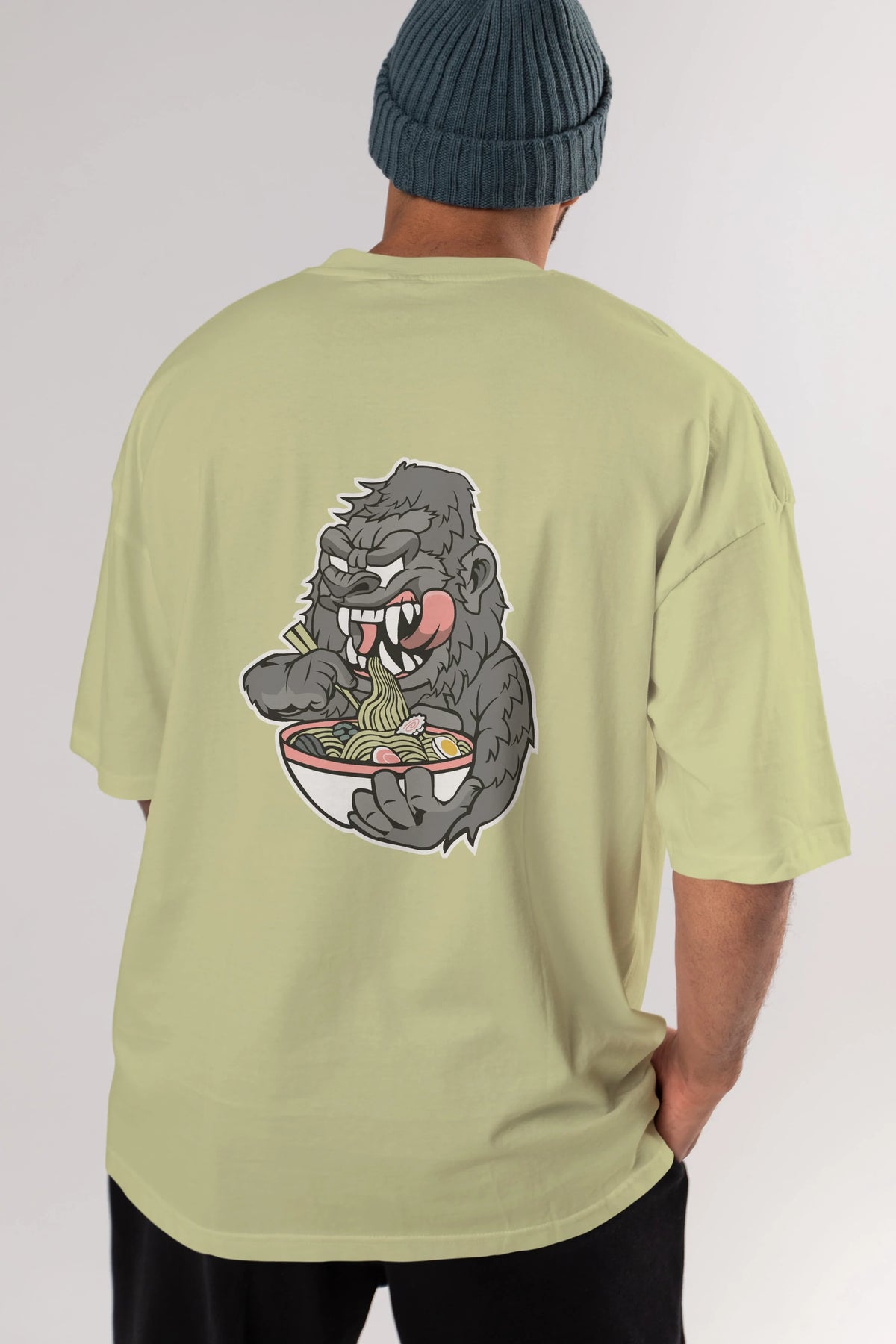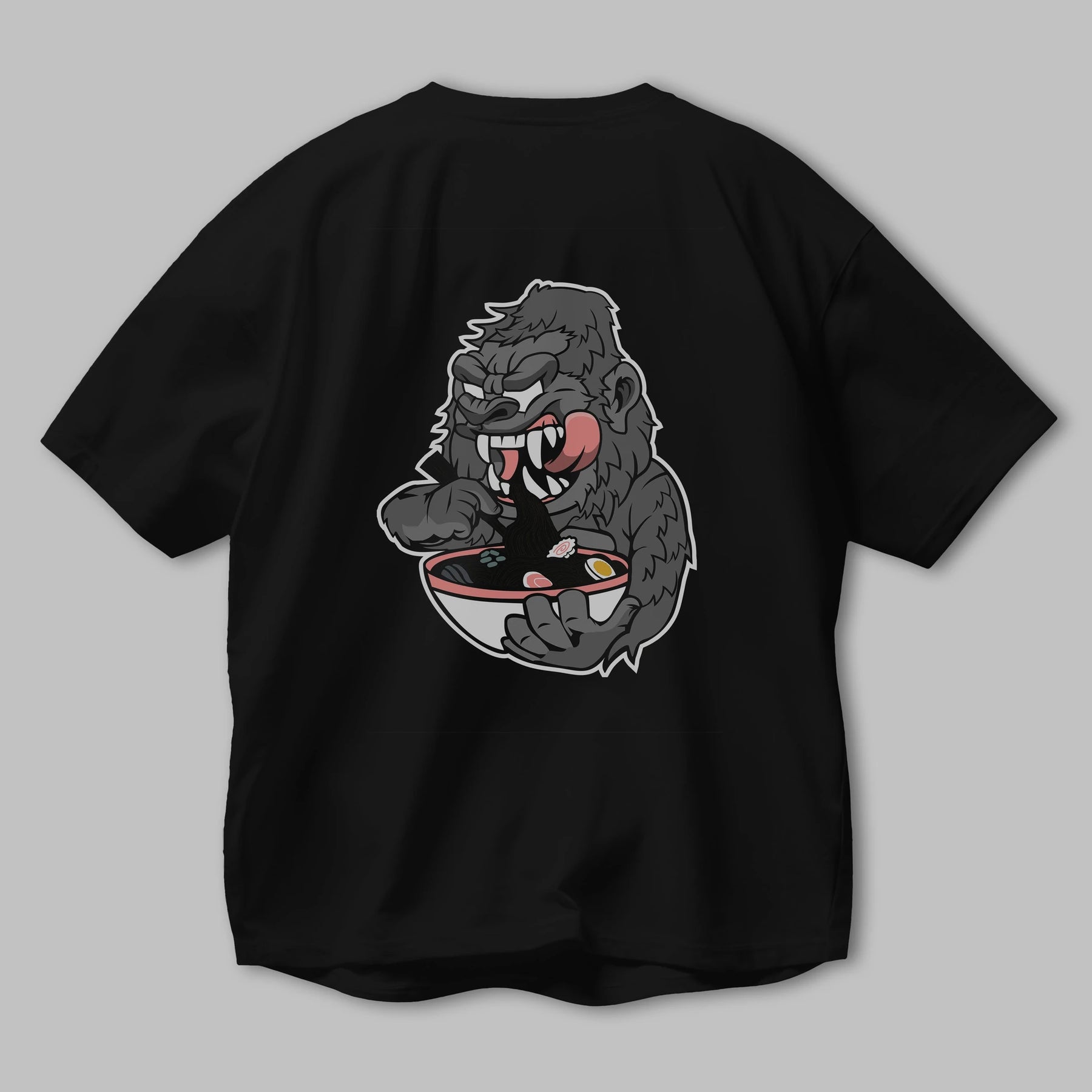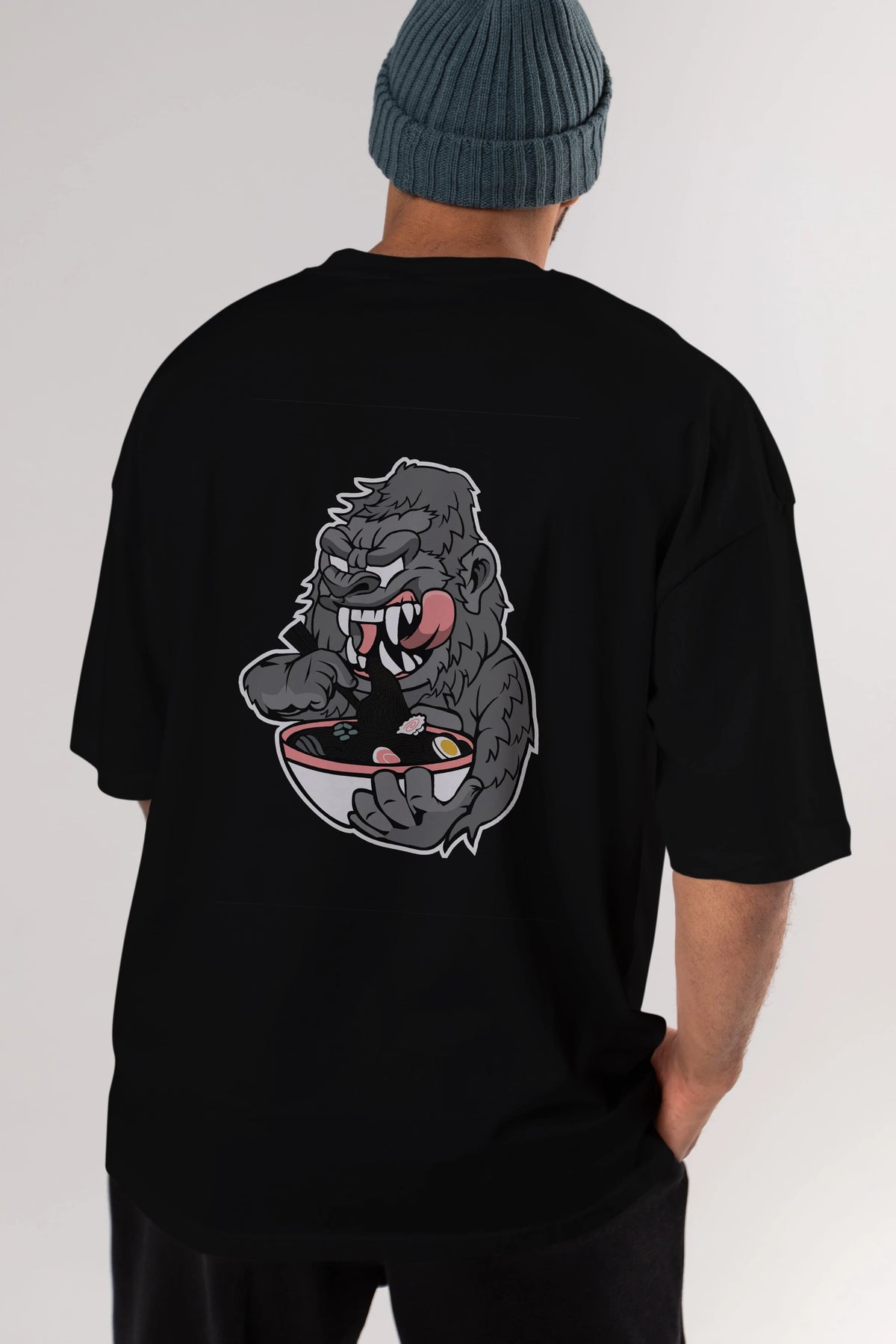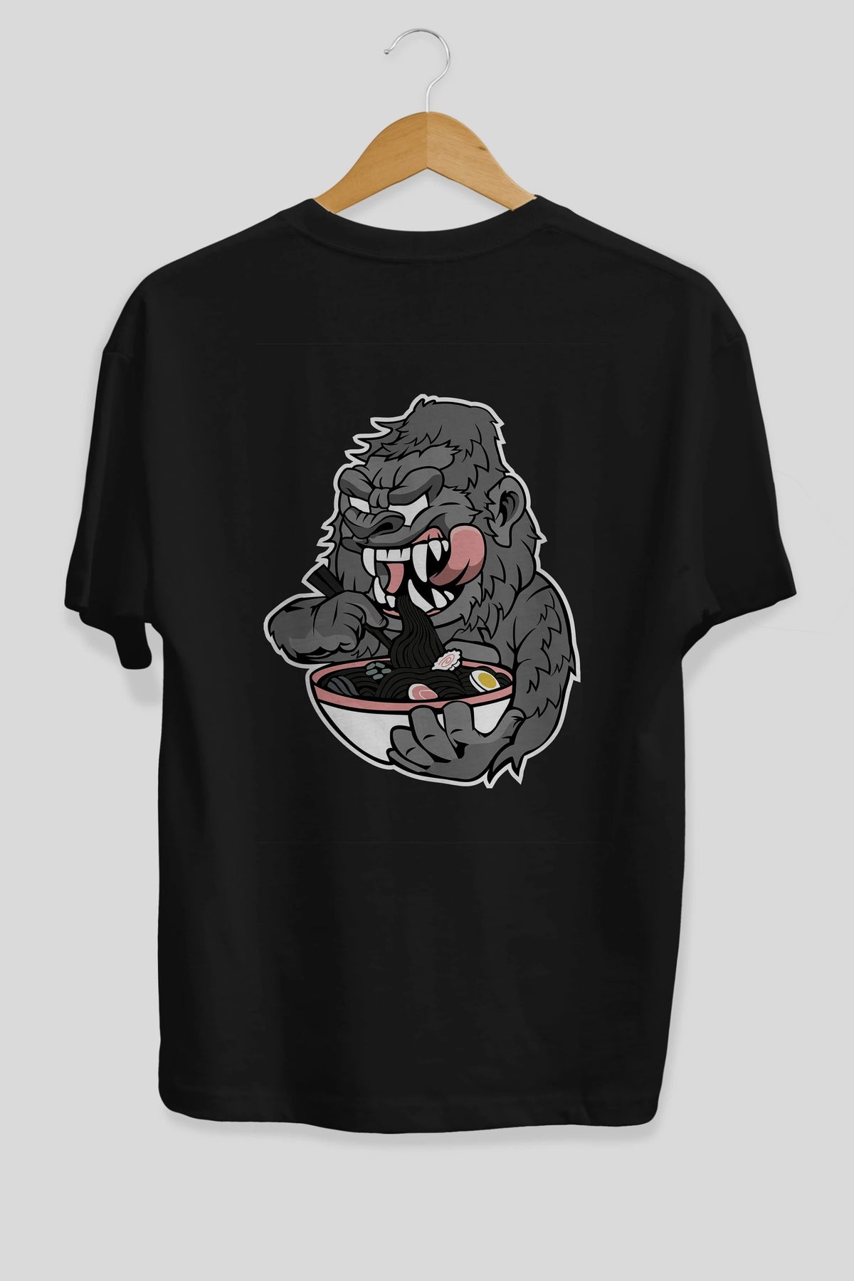 Big Gorilla Ramen Arka Baskılı Oversize t-shirt Erkek Kadın Unisex %100 Pamuk tişort