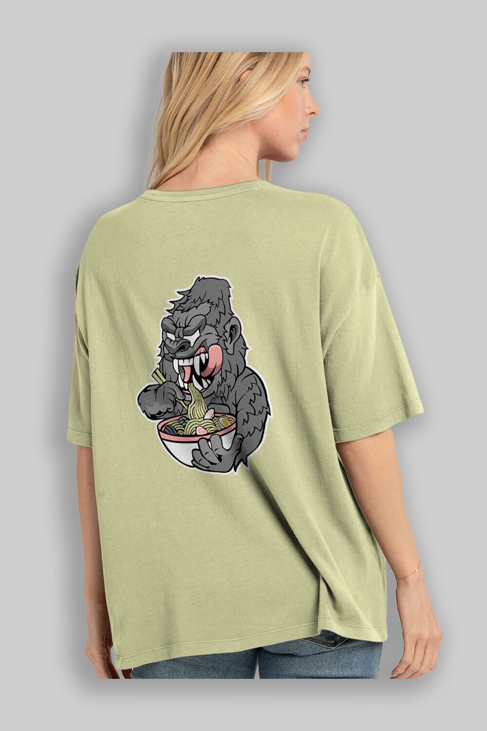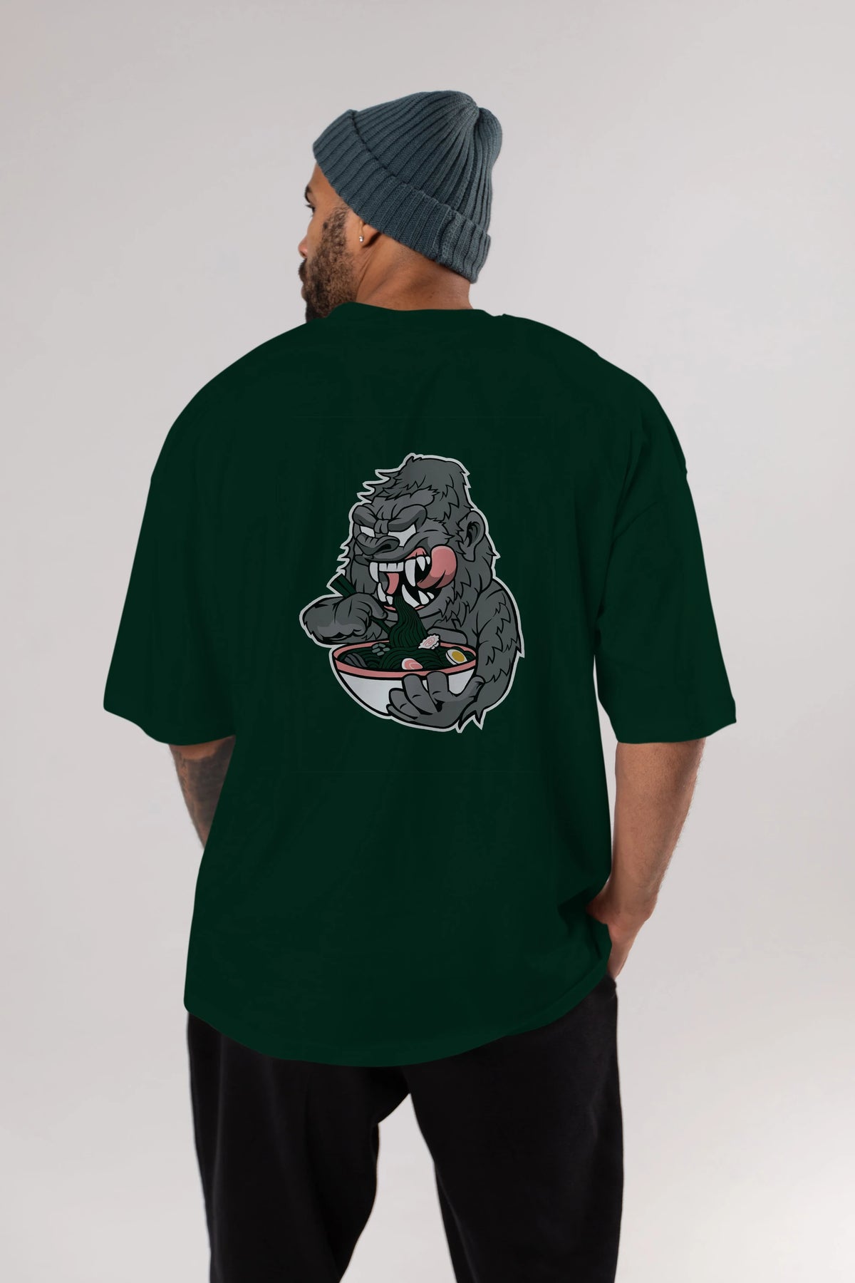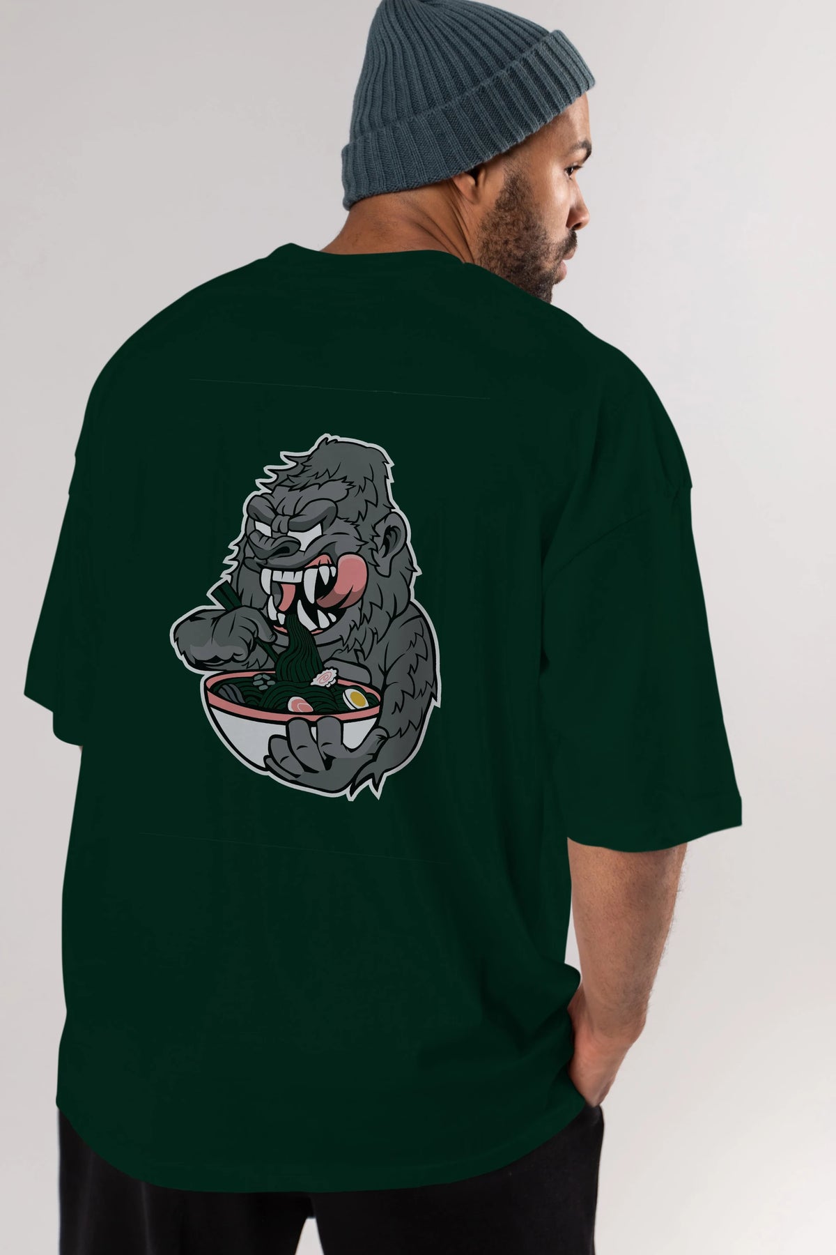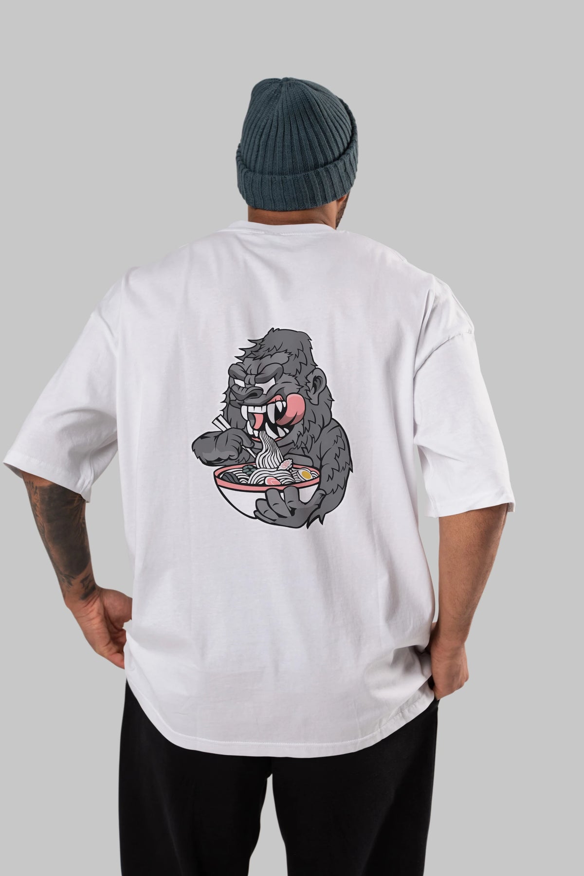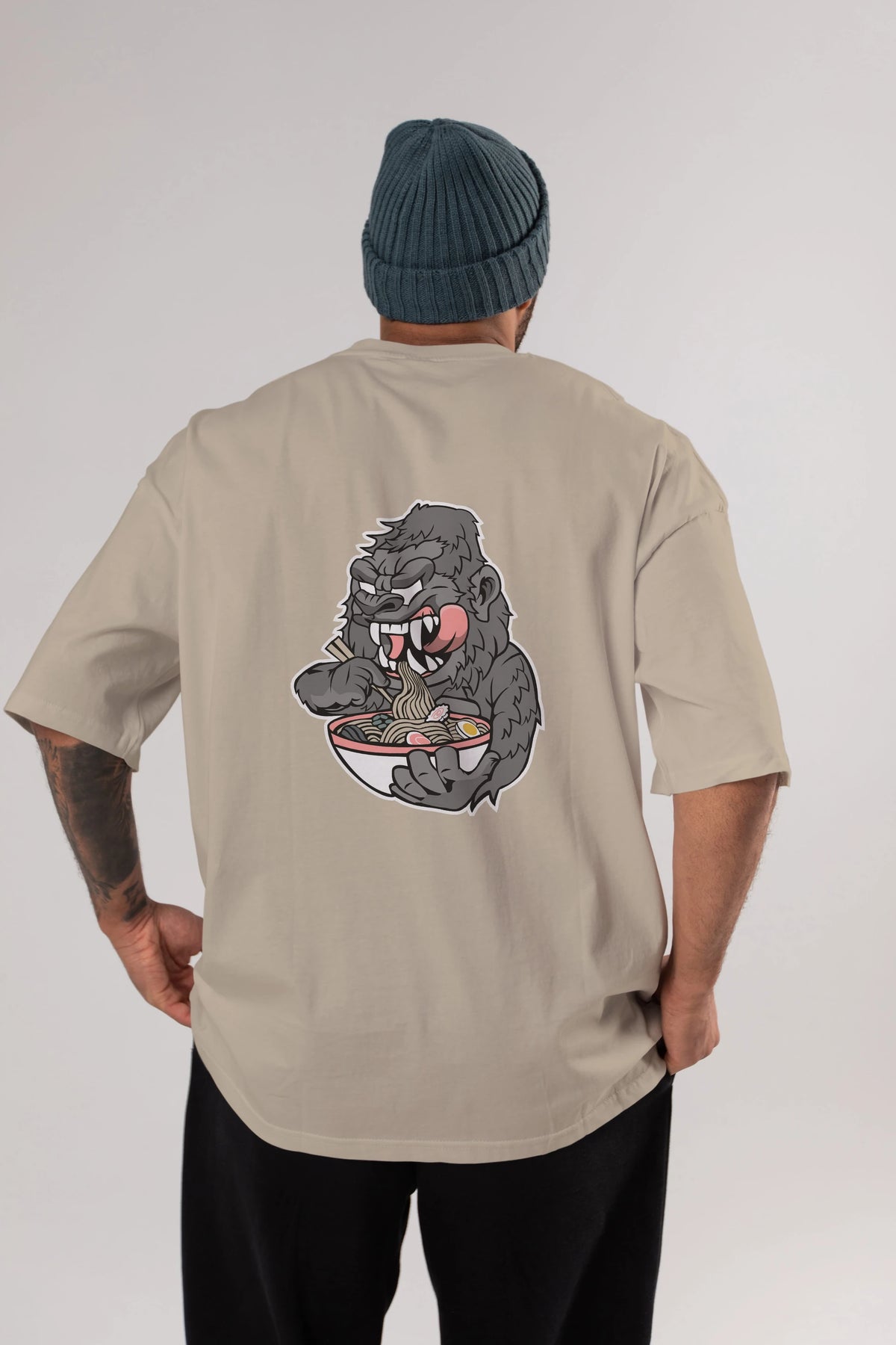 Big Gorilla Ramen Arka Baskılı Oversize t-shirt Erkek Kadın Unisex %100 Pamuk tişort