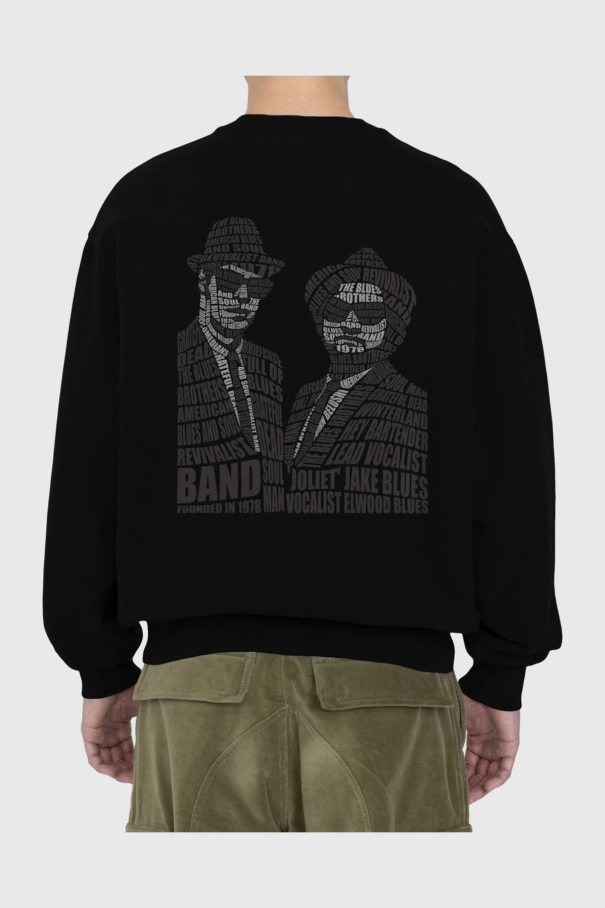 Blues Brothers Calligram Arka Baskılı Oversize Sweatshirt Erkek Kadın Unisex