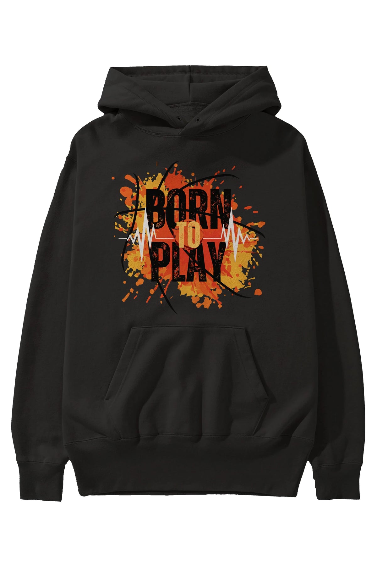Born to Play Yazılı Ön Baskılı Oversize Hoodie Kapüşonlu Sweatshirt Erkek Kadın Unisex