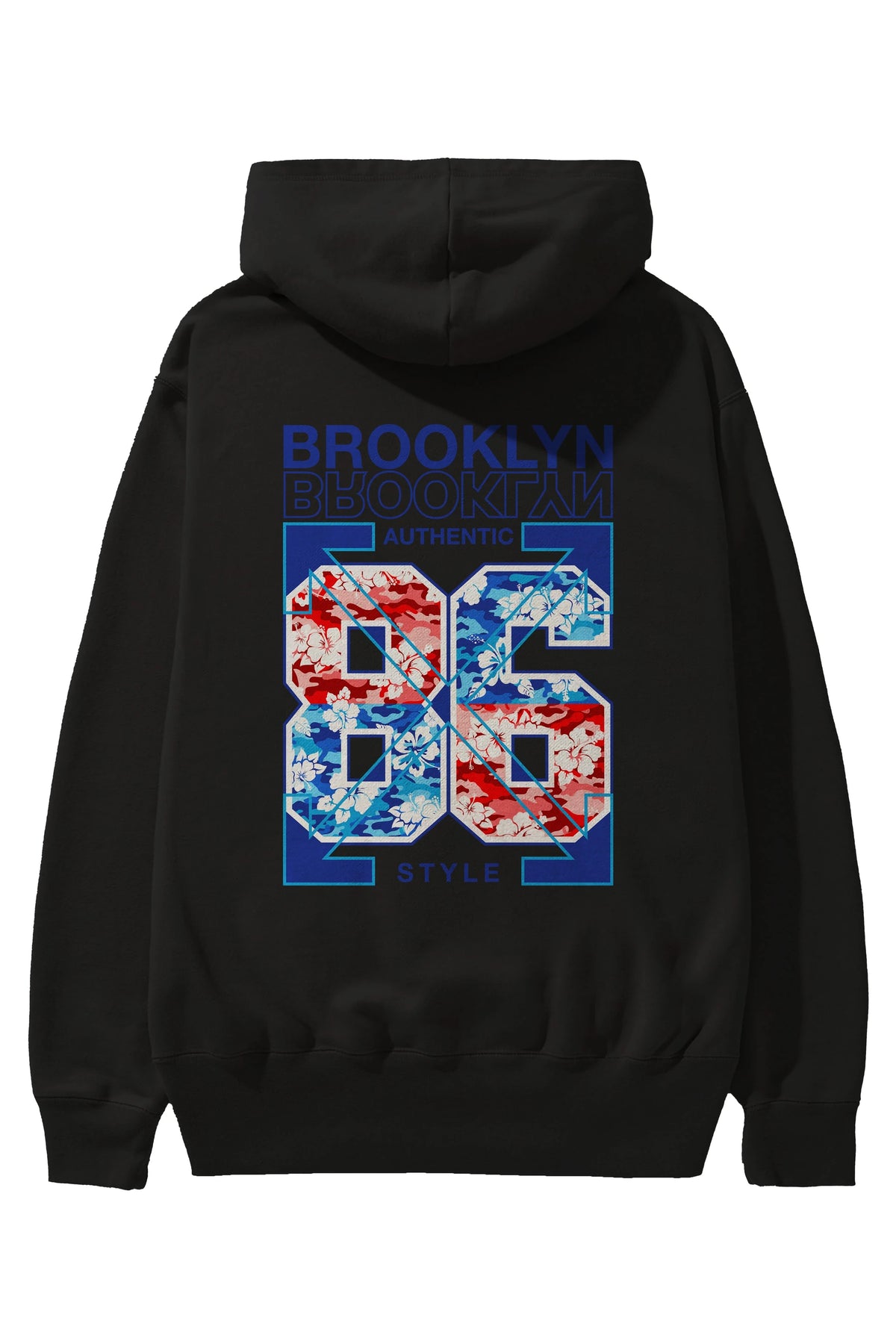 Brooklyn 86 Style Arka Baskılı Hoodie Oversize Kapüşonlu Sweatshirt Erkek Kadın Unisex