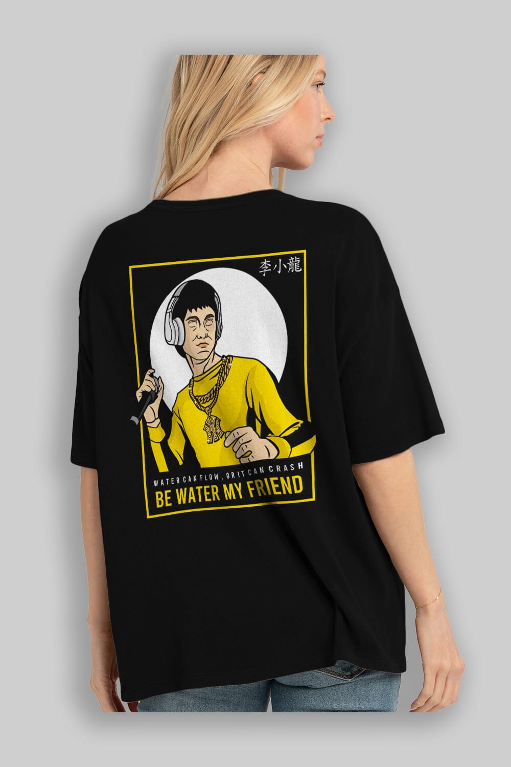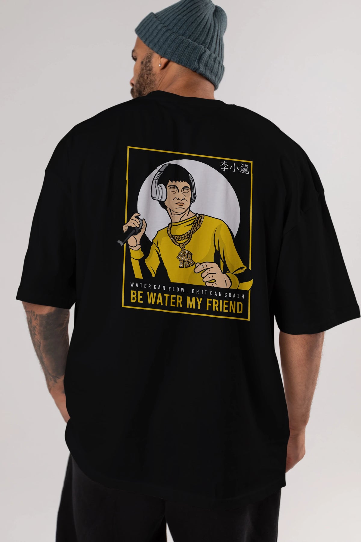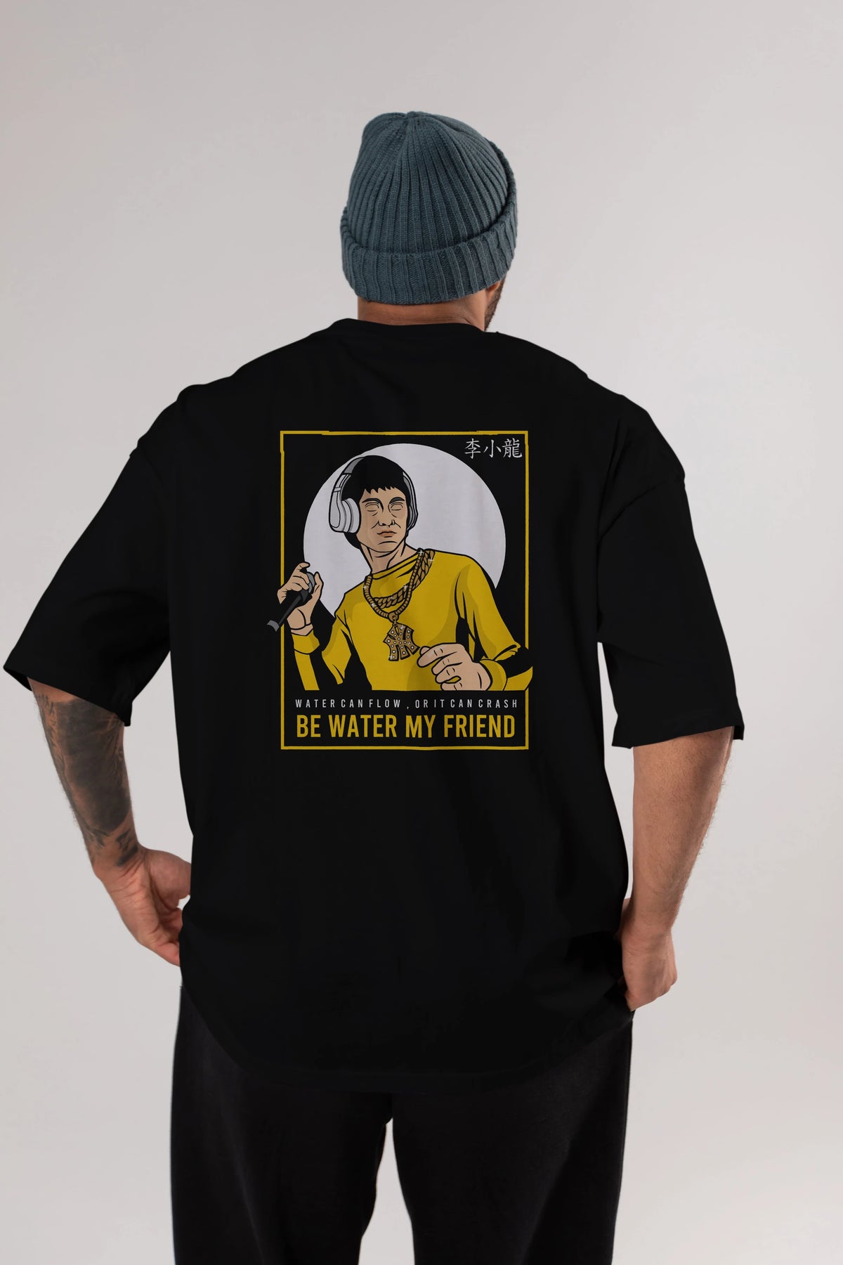 Bruce Lee Rapper Arka Baskılı Oversize t-shirt Erkek Kadın Unisex %100 Pamuk tişort