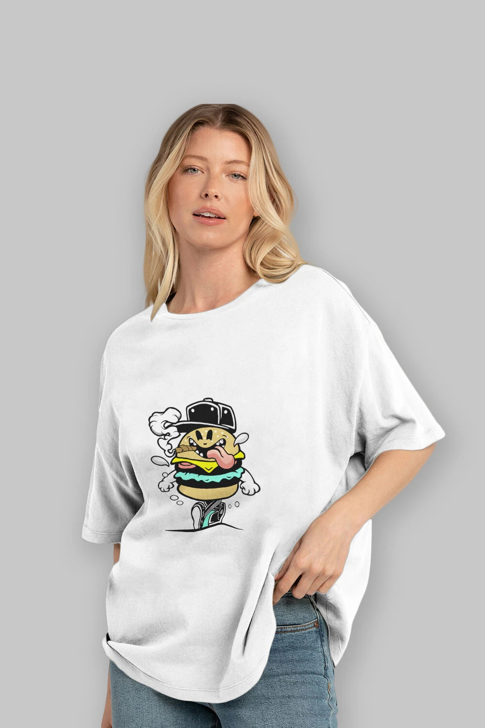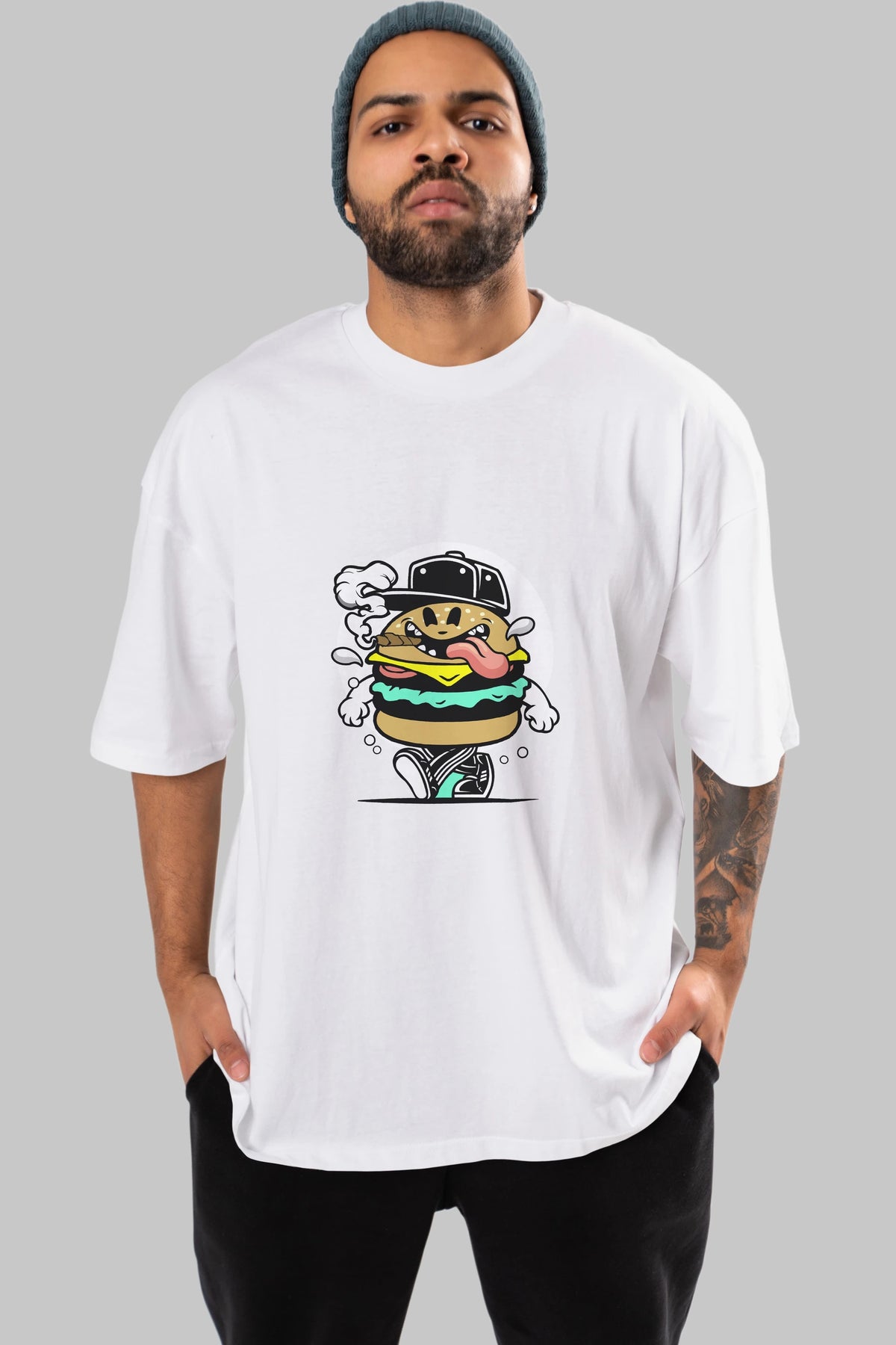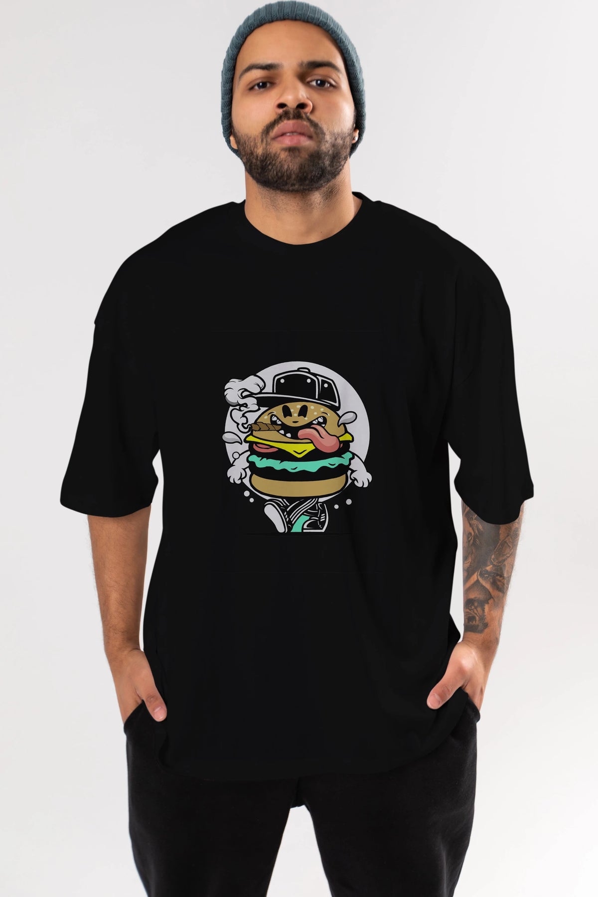 Burger Guy Ön Baskılı Oversize t-shirt Erkek Kadın Unisex %100 Pamuk tişort