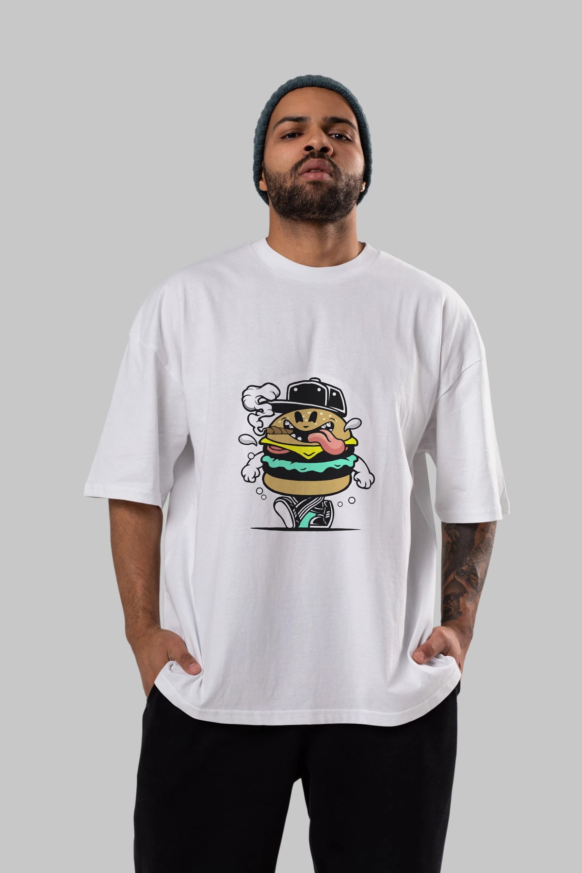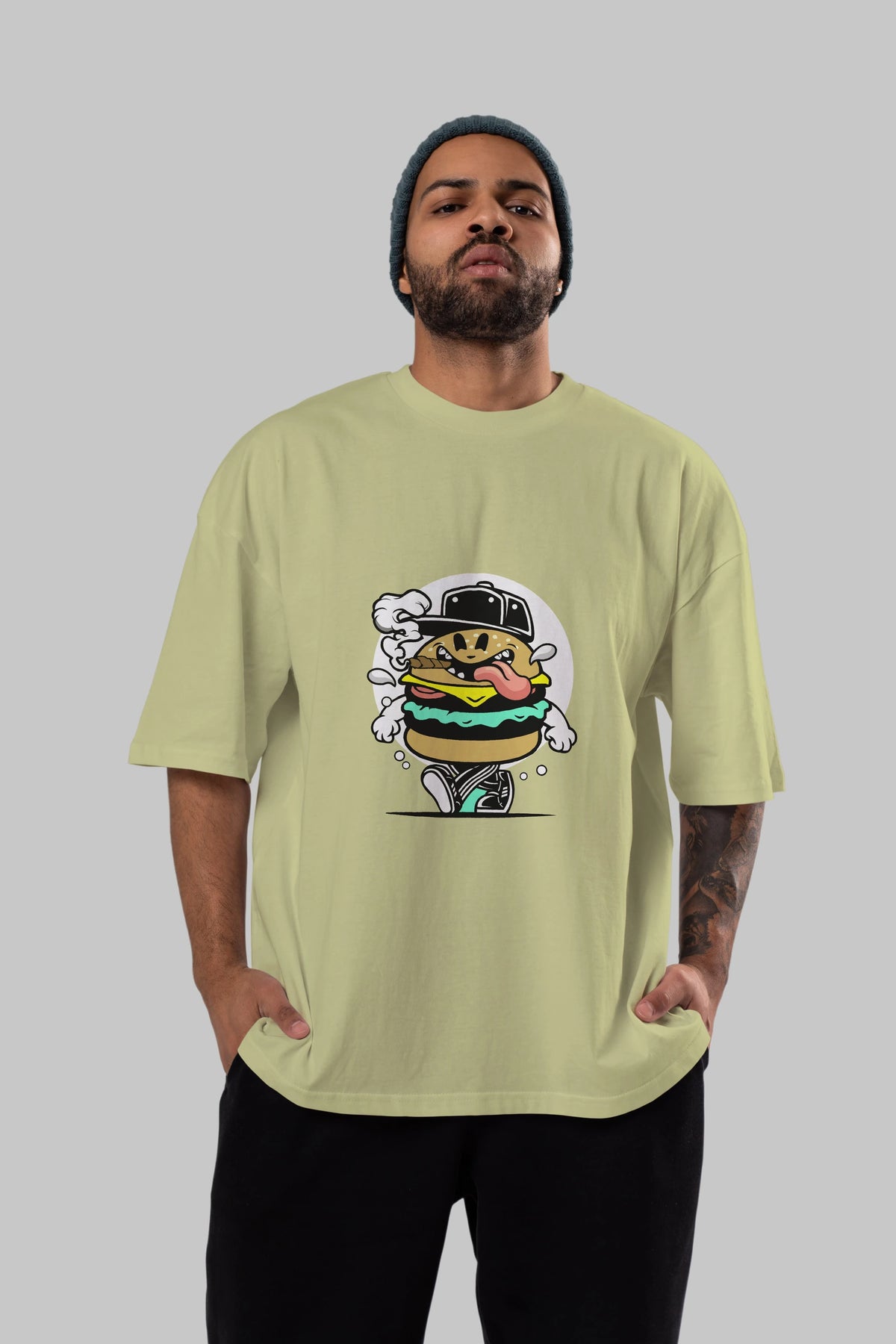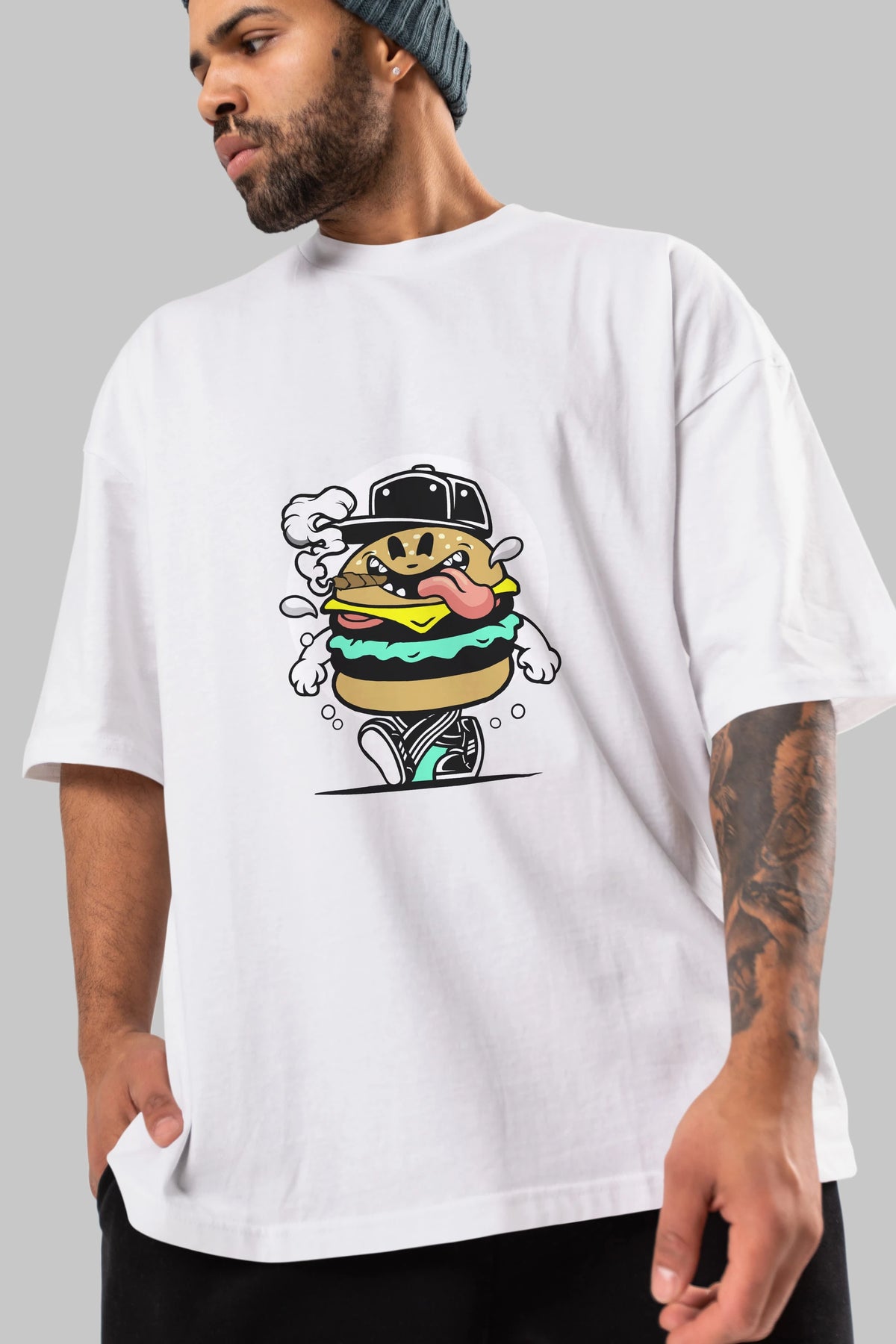 Burger Guy Ön Baskılı Oversize t-shirt Erkek Kadın Unisex %100 Pamuk tişort