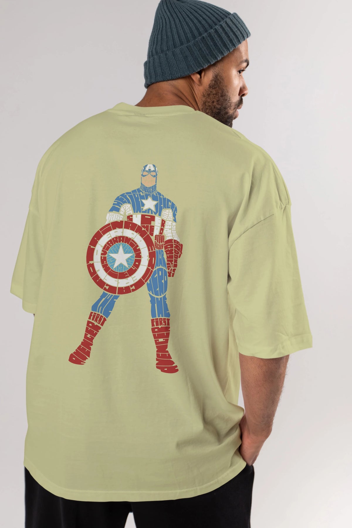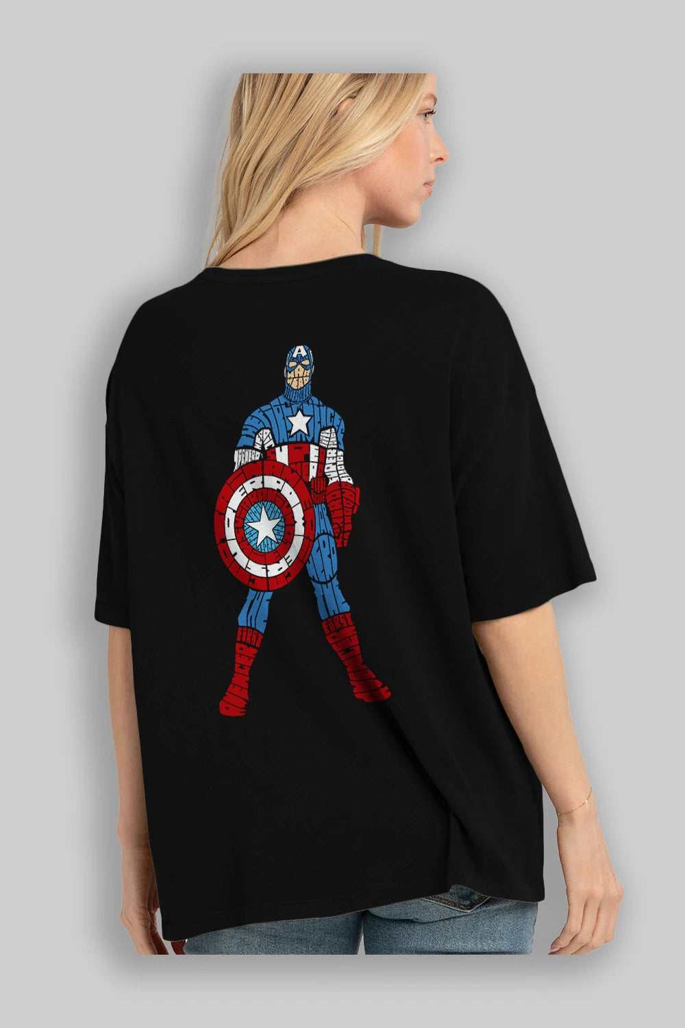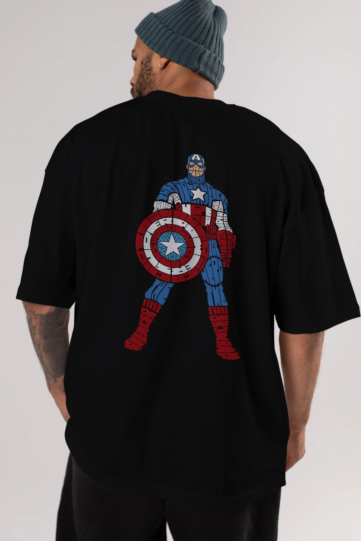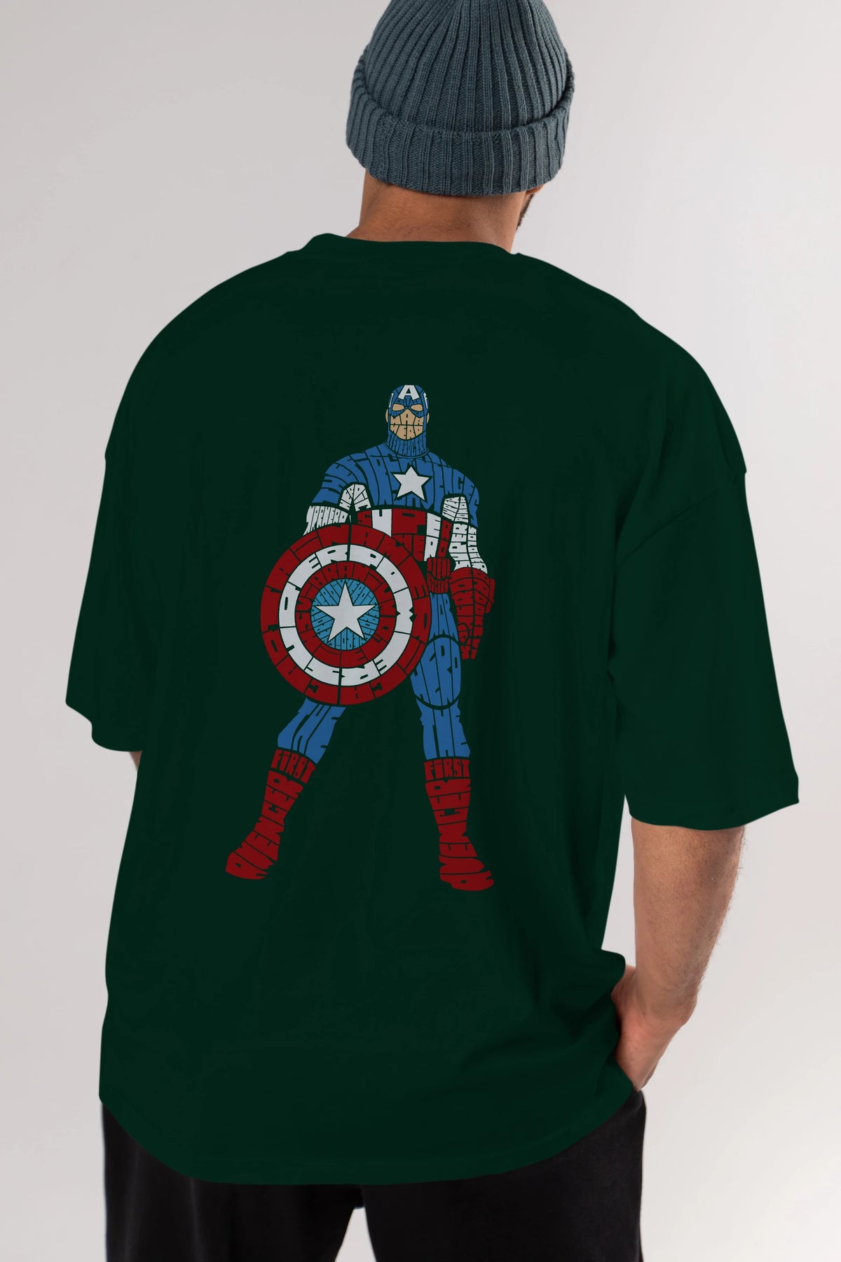 Captain America Arka Baskılı Oversize t-shirt %100 pamuk Erkek Kadın Unisex