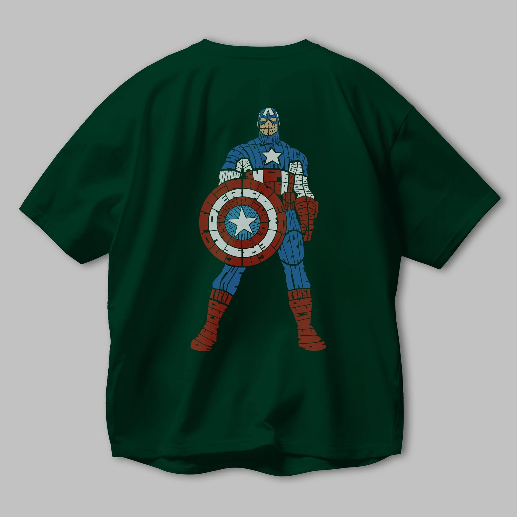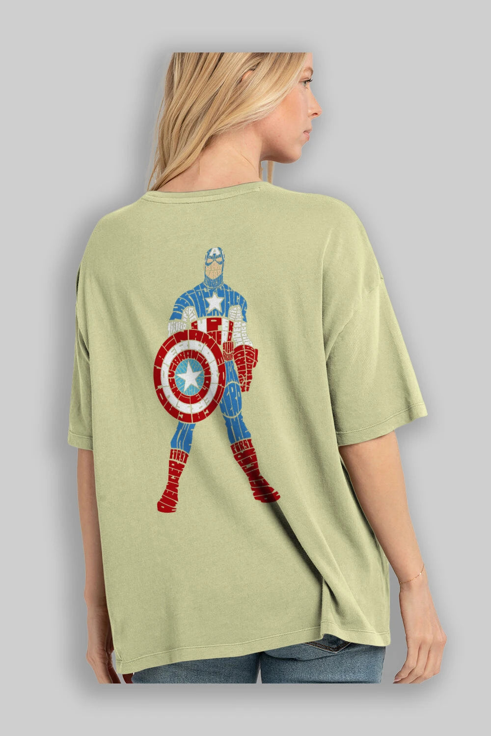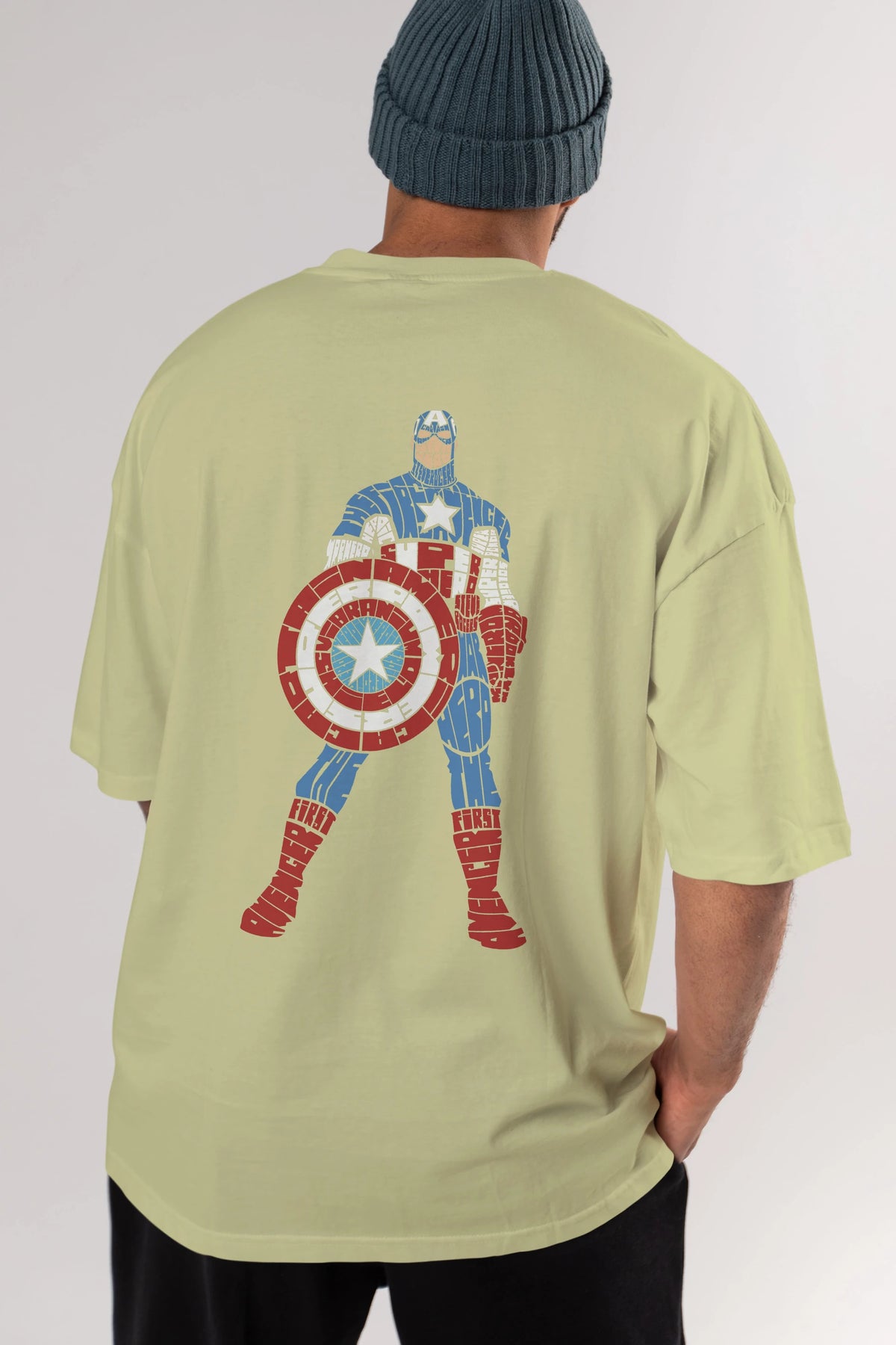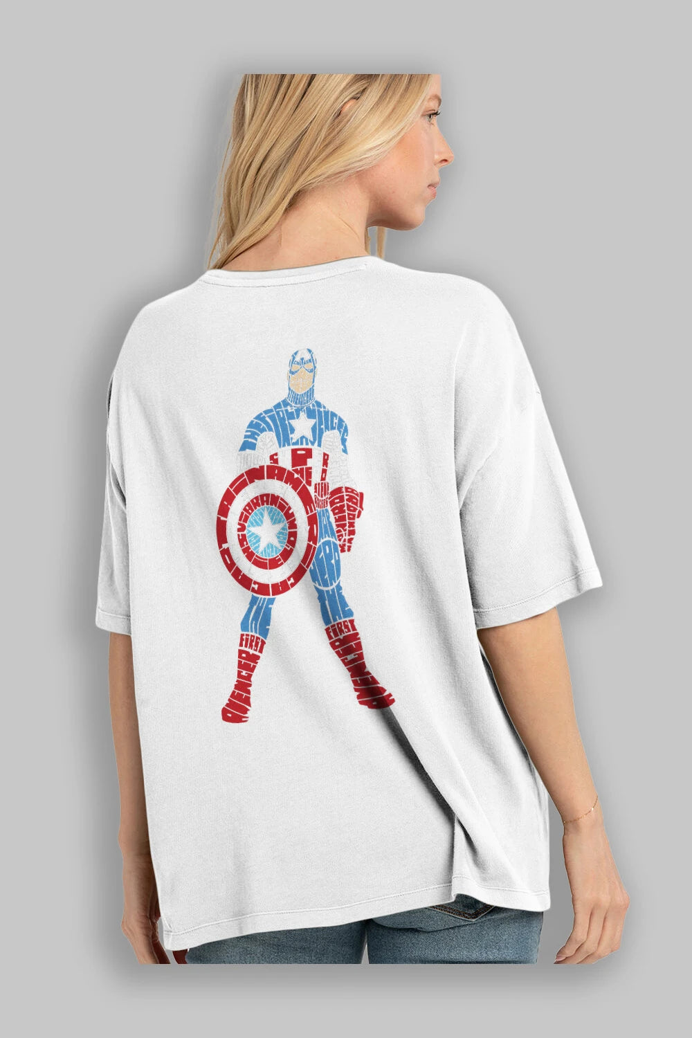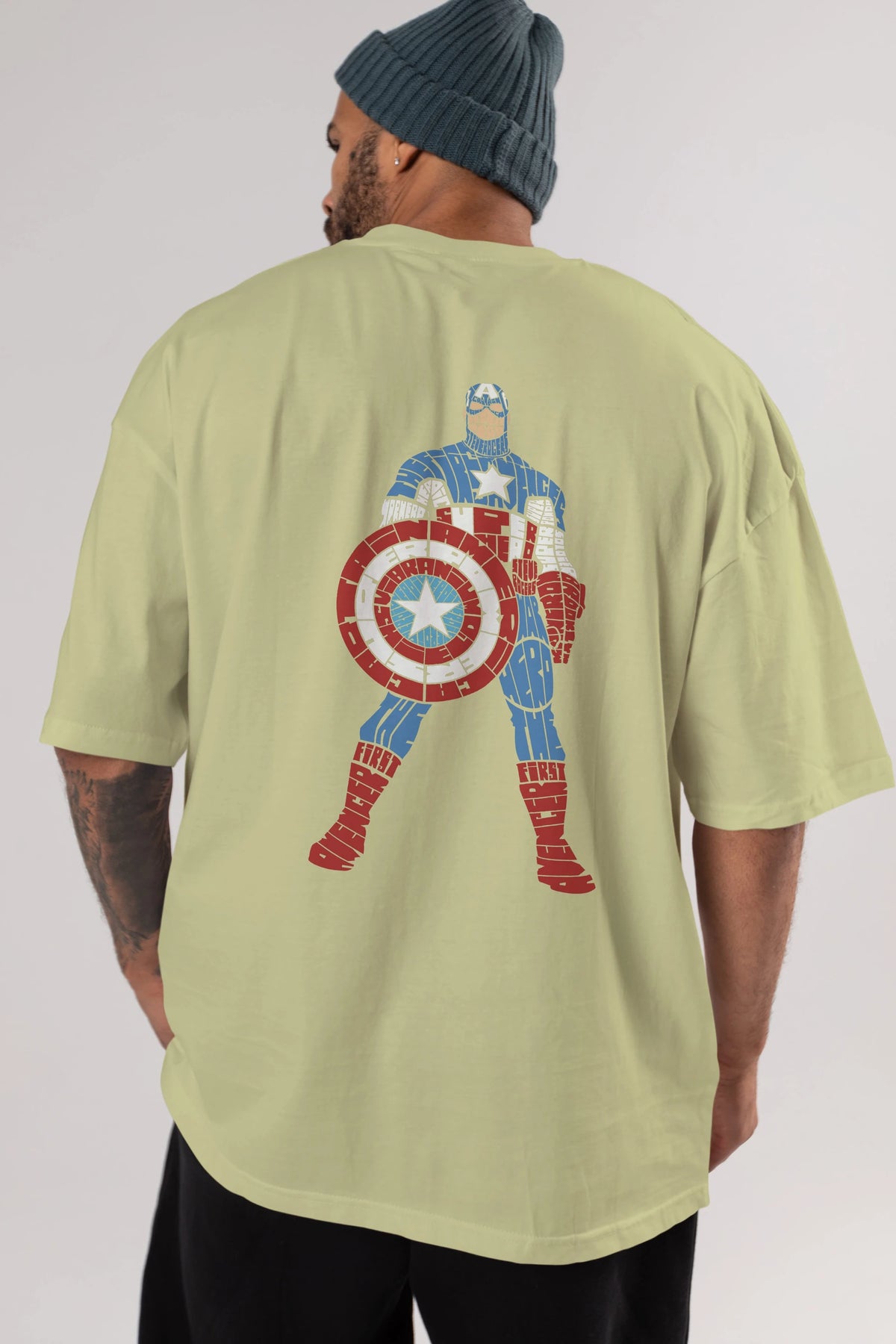 Captain America Arka Baskılı Oversize t-shirt %100 pamuk Erkek Kadın Unisex