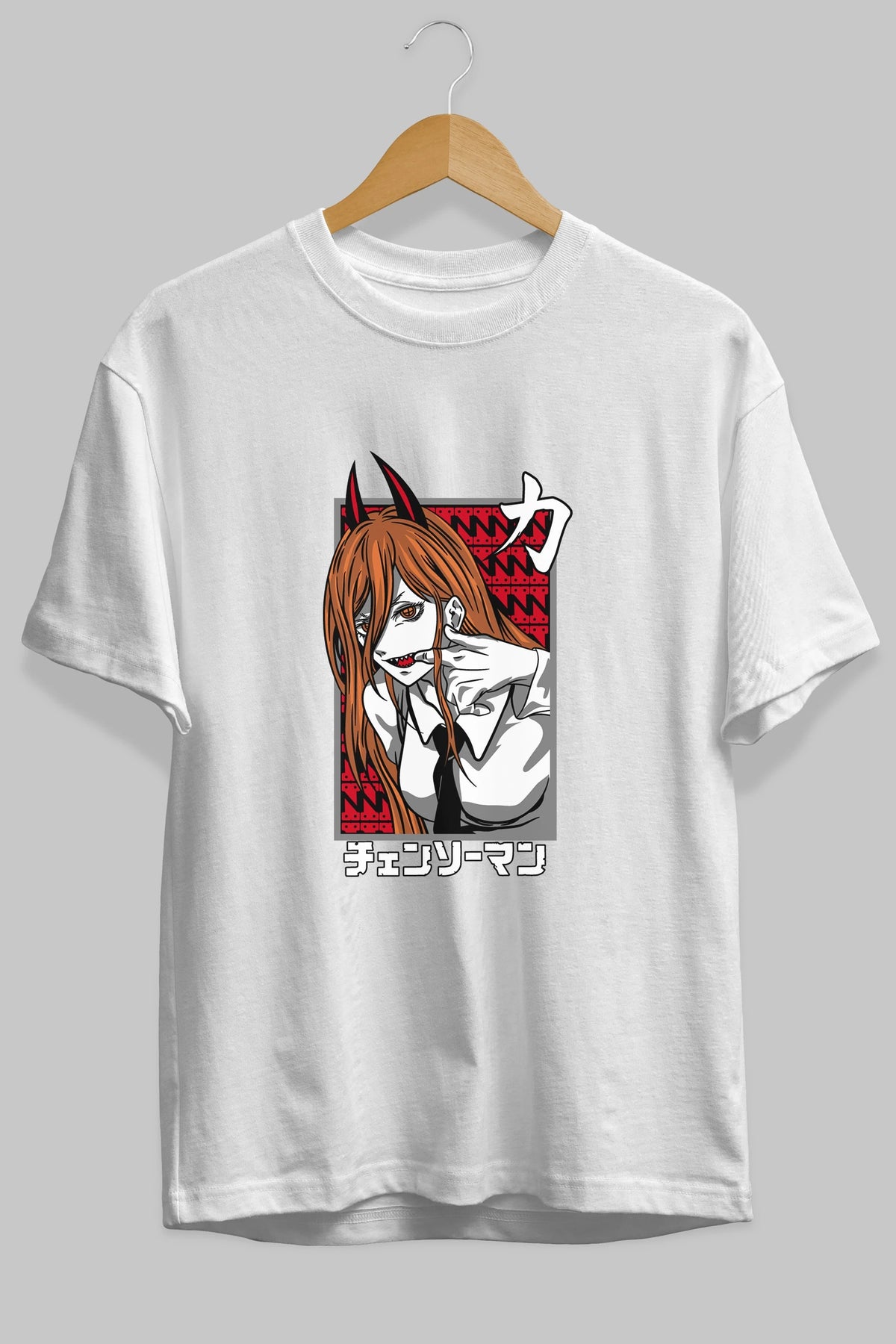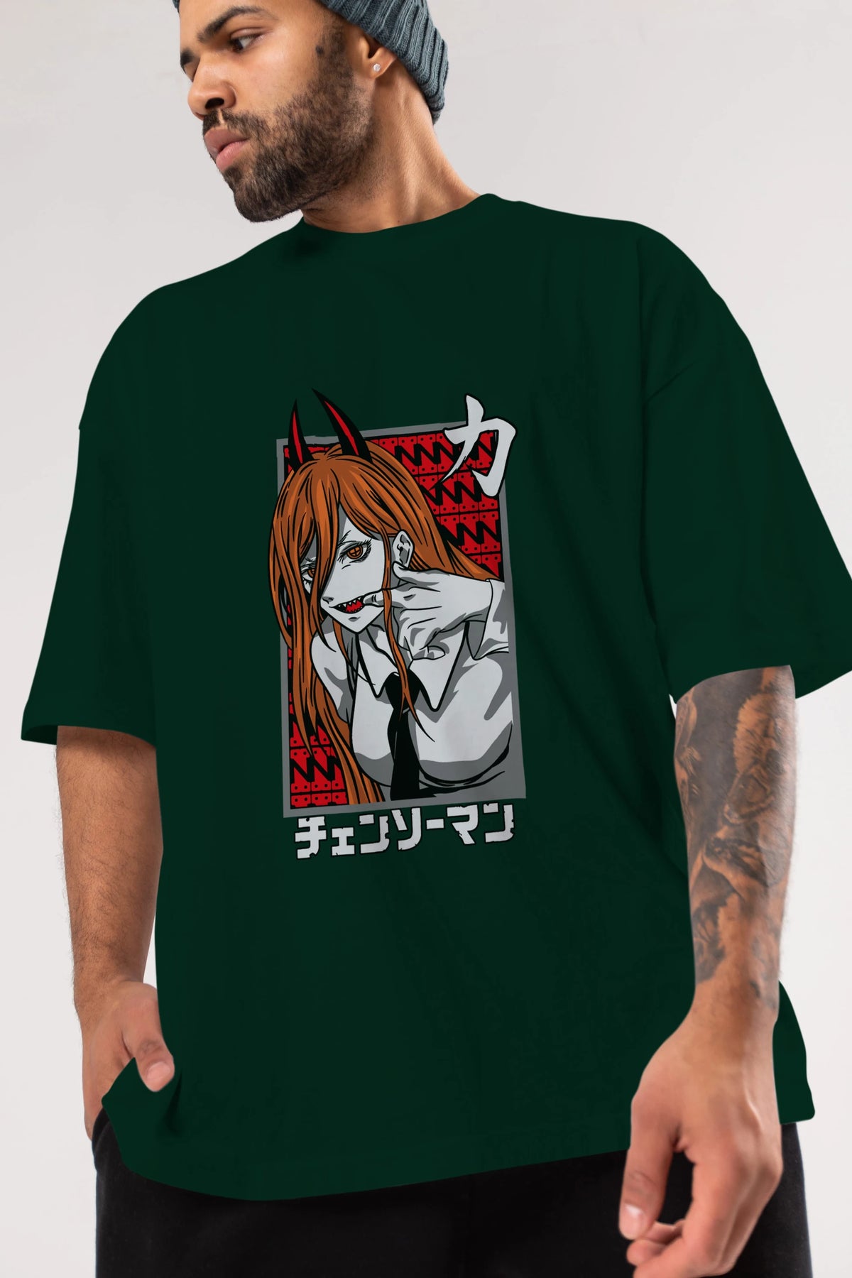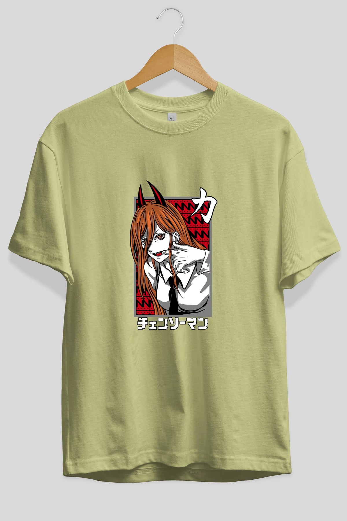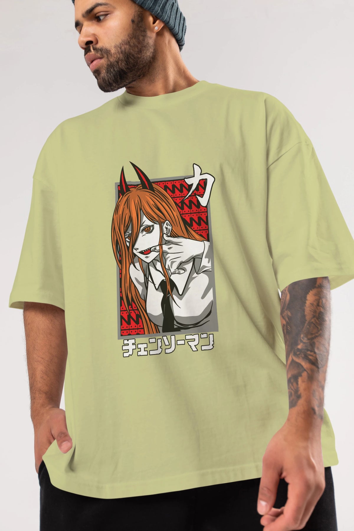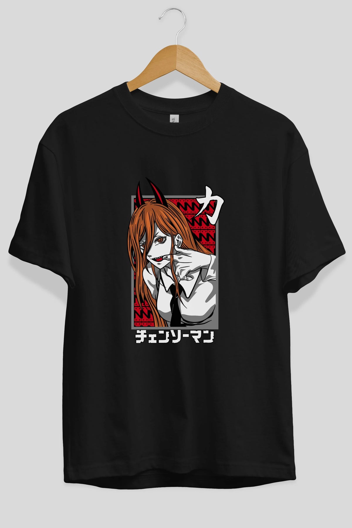 CHAINSAWMAN POWER Anime Ön Baskılı Oversize t-shirt %100 pamuk Erkek Kadın Unisex